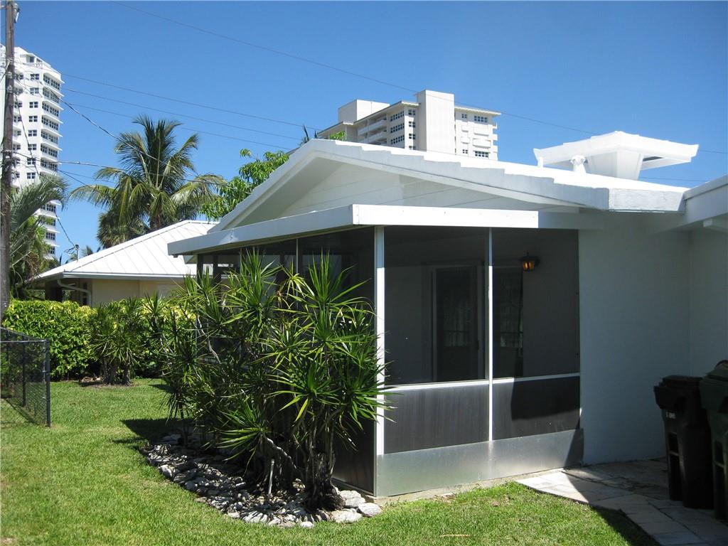 Do not miss the rare chance to purchase this delightful 2 Bed / 2 Bath beach-side bungalow in the sought-after Breakwater Surf Club. Light, bright, spotlessly lean & ready to enjoy! This well maintained retro charmer boasts an open living area, terrazzo floors, newly remodeled master bathroom, hurricane impact windows, plantation shutters, 1 car garage & newly installed A/C "Healthy Climate" UV Germicidal Light system. Enjoy the Gulf stream breezes from your screened porch and back patio area and watch /wave to the cruise ships from your front yard as they pass by. The Breakwater Surf Club is a secluded community of only 59 homes on the south tip of Ft. Lauderdale Beach & Inlet with clubhouse & pool. Only a two minute walk to the pool & just two short blocks to the deeded beach access!