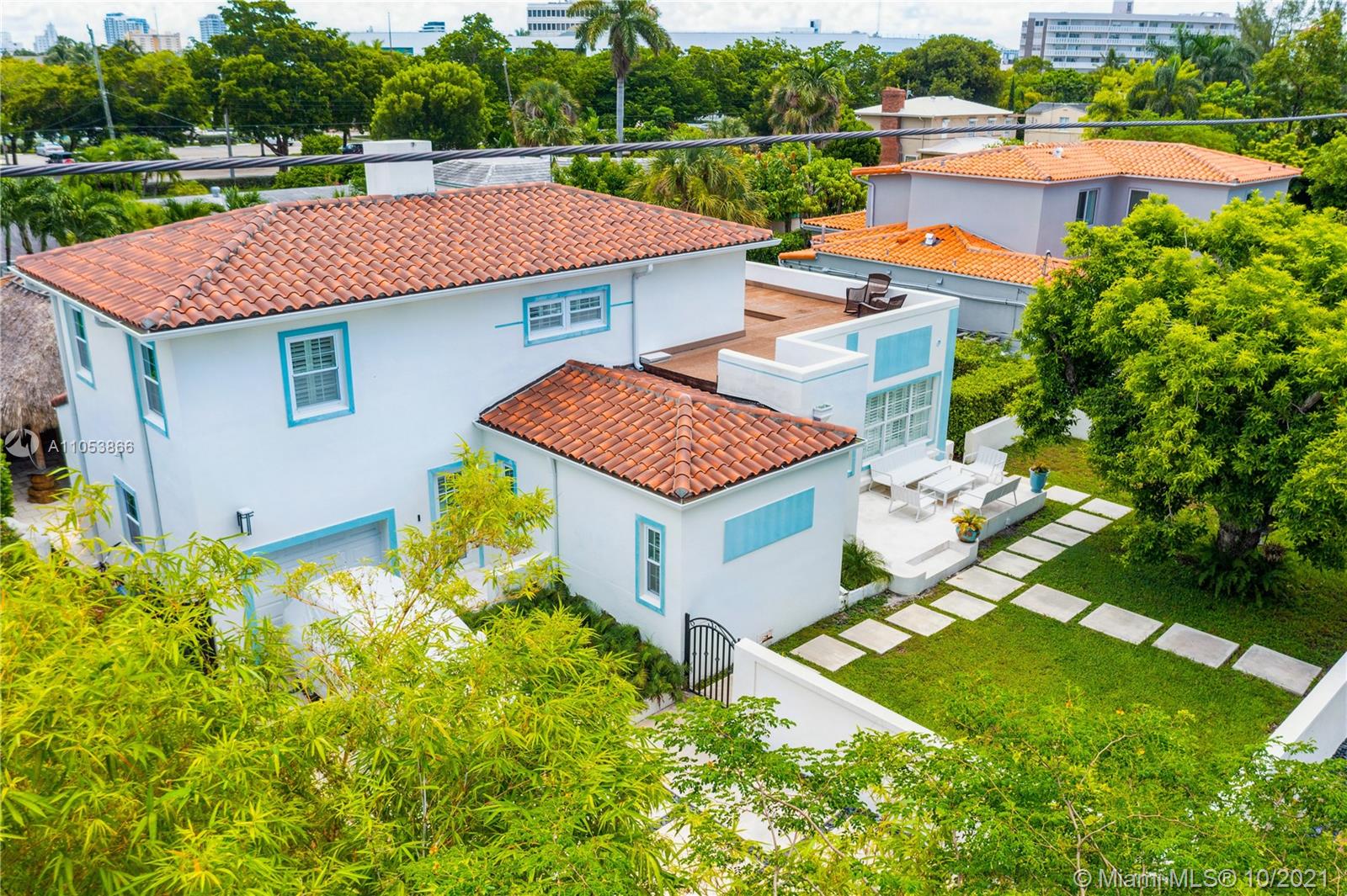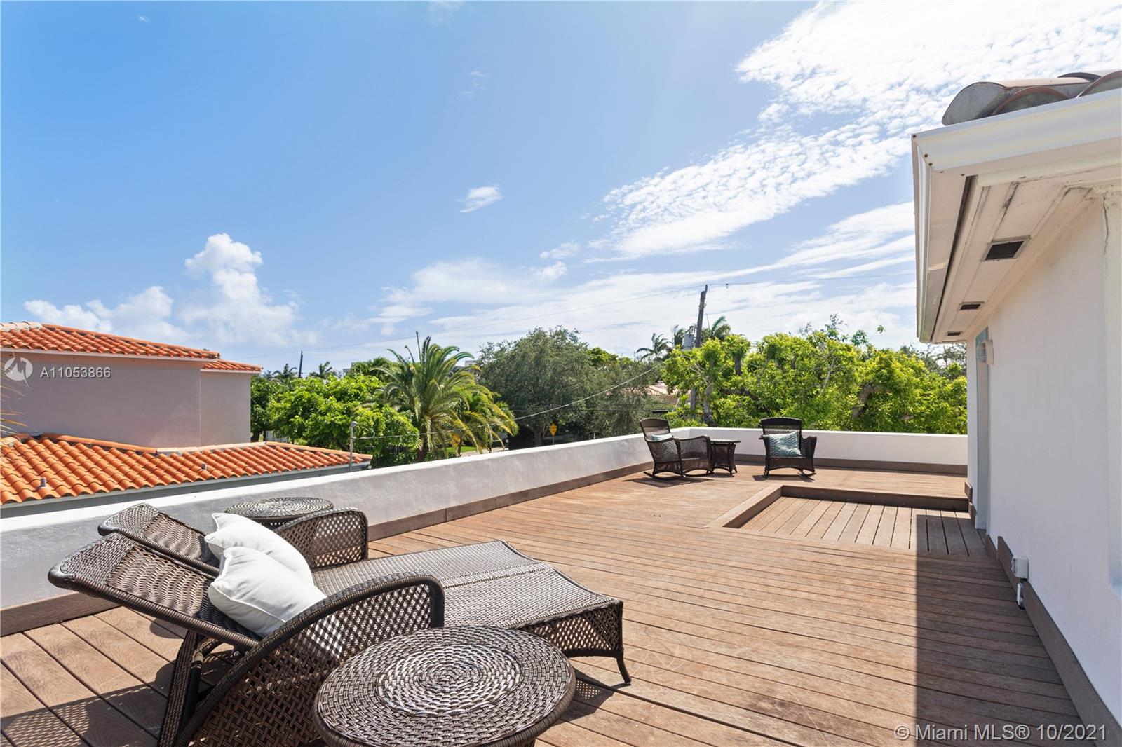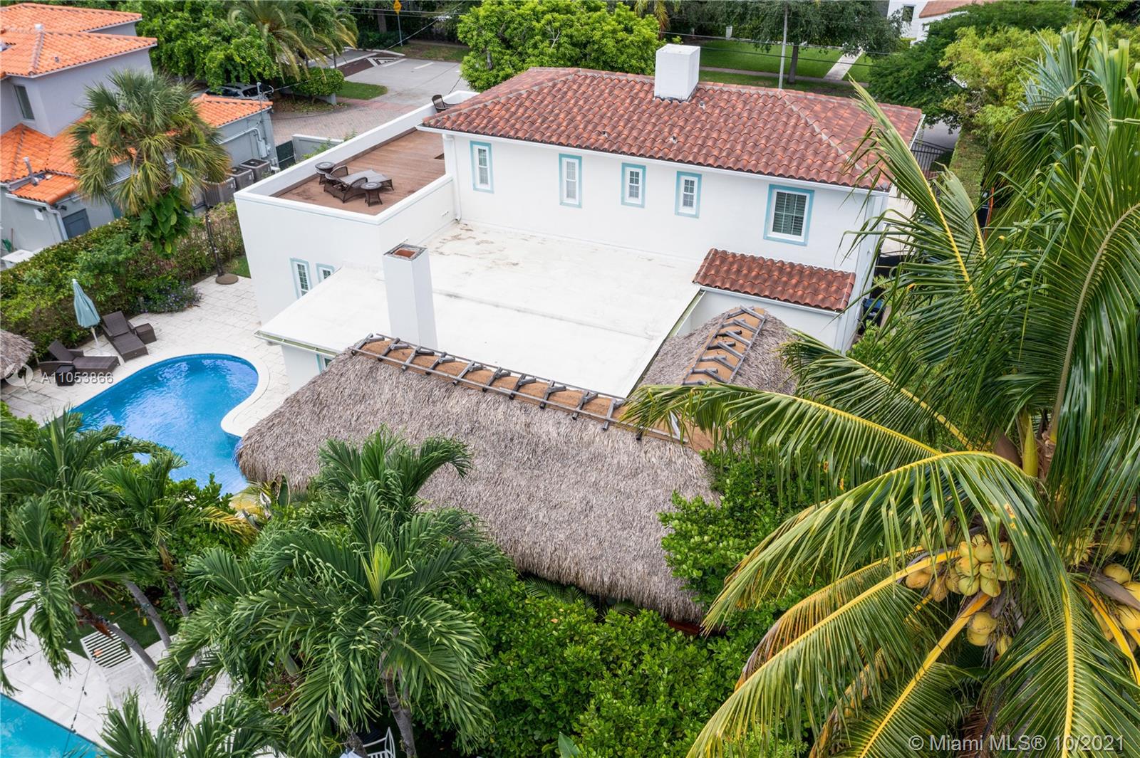 One of a kind and very likable 2-story gated Home in the heart of Miami Beach. Art Deco Style w/ a touch of Mediterranean. Beautiful home w/ elegant hardwood floors thru out. Best location just a few blocks from shopping and restaurants. This charming home features 4 bed / 3 bath w a very open floor plan, 2 bed downstairs + 2 bed upstairs. Tropical private backyard / pool area w/ Tiki Hut, outdoor Bar + BBQ, amazing for outdoor entertaining. The primary bedroom upstairs comes with an inviting large roof top terrace to enjoy a night under the stars. This perfect Miami Beach Home has been completely redone and is ready for you to move in. 1 Car garage.
