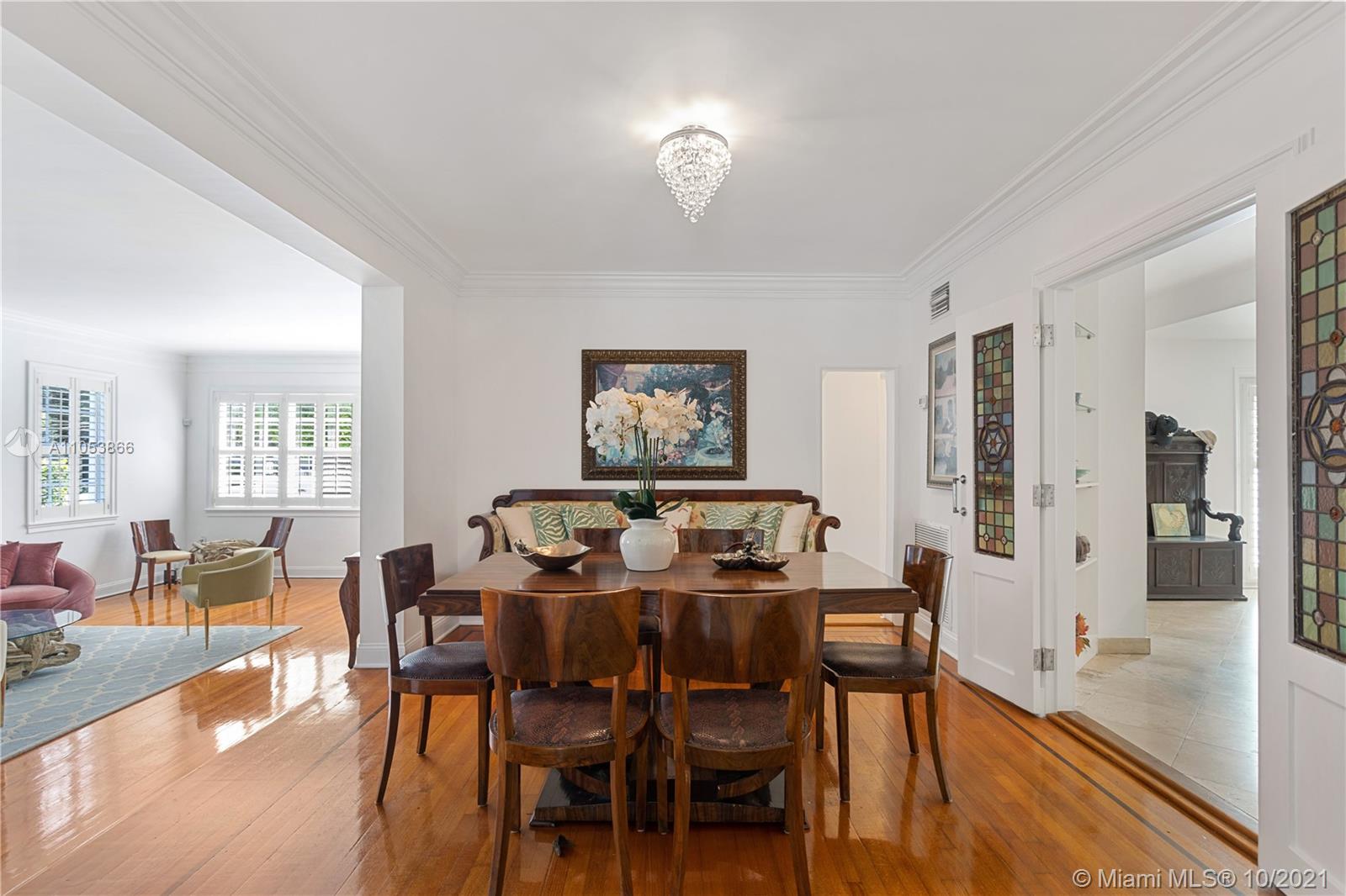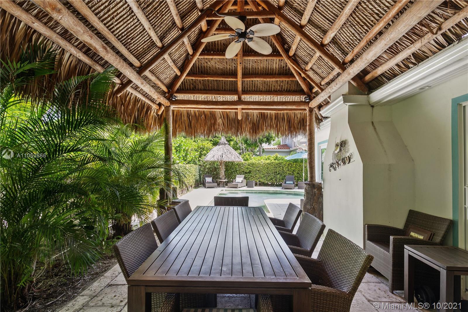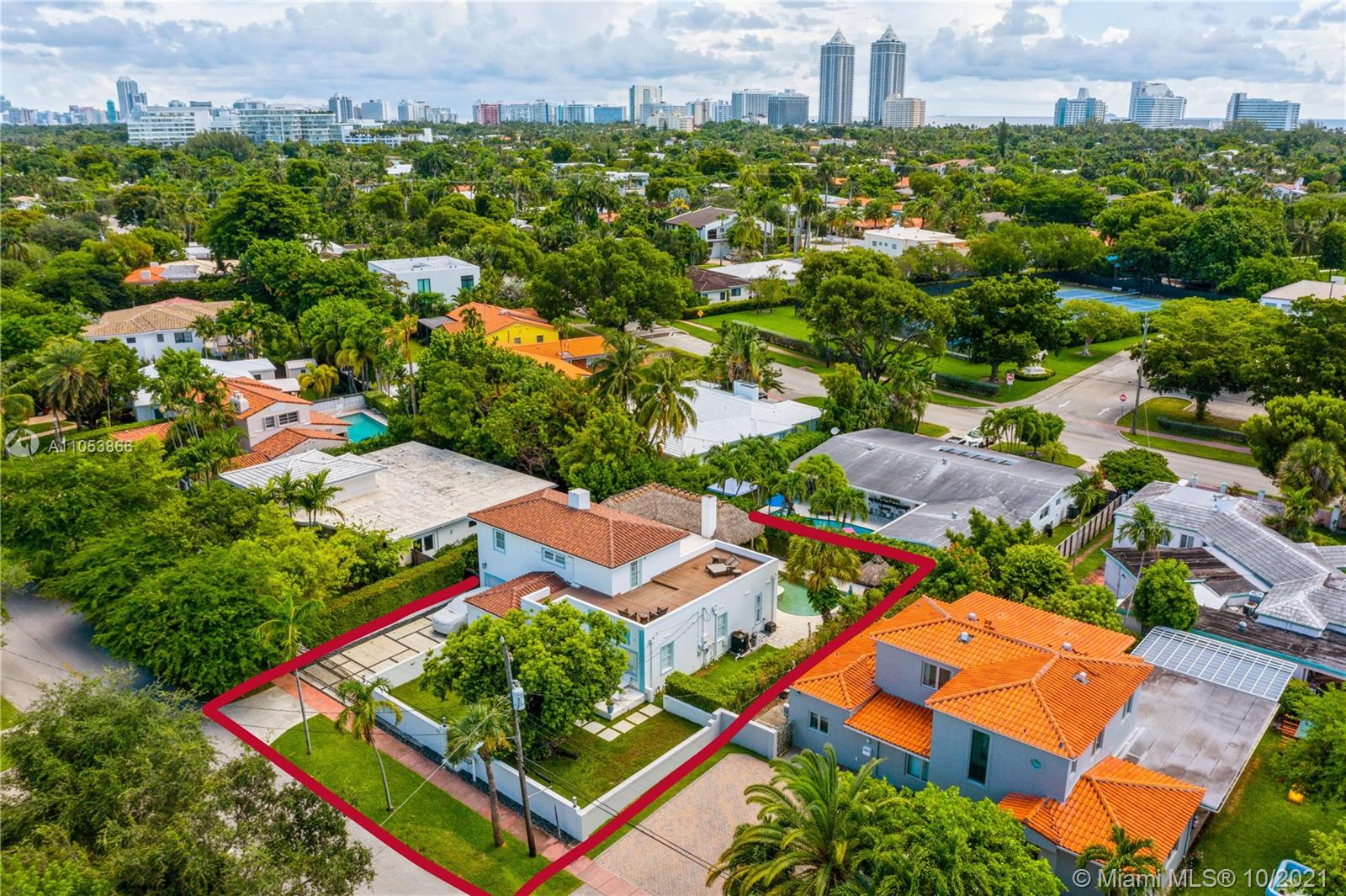 One of a kind and very likable 2-story gated Home in the heart of Miami Beach. Art Deco Style w/ a touch of Mediterranean. Beautiful home w/ elegant hardwood floors thru out. Best location just a few blocks from shopping and restaurants. This charming home features 4 bed / 3 bath w a very open floor plan, 2 bed downstairs + 2 bed upstairs. Tropical private backyard / pool area w/ Tiki Hut, outdoor Bar + BBQ, amazing for outdoor entertaining. The primary bedroom upstairs comes with an inviting large roof top terrace to enjoy a night under the stars. This perfect Miami Beach Home has been completely redone and is ready for you to move in. 1 Car garage.