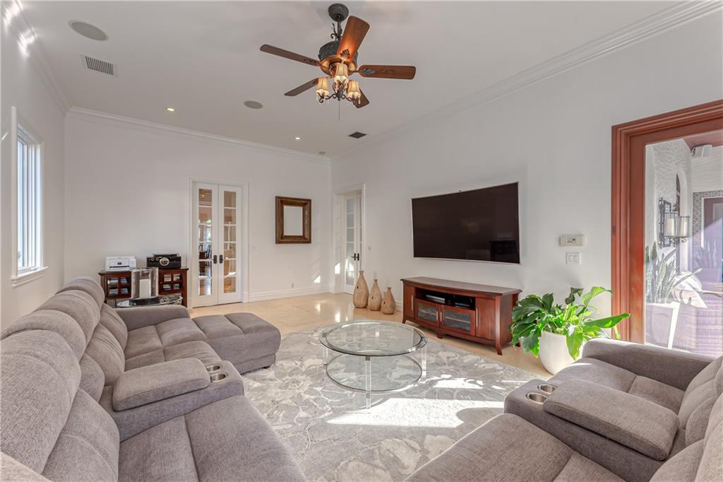 Live in this custom-built Rio Vista estate with stunning waterfront views. The walled grounds offer a perfectly manicured and private garden. Features include six large en-suite bedrooms including two on the main level, and the master suite with its own sitting room, private balcony access and grand six-piece bathroom. Ceilings reaching the second story in the living room with a fireplace. French doors leading out to the inviting backyard with a resort-style pool and entertaining areas. European gourmet eat-in kitchen with bay windows, and a separate dining room with wood-beamed ceilings and a wine room that can be converted into an elevator. 90 feet of waterfront access for exclusive use by permit holder.