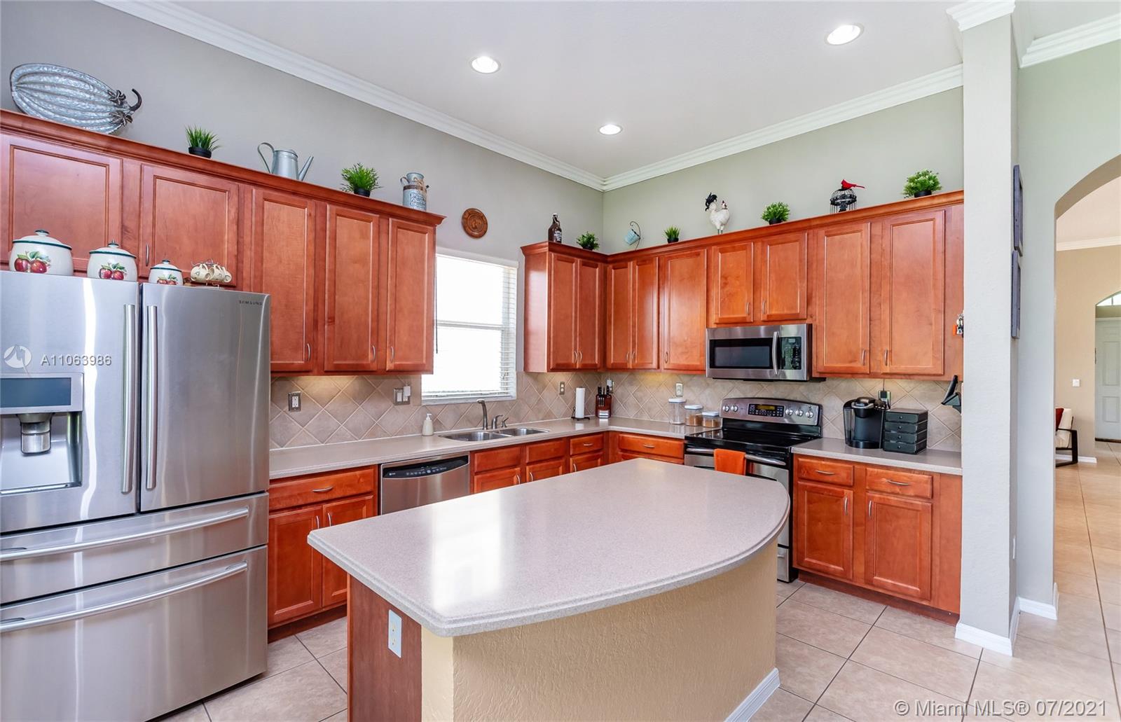 Welcome to this spacious home in the guard-gated community of The Reserve at Huntington. No rear neighbors offering extra privacy, featuring volume ceilings, an expansive master bedroom/bath suite with dual walk-in closets & double sinks. Open kitchen to family room, appointed with wood cabinetry, stainless steel appliances & Corian countertops. 3 bedrooms + Office/Den (4th bedroom) and 3 baths (1 updated). Indoor laundry room, tile flooring throughout social areas & guest bedrooms, plus wood-like laminate flooring in 4th bedroom & master bedroom. Newer exterior paint, room for a pool, located near I-75 & FL Turnpike, shopping & restaurants. Community amenities include pool, gym, clubhouse + parks with playgrounds. HOA covers in-home security alarm and cable.