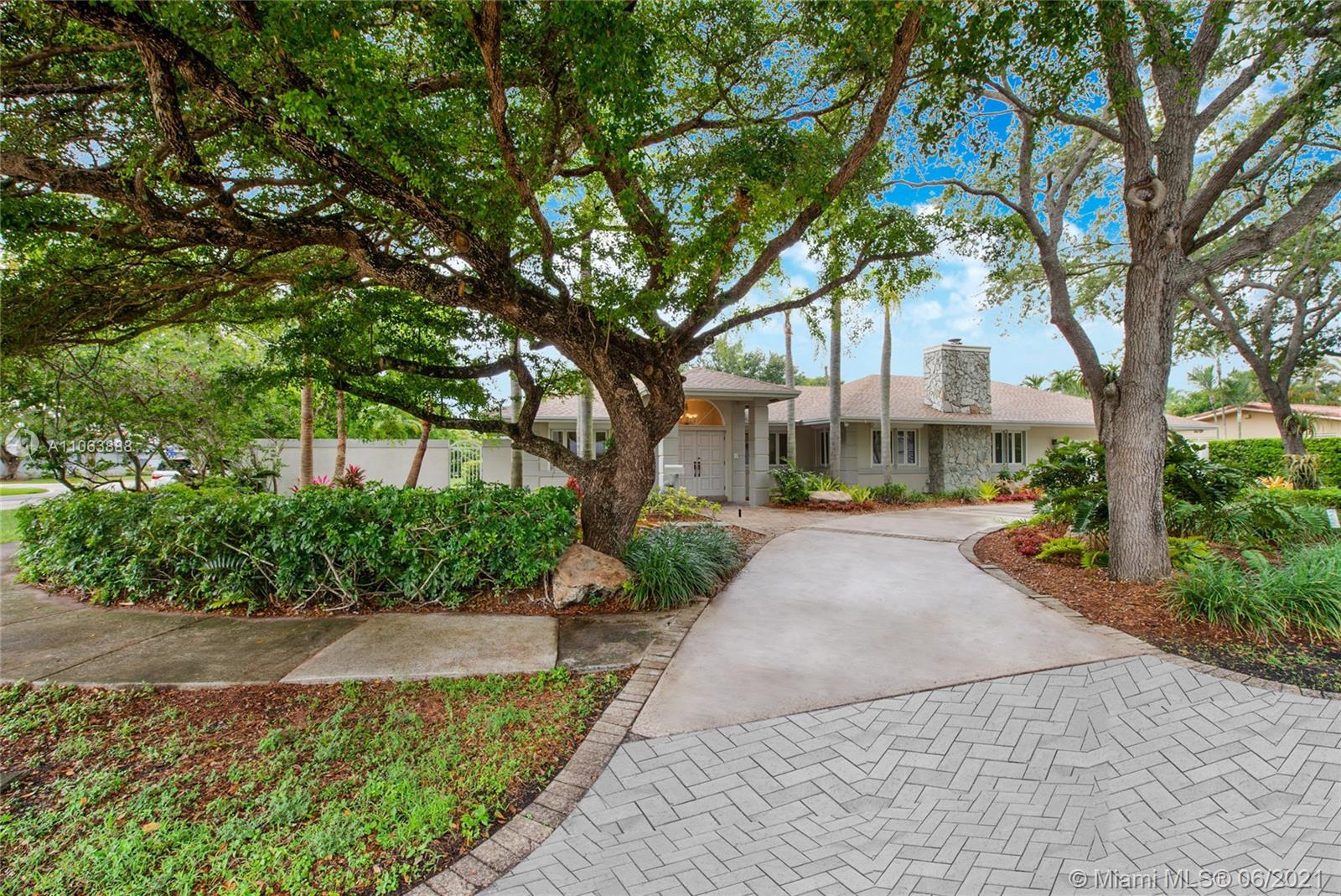 Fall in love with this timeless, contemporary ‘stand-out’ home built in 1960 but re-invented in 1992 with volume ceilings and an open-floor concept; a home ahead of its time. A fabulous floor plan with formal foyer entry, wonderful poolside master suite, eat-in kitchen & snack court, giant family room w/ fireplace, and the most spacious formal living and dining rooms will wow all who enter. Entertain and live alfresco in a splendid pool setting with wide covered terrace and lush greenspace, and for the practical minded who can resist a REAL laundry room, full 2-car garage, parking for a fleet, and a short walk to school? A little polish, shine, and styling will make this Pinecrest home shine bright. 2-year roof, 3-year HVAC, and newly resurfaced pool pave the way for a new generation.
