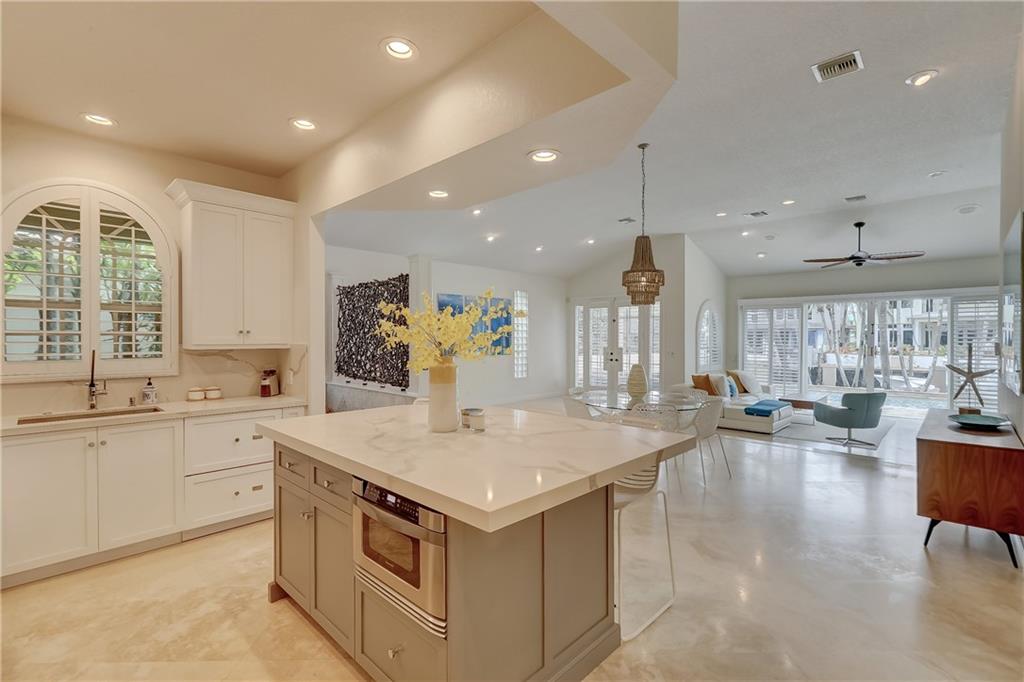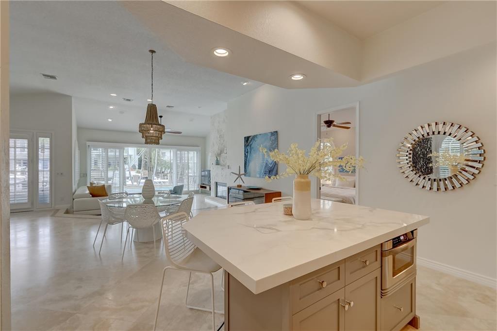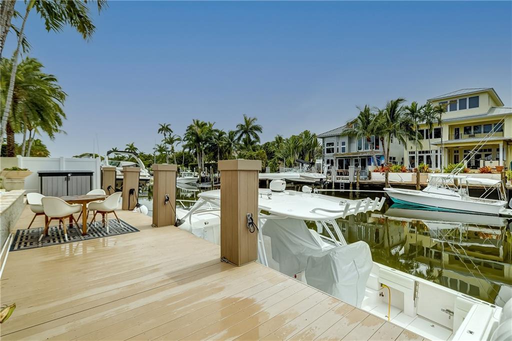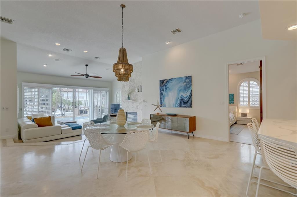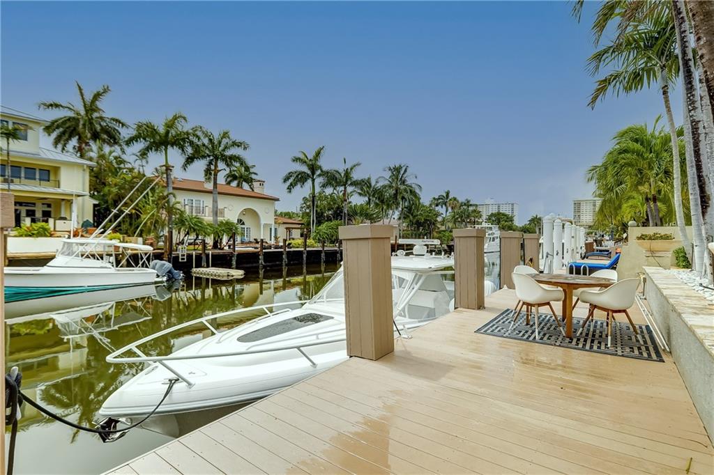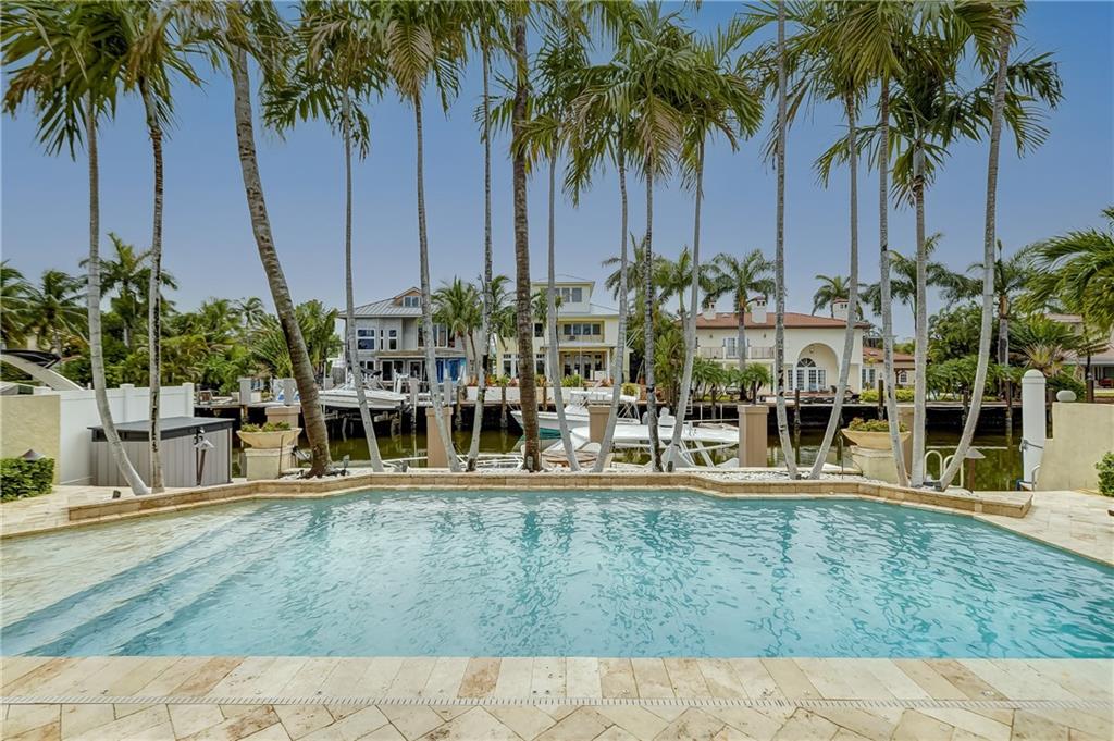 Newly Priced! Amazing opportunity to live on the waterfront in prestigious Idlewyld! This 4 bed/3 bath pool home features an open concept w/ vaulted ceilings & upgrades galore. New roof(2020) including impact windows skylights (shutters in rear), Remodeled kitchen (2020)w/ gas cooking, Viking appliances, Quartz tops, double dishwasher, Built-in bar off the kitchen. Bathrooms well appointed w/ marble countertops, closets throughout. Marble & wood flooring, New Washer & Dryer(2020), plantation shutters . Exterior offers resort style amenities. Salt Water pool, new pool heater(2020), new travertine marble pavers reset on driveway & pool deck (2020), New dock(2018), 50 amp power, tankless gas hot water, Gas lanterns front & back, SWAT mosquito misting system(2020) Home offered fully furnished!