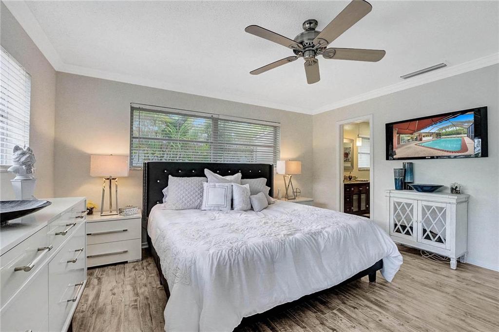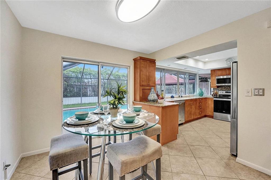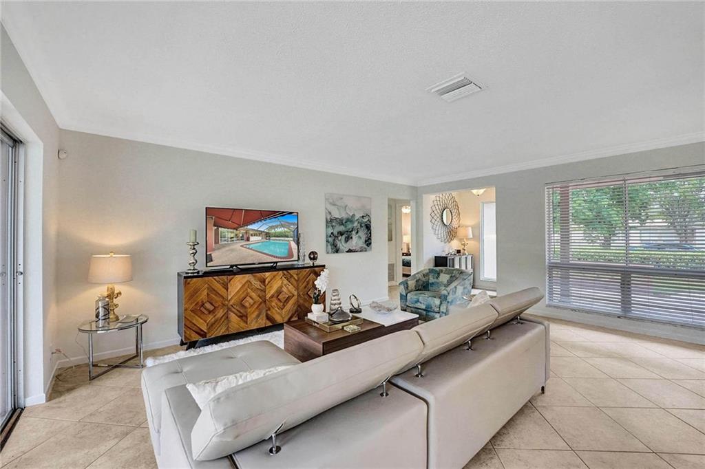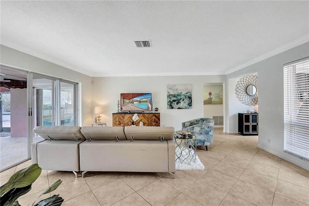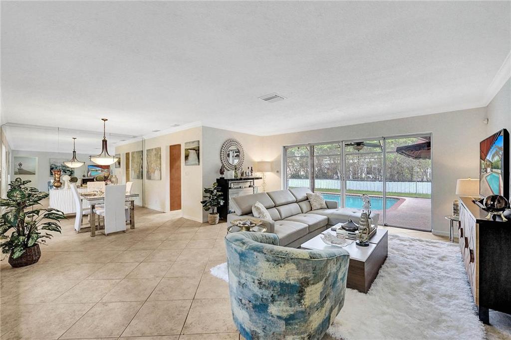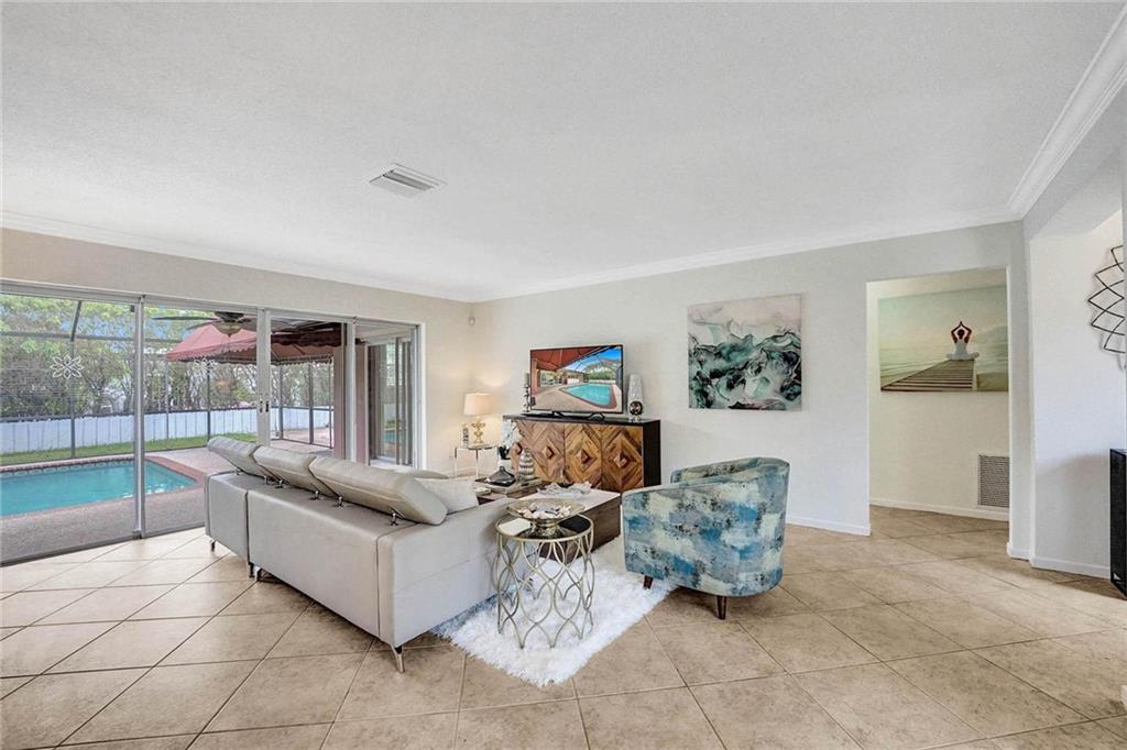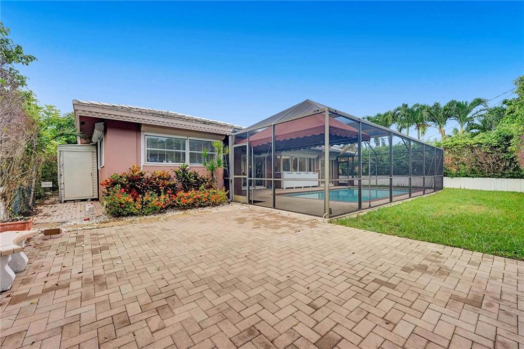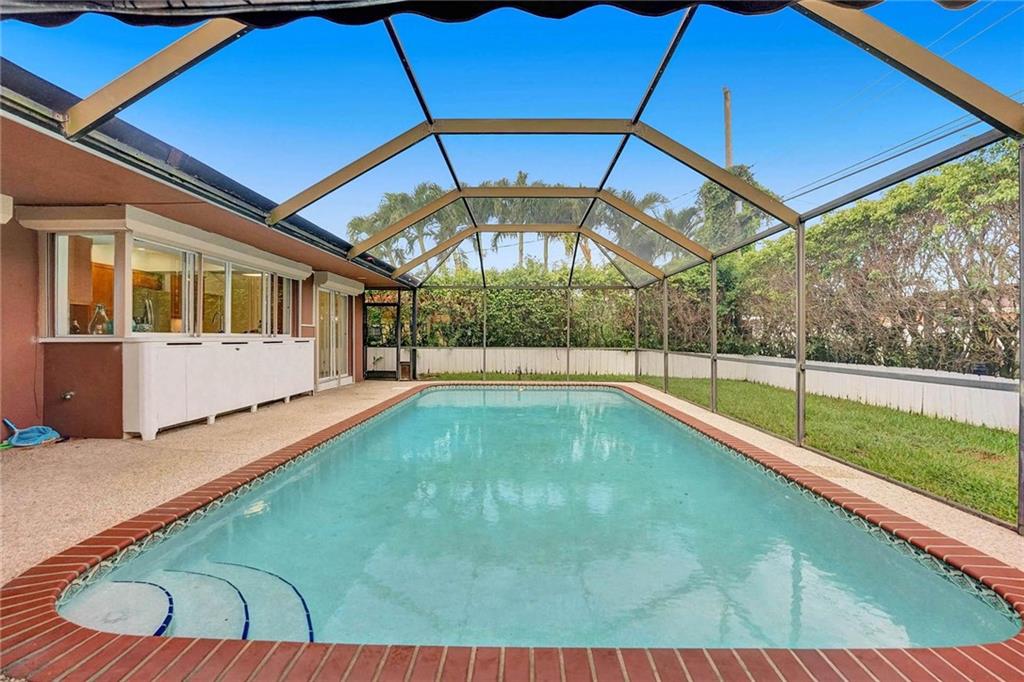 Now Offering, This wonderful home located in Imperial Point neighborhood. Freshly painted interior, new flooring in bedrooms. The property offers a large open floor plan with a screened-in swimming pool. 3 bedrooms 2 bathrooms. Great space for entertaining, The Pool can be viewed from all the main rooms. The Interior and exterior have been freshly painted. The Home currently has the 3rd bedroom which was converted from the original garage. Off of the pool in the backyard is a large paved courtyard for outside seating. Great space to put a grill or build your own outdoor kitchen.
