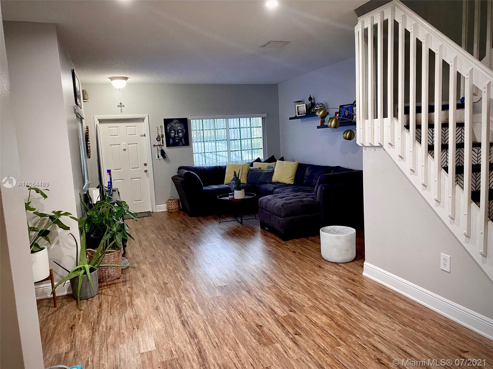 Gorgeous 4/2/1 corner totally upgraded townhome. Newer kitchen with quartz countertops, mosaic backsplash, and s/s appliances. Newer vinyl floors. Open Layout concept. Hurricane impact windows. Newer roof that is covered by HOA. All brand new bathrooms with new vanities, showers, glass doors, and newer toilets.
