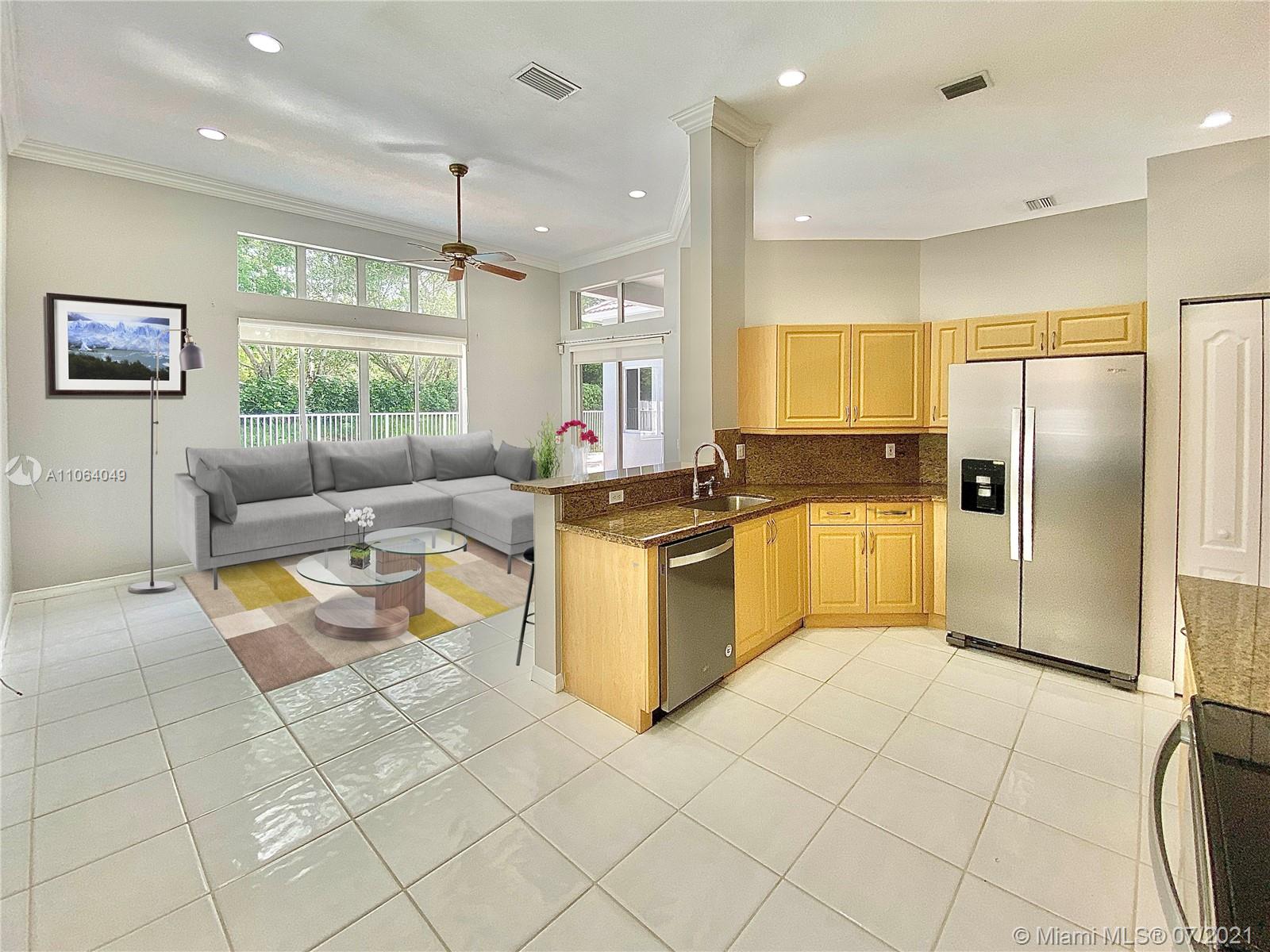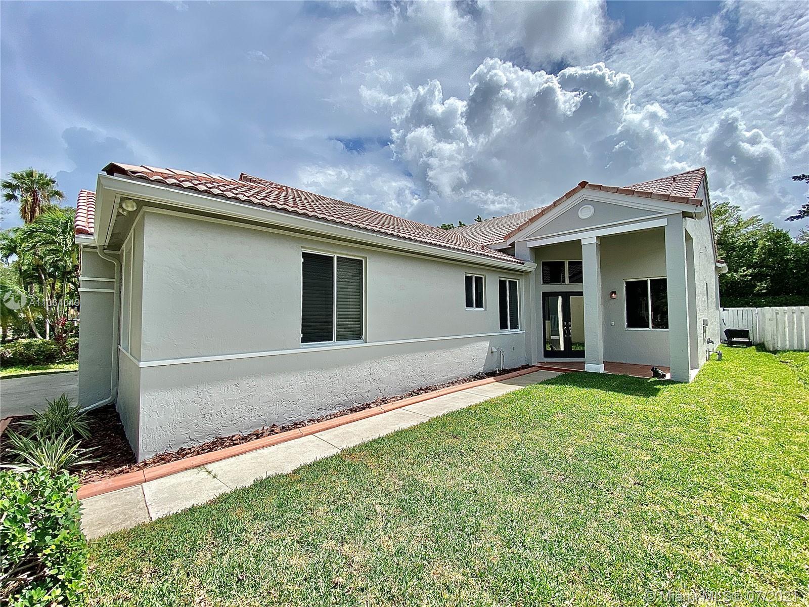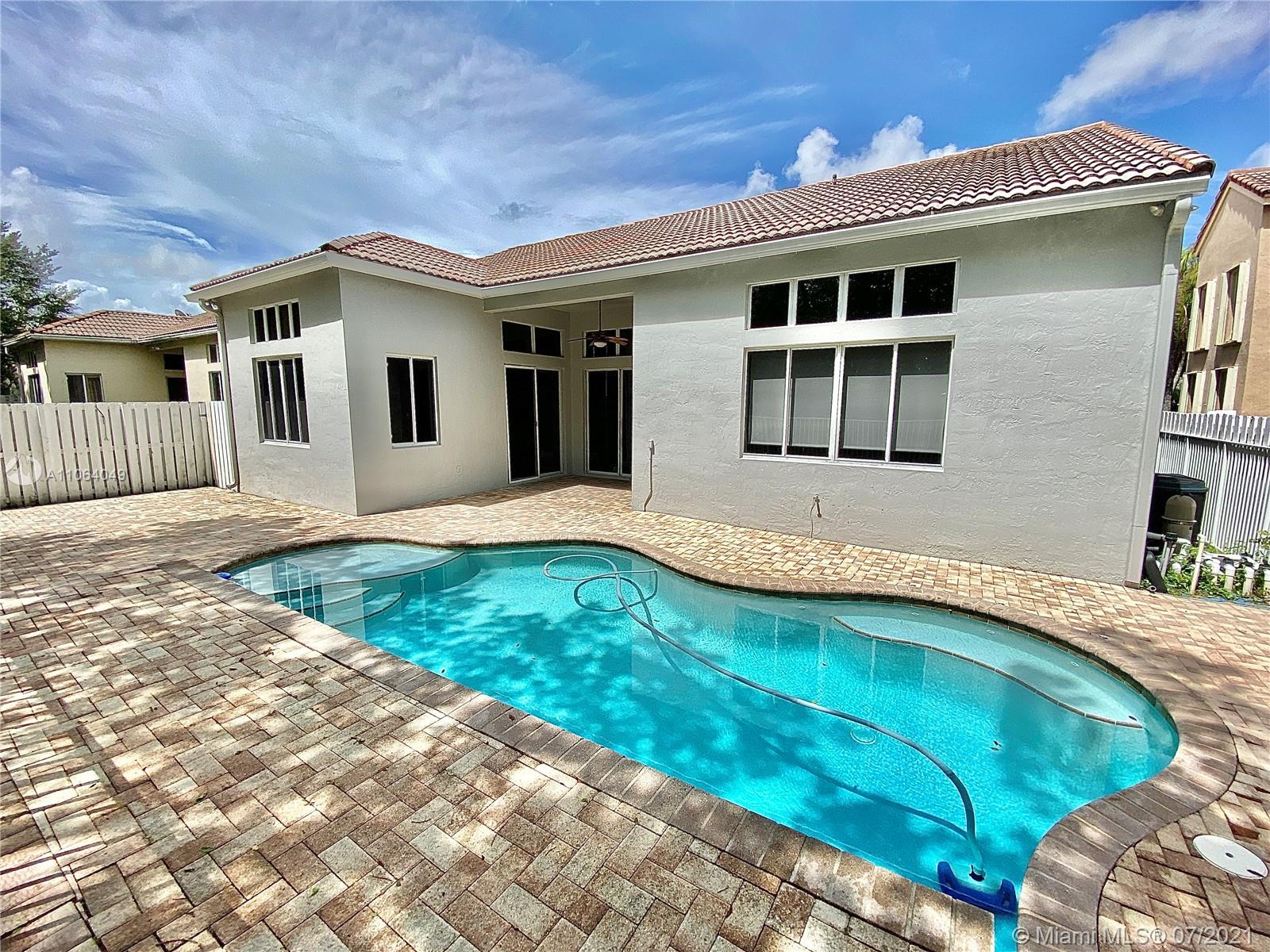 TALK ABOUT LOCATION! IMPRESSIVE 1 STORY POOL HOME AT THE ISLANDS BOASTING HIGH CEILINGS & PLENTY OF NATURAL LIGHT. FEATURING WOOD & TILE FLOORING, SPACIOUS KITCHEN WITH GRANITE COUNTERS & BRAND NEW STAINLESS APPLIANCES. THIS PEFECTLY LAID OUT FLOOR PLAN OFFERS LARGE & INVITING SPACES WITH FORMAL DINING, LIVING AND FAMILY ROOMS, 4th BEDROOM USED AS OFFICE/DEN. RECENTLY UPDATED A/C UNIT (2020) NEW EXTERIOR & INTERIOR PAINT, FENCED BACKYARD WITH BRICK PAVERS. GATED COMMUNITY WITH BASKETBALL COURTS & PLAYGROUND, SO CLOSE TO WESTON TOWN CENTER, BEST SCHOOLS AND MAIN ROADS! *Owner will credit buyer for Accordion Shutters Installation throughout the home*