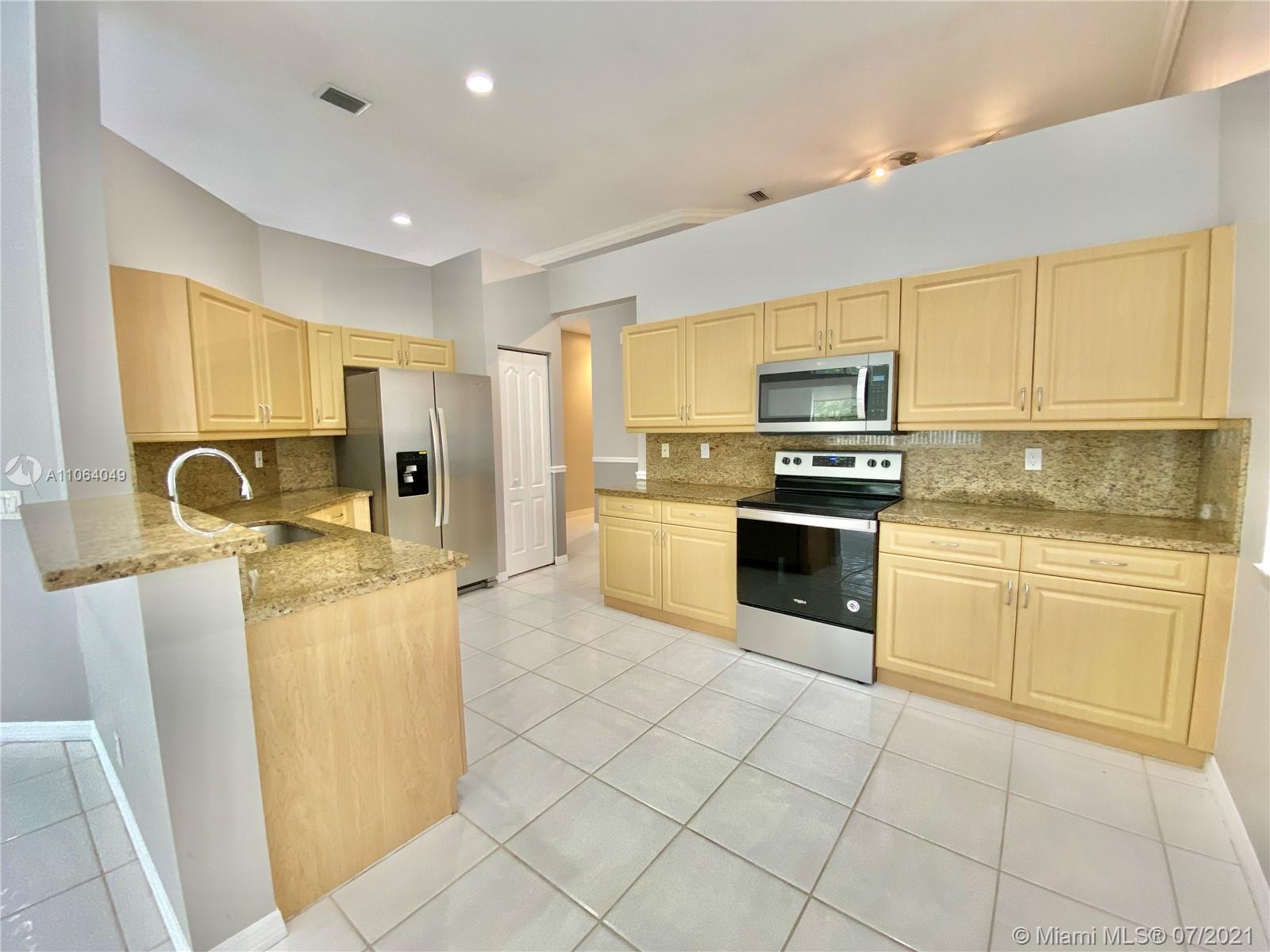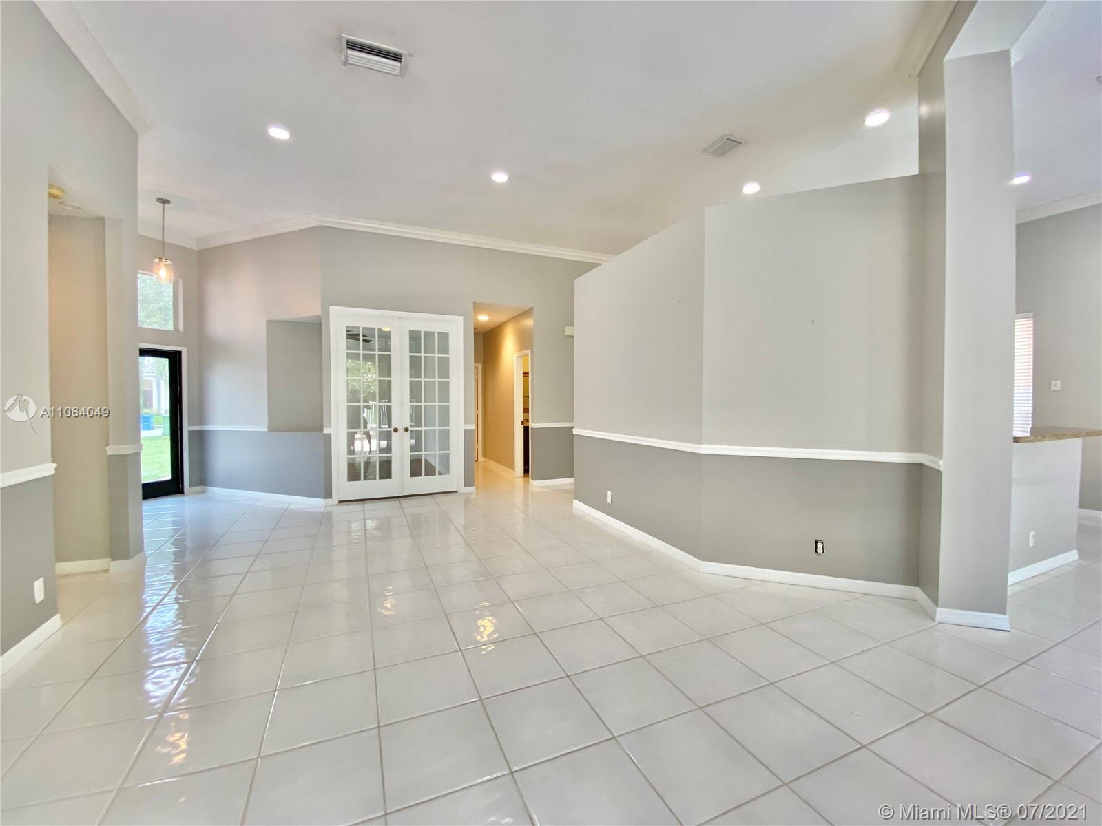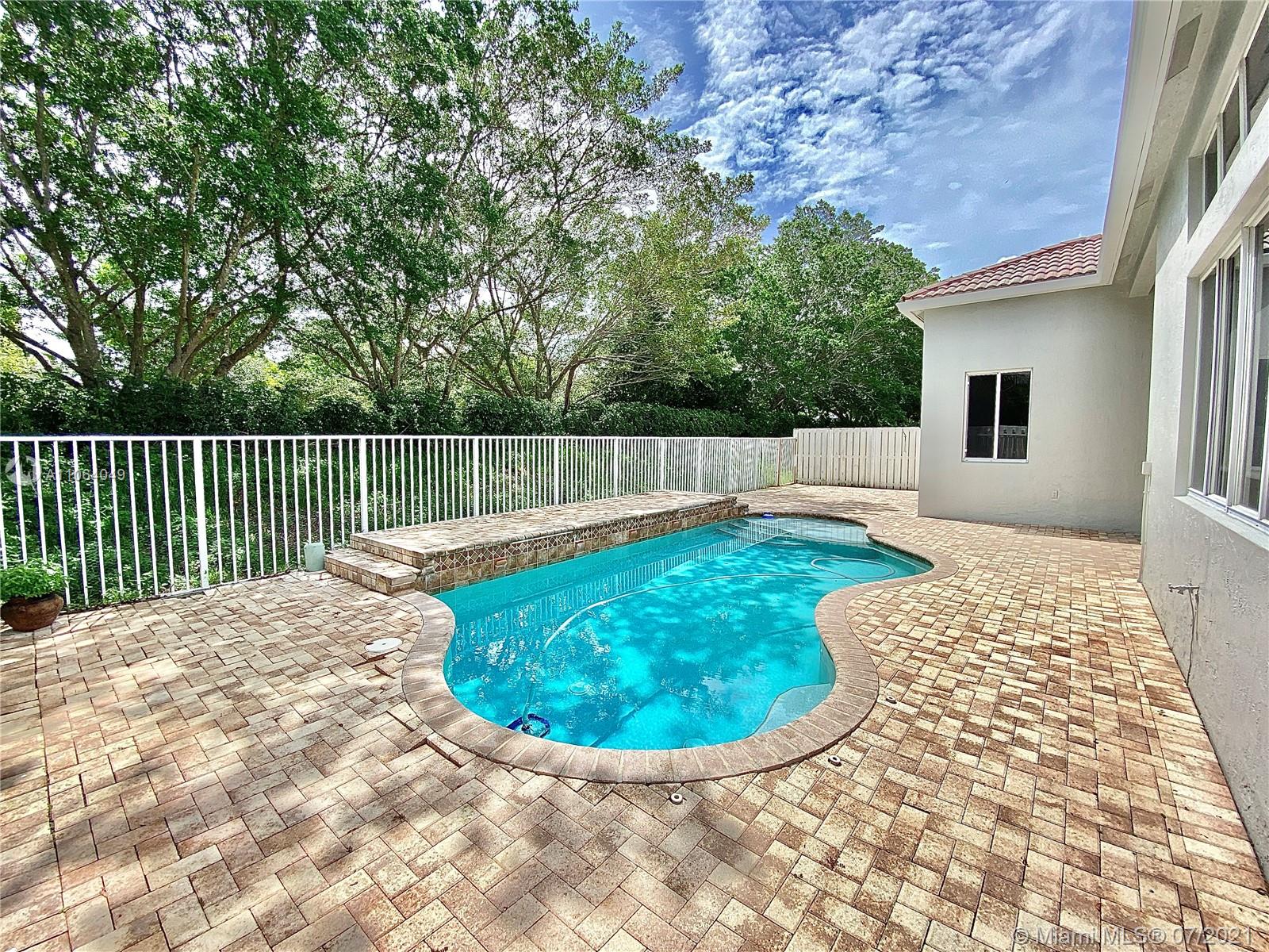TALK ABOUT LOCATION! IMPRESSIVE 1 STORY POOL HOME AT THE ISLANDS BOASTING HIGH CEILINGS & PLENTY OF NATURAL LIGHT. FEATURING WOOD & TILE FLOORING, SPACIOUS KITCHEN WITH GRANITE COUNTERS & BRAND NEW STAINLESS APPLIANCES. THIS PEFECTLY LAID OUT FLOOR PLAN OFFERS LARGE & INVITING SPACES WITH FORMAL DINING, LIVING AND FAMILY ROOMS, 4th BEDROOM USED AS OFFICE/DEN. RECENTLY UPDATED A/C UNIT (2020) NEW EXTERIOR & INTERIOR PAINT, FENCED BACKYARD WITH BRICK PAVERS. GATED COMMUNITY WITH BASKETBALL COURTS & PLAYGROUND, SO CLOSE TO WESTON TOWN CENTER, BEST SCHOOLS AND MAIN ROADS! *Owner will credit buyer for Accordion Shutters Installation throughout the home*
