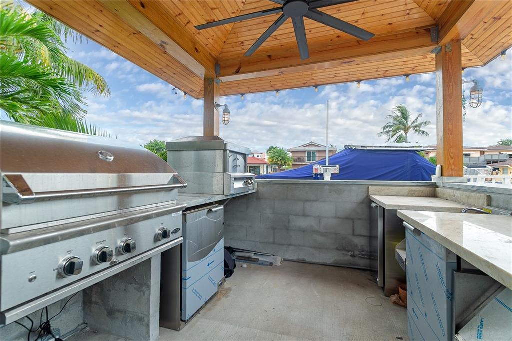 Fully Furnished and Turnkey Waterfront Home in gated community of Bal Harbour. No detail was overlooked in this completely renovated home designed to enjoy the best of indoor/outdoor living South Florida has to offer. Chef's kitchen boasts a large island perfect for entertaining, quartz counters and Wolf gas range. Master Suite has custom built-ins, dual vanity and separate shower and soaking tub. Triple split floor plan allows for privacy in 2 guest rooms, both with new en-suite bathrooms. New Impact Windows and Doors throughout and updated electric and plumbing. Outside is a tropical paradise with pool and over 120 feet of waterfront. Brand new Summer Kitchen is complete with gas grille, pizza oven, ice maker and refrigeration. New dock and lift. Just bring your boat!