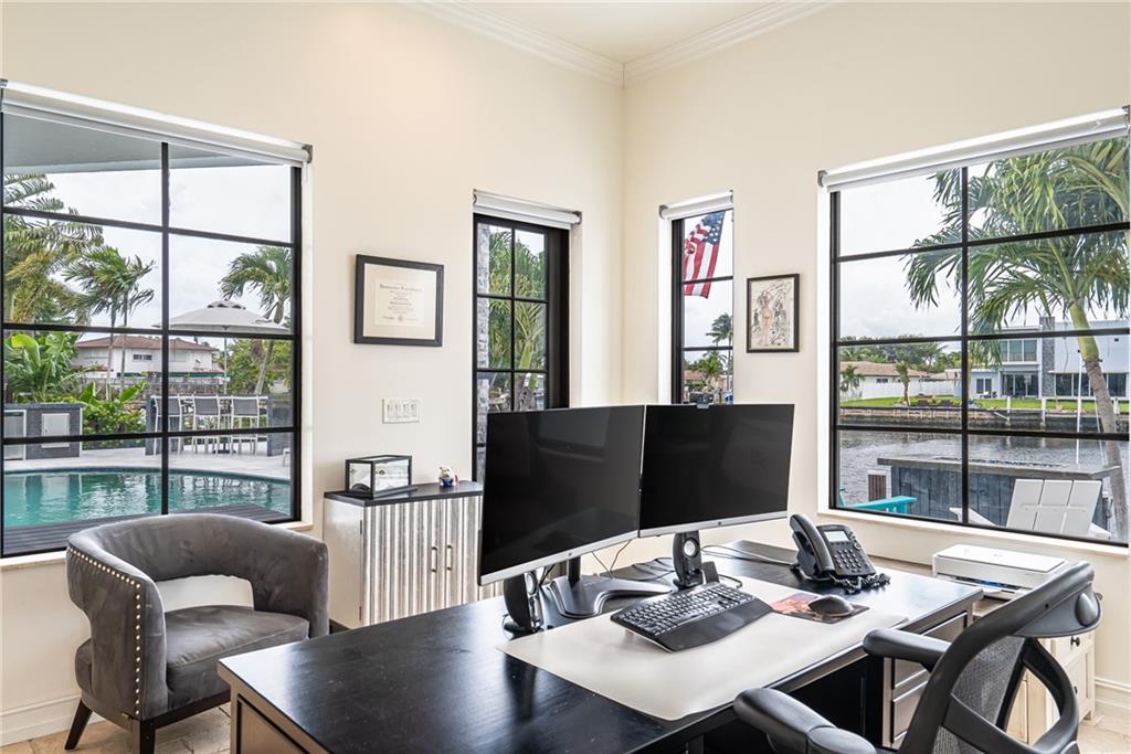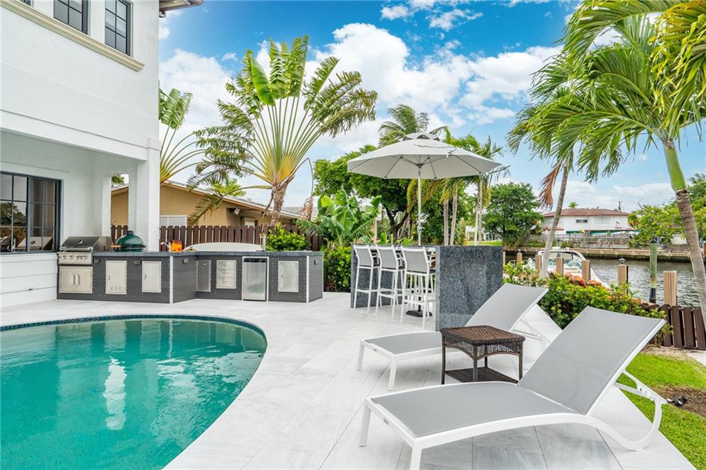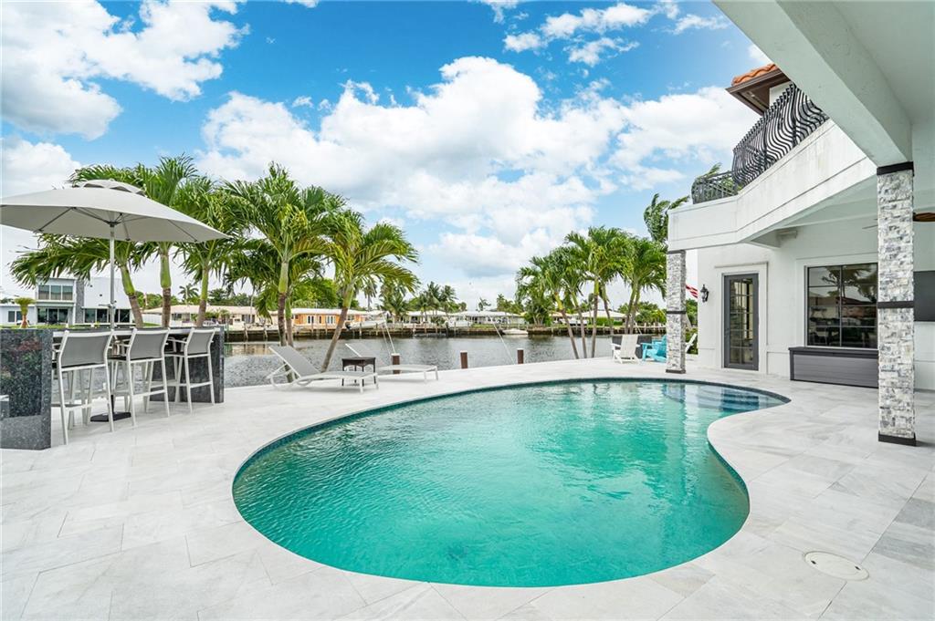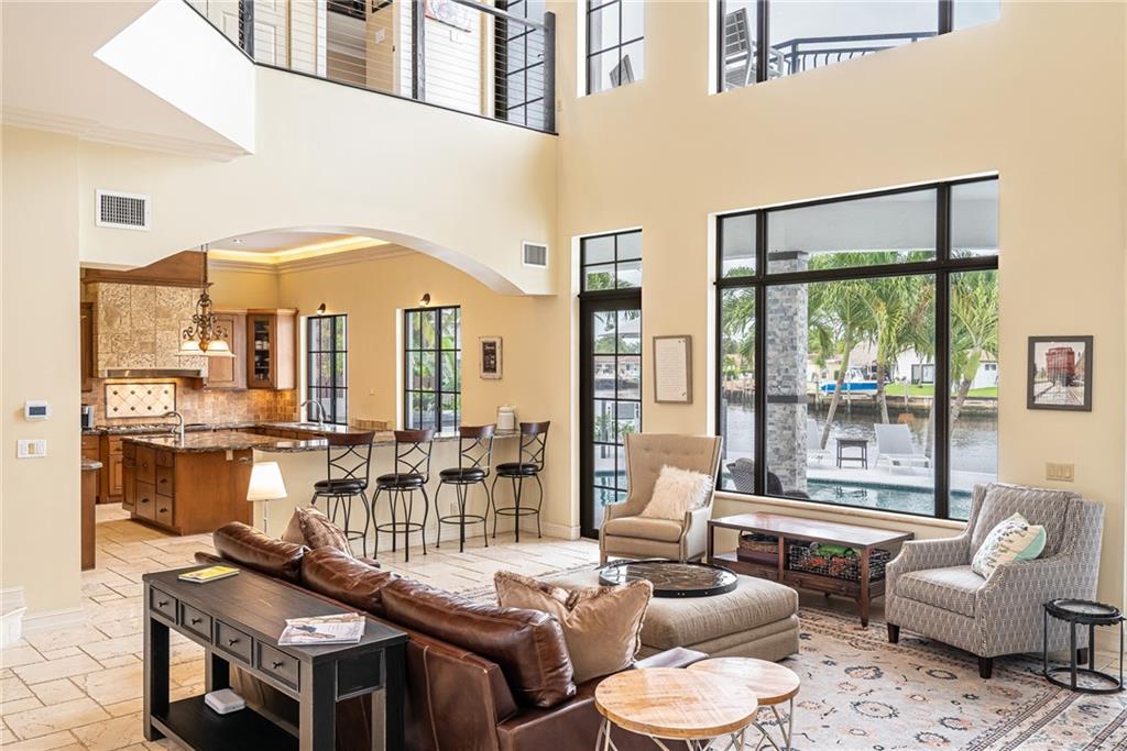 This absolutely stunning home features an incredible amount of space for the East side of town! HUGE Main bedroom suite features dual walk in closets, sitting area, massive bath with dual vanities and private waterfront balcony! Outdoor entertainers dream was just upgraded with a NEW outdoor kitchen complete with dual kegerator, grill with lifetime warranty and built-in big green egg! Paver patio was almost doubled in size for extra space and you have 80ft of water-frontage on extra WIDE intersecting canals. It's truly a boaters dream and if you like natural light, this home is perfect! Gorgeous sunrises fill the main living area, bedrooms and kitchen with great lighting that dances on volume ceilings! Homeowner has already purchased sliding wall of windows for kitchen!