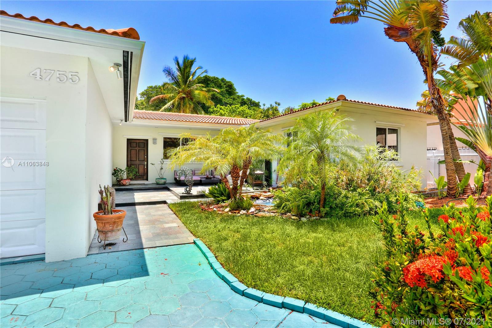 ENJOY MIAMI BEACH LIVING in this beautifully maintained MIMO style home surrounded by lush tropical landscaping! This gorgeous 3 bedroom/ 3 bathroom PLUS bonus room, features light filled open spaces, gorgeous terrazzo floors, recently updated bathrooms & a modern open eat-in kitchen with top of the line appliances. Home sits on a privately fenced spacious lot & is perfect for family living & entertaining! Additional features include updated windows, plenty of room for storage, partially updated floors and a gorgeous backyard with an outdoor shower. Conveniently located near the beach, local restaurants, shops and much more! Come make this charming oasis your home! Easy to show.