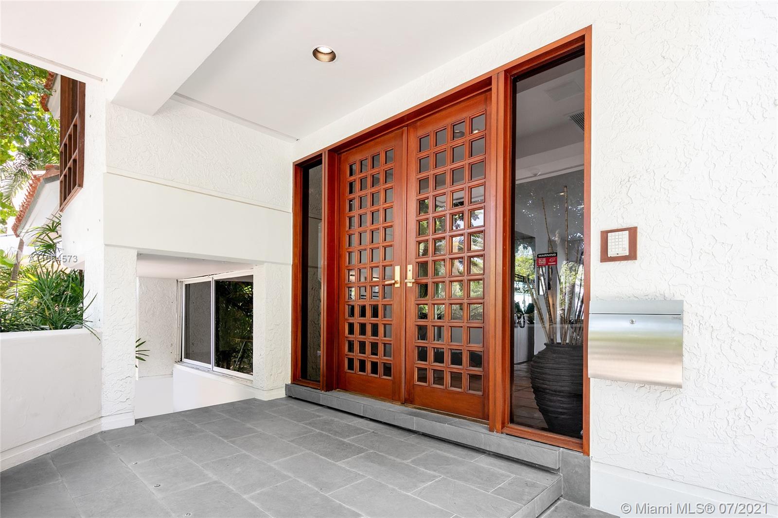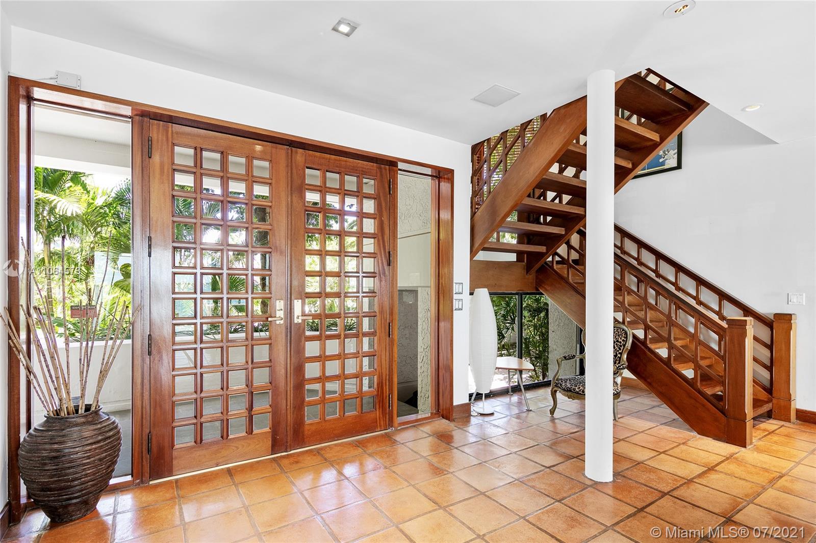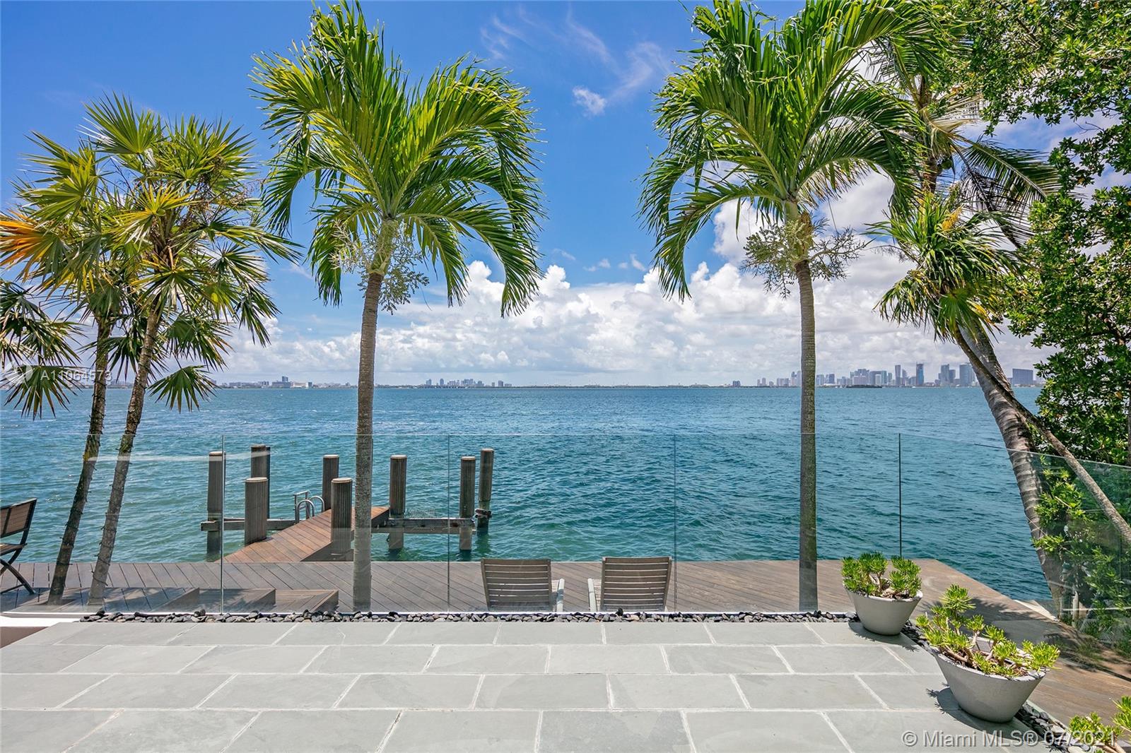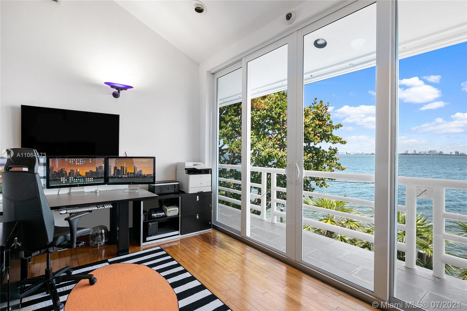 Located in guard-gated North Bay Island this 2-story, 4BR/4BA gem designed by Architect Barry Sugerman offers 70ft of sparkling waterfront facing the downtown Miami skyline w/open Biscayne Bay views. Mexican tile downstairs, carpet & bamboo floors upstairs, soaring ceilings, a wet bar, an office, spacious open living & dining area w/a custom wine cabinet. A large chef’s kitchen sports a breakfast area w/direct bay views. The 2nd floor principal suite features dual walk-in closets, dual bathrooms with direct access to a large terrace overlooking the bay. Outdoor highlights incl. a large bay-facing terrace to entertain w/summer kitchen, mature tropical landscaping, open seating areas, dock and a generator to power entire home. There is also room to build a pool, subject to permit approval.