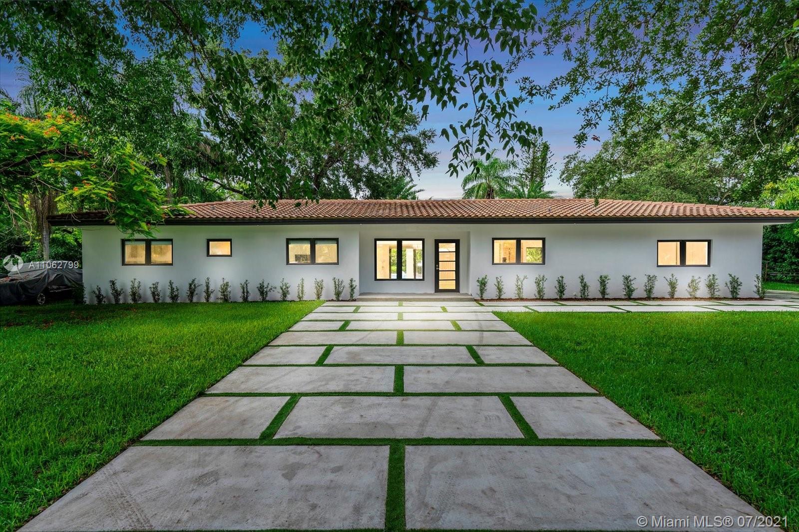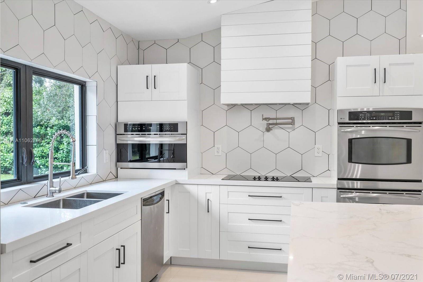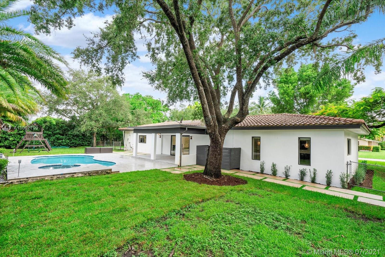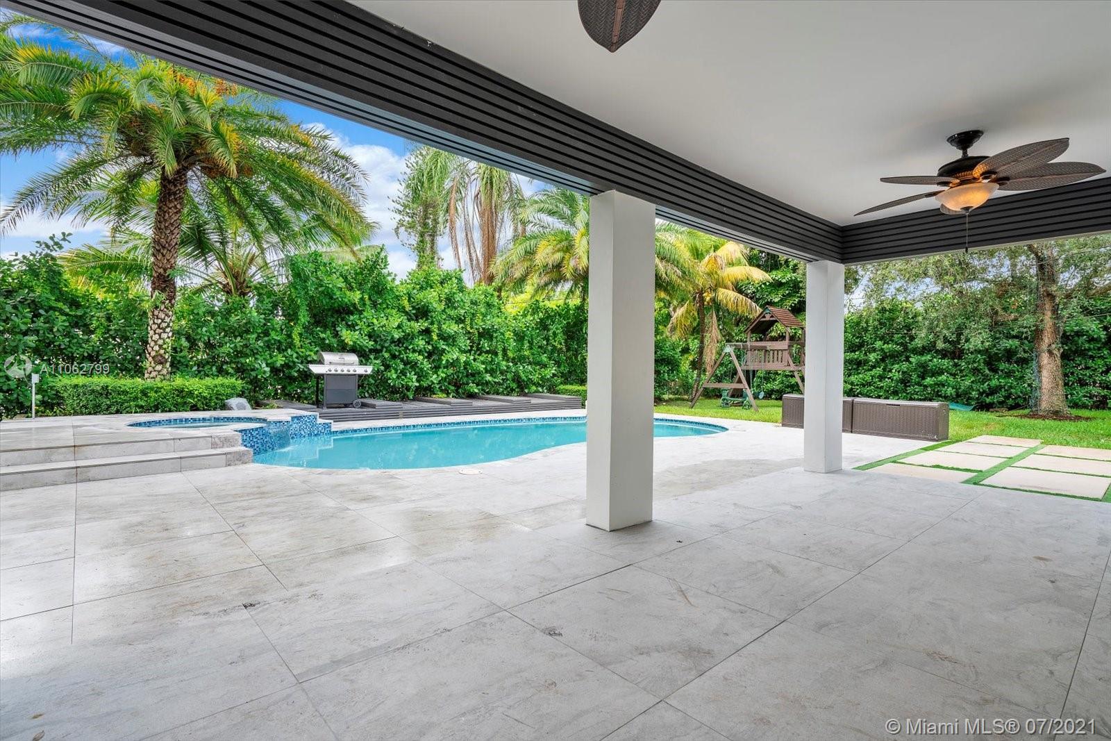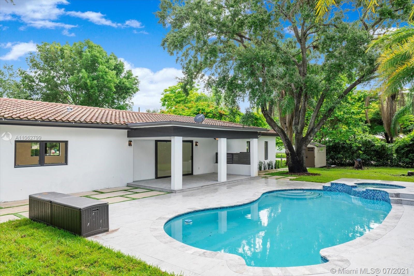Absolutely stunning modern style home tastefully designed and turnkey. The large Master Suite has a large walk-in closet. The Master Bath has double shower heads and a rainfall head. Impact glass slider leads out to a covered deck and pool area. The updated Kitchen boasts quartz countertops, stainless appliances, double ovens and a center island, all adjoining a well thought out dining room space. The home boasts porcelain tile, 7 year roof, electric water heater, updated Landscaping. Meticulously maintained by the owner this home is a ready to move in beauty priced to sell now. TVs do not convey. CHECK OUT THE VIRTUAL TOUR.