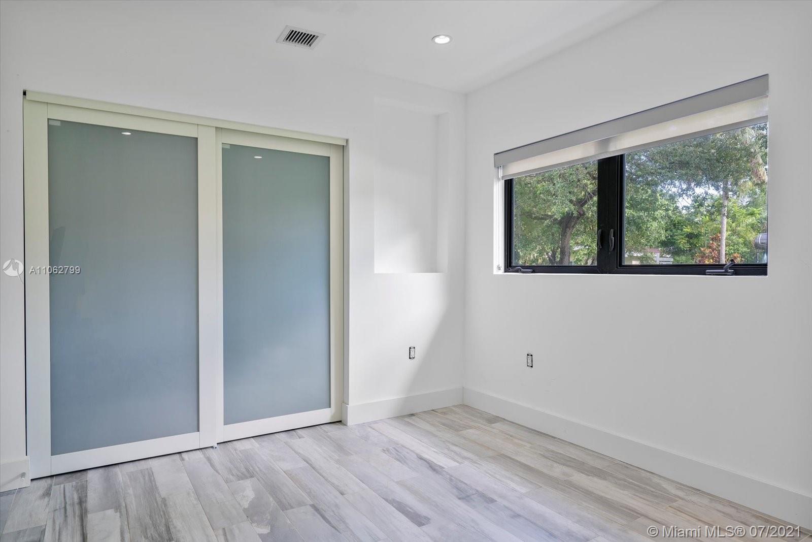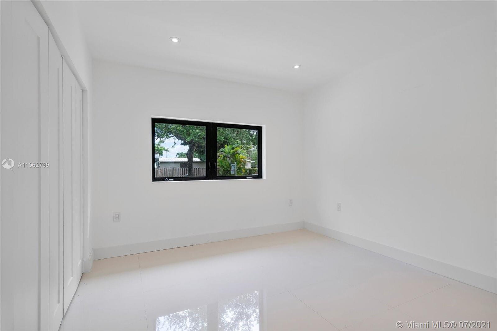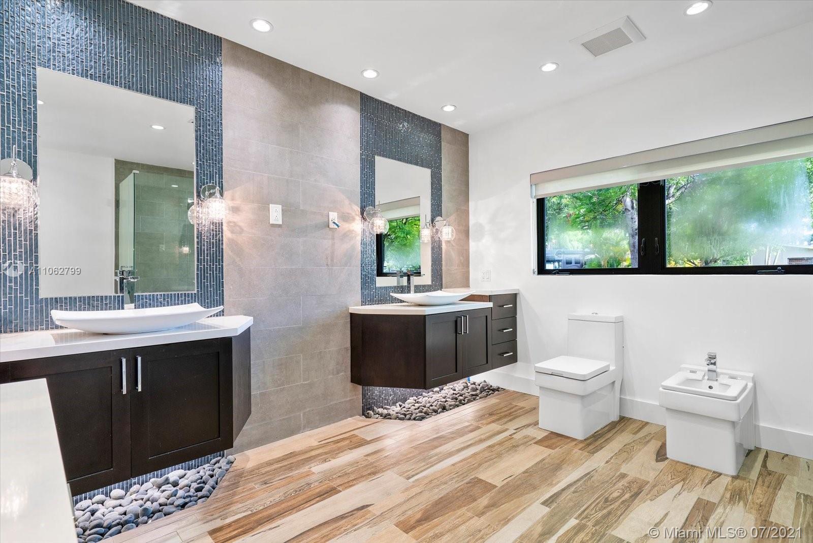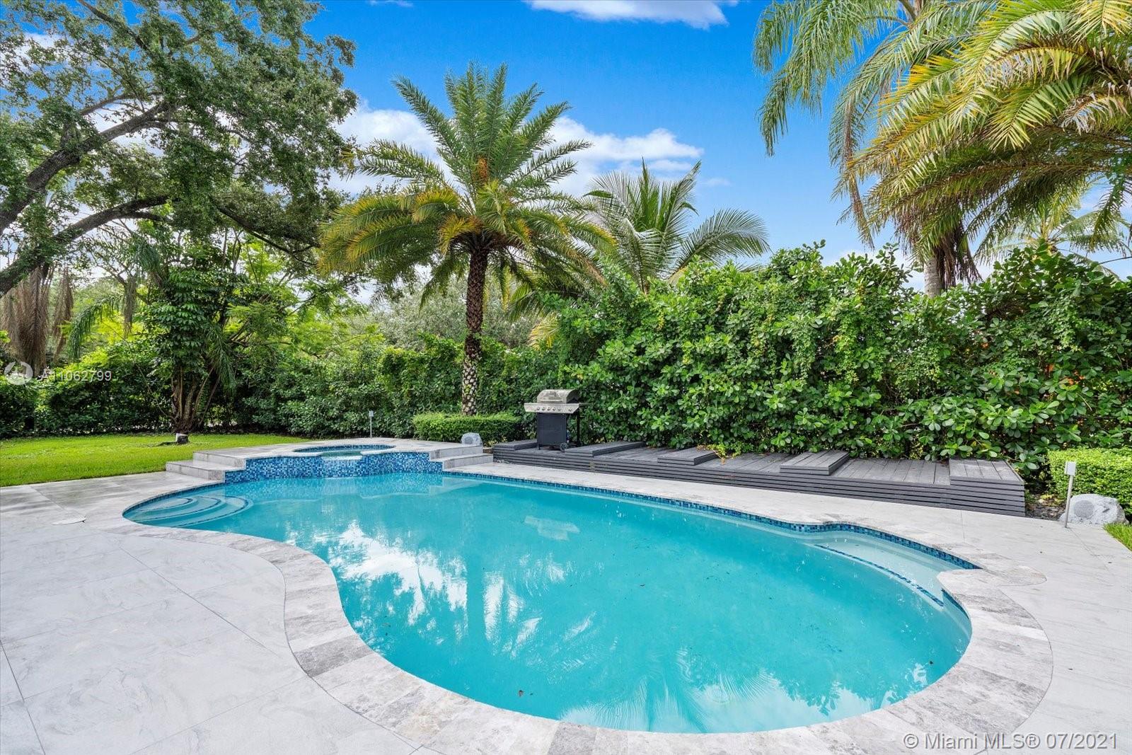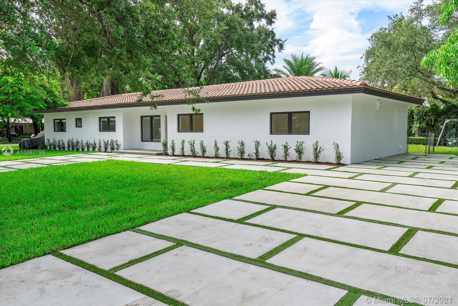 Absolutely stunning modern style home tastefully designed and turnkey. The large Master Suite has a large walk-in closet. The Master Bath has double shower heads and a rainfall head. Impact glass slider leads out to a covered deck and pool area. The updated Kitchen boasts quartz countertops, stainless appliances, double ovens and a center island, all adjoining a well thought out dining room space. The home boasts porcelain tile, 7 year roof, electric water heater, updated Landscaping. Meticulously maintained by the owner this home is a ready to move in beauty priced to sell now. TVs do not convey. CHECK OUT THE VIRTUAL TOUR.