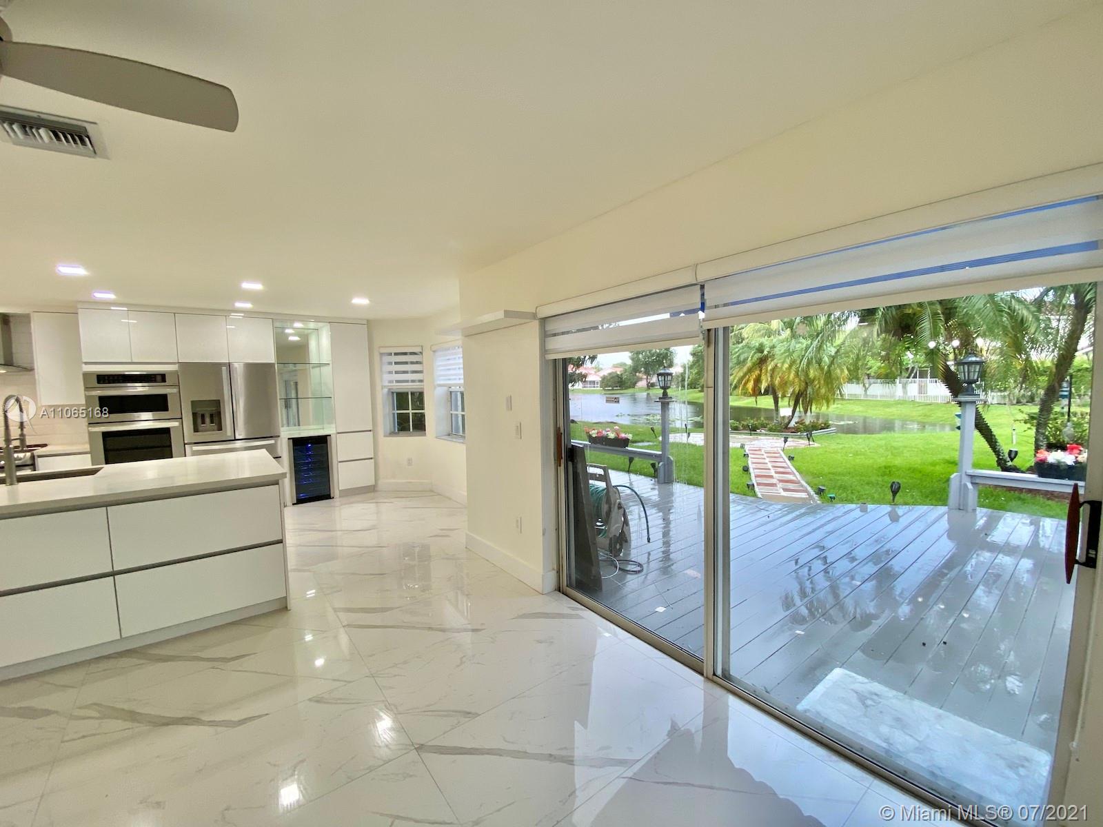 PRICED TO SELL! Welcome to your very own Oasis. This Stunning Lake Front, 2 Story Single Family Home is located in the desirable City of Weston. Former Model Home offers a superb floor plan, including 4 Bedrooms, 2.5 Bathrooms, oversized lot with the best lake view in the community. High End Designer Kitchen complete with Stainless Steel Appliances, Soft-Close Cabinets & Drawers, and breathtaking Quartz Island. Bright, Tiled Floor Throughout. Updated Bathrooms.Separate Laundry Area with Washer & Dryer. Window Treatments in every room. Spacious TRIPLE Garage. Large Deck and Spa overlooking that gorgeous Lake View. Garden Sprinkler System (Front & Rear).Accordion & Panel Hurricane Shutters. Low HOA. Close to A+ Schools ,Cleveland Clinic Hospital, Weston Town Center. HURRY WONT LAST!!!