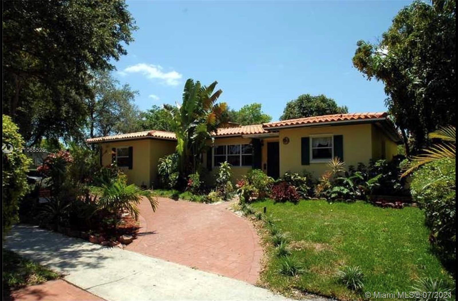 Full Renovation Needed! The perfect opportunity to remodel this unique 3/2 corner house Miami Shores, with circular driveway, large backyard with mango trees, Florida room, huge living room, eat in kitchen.