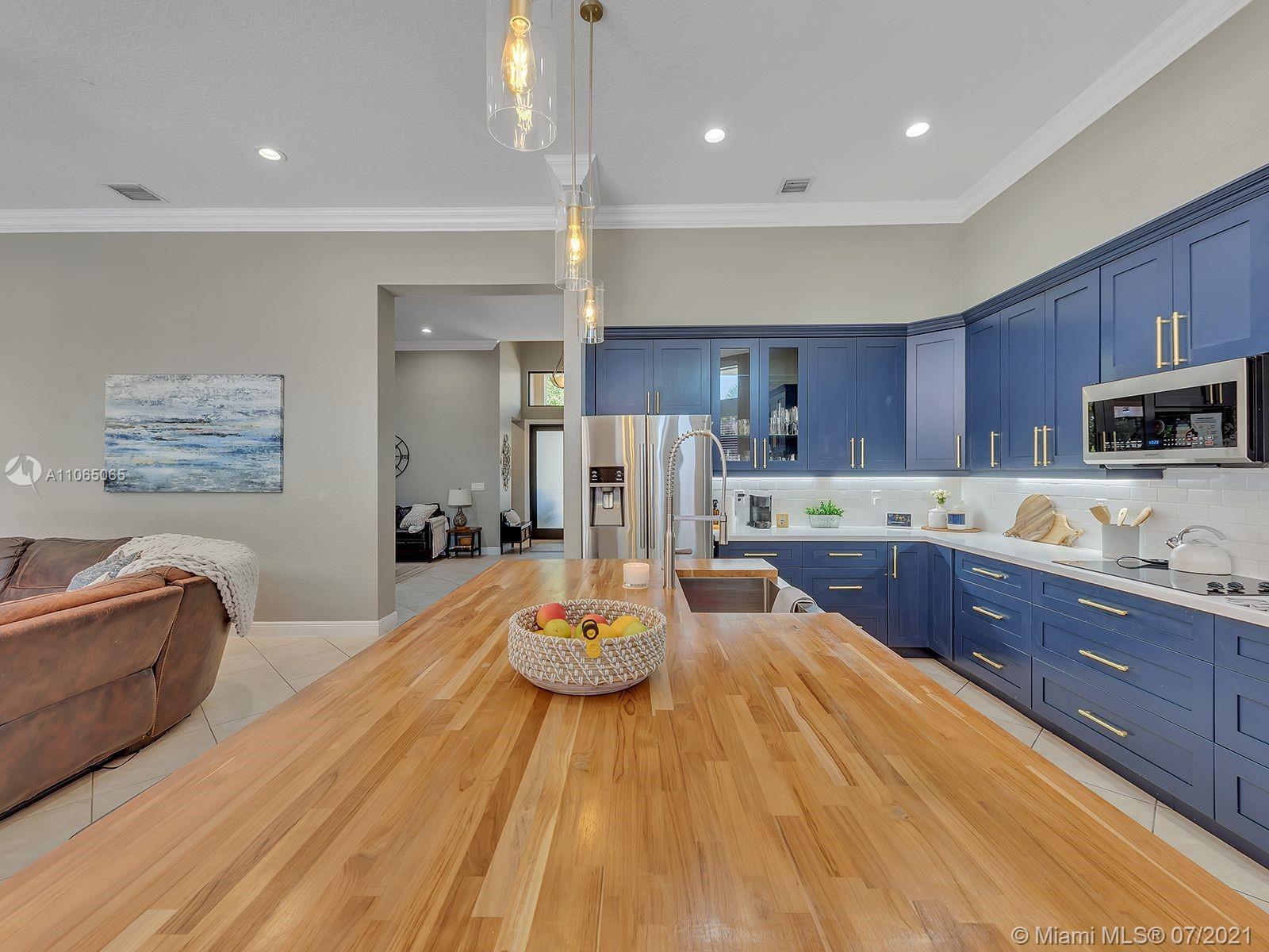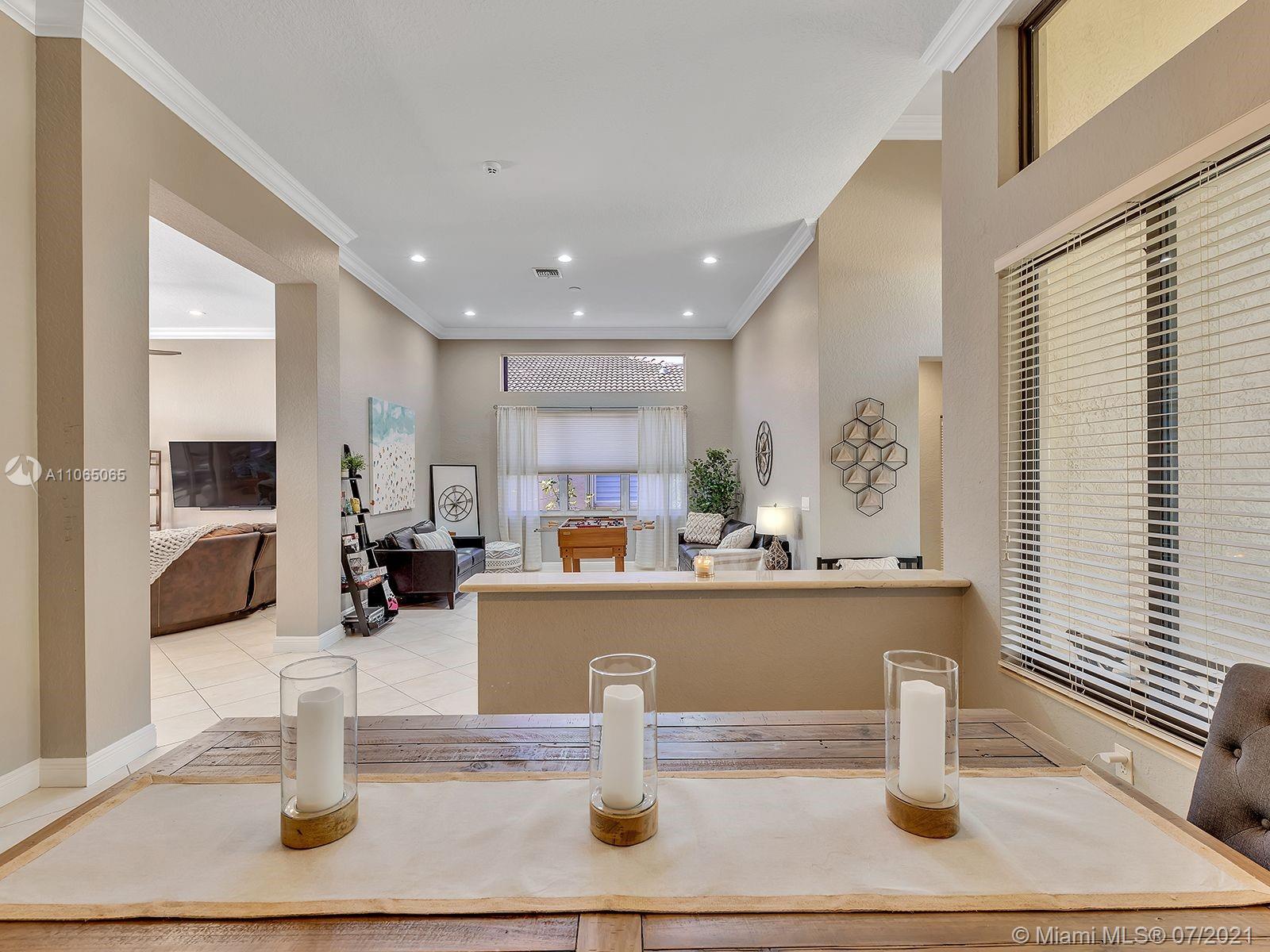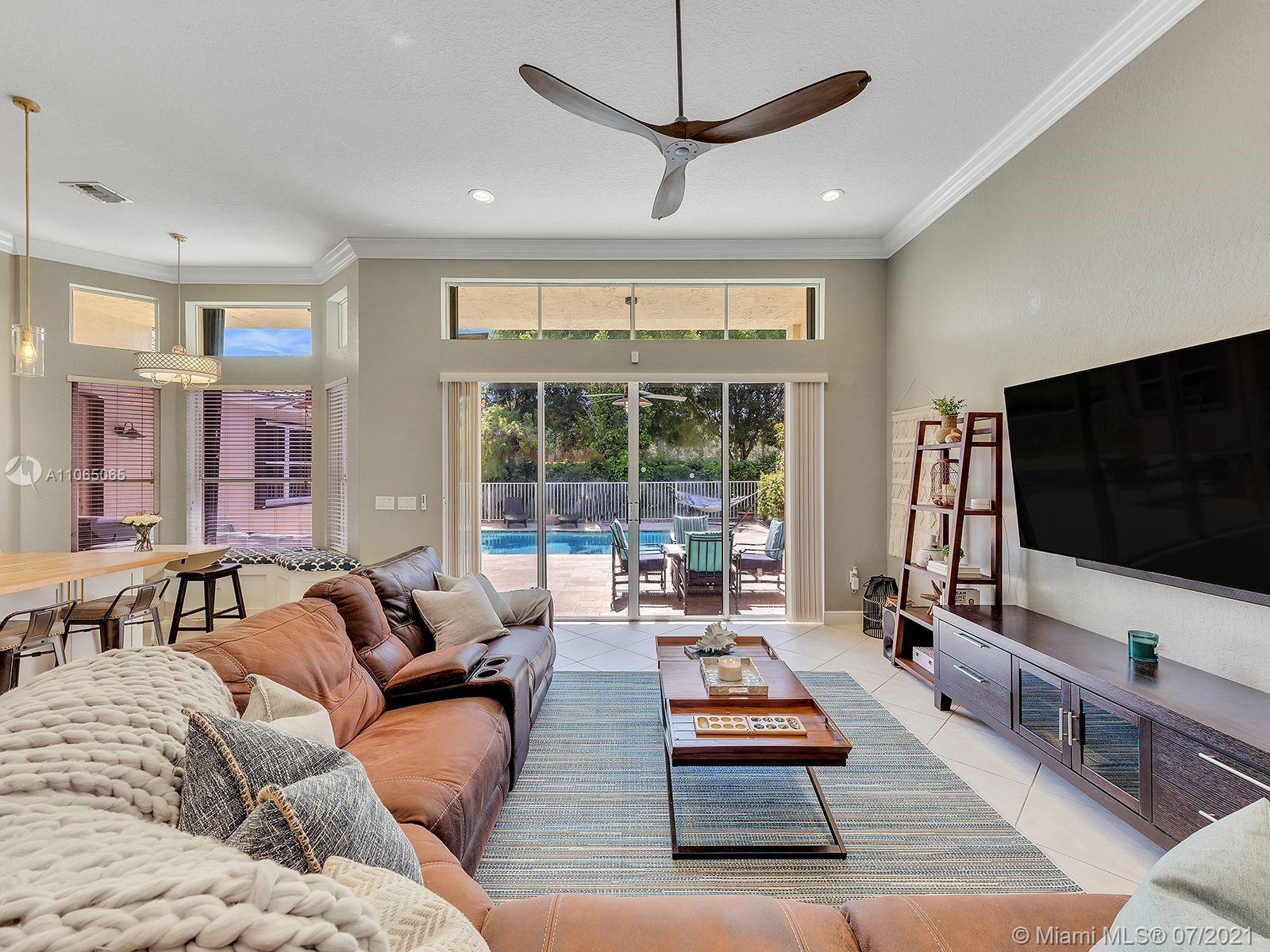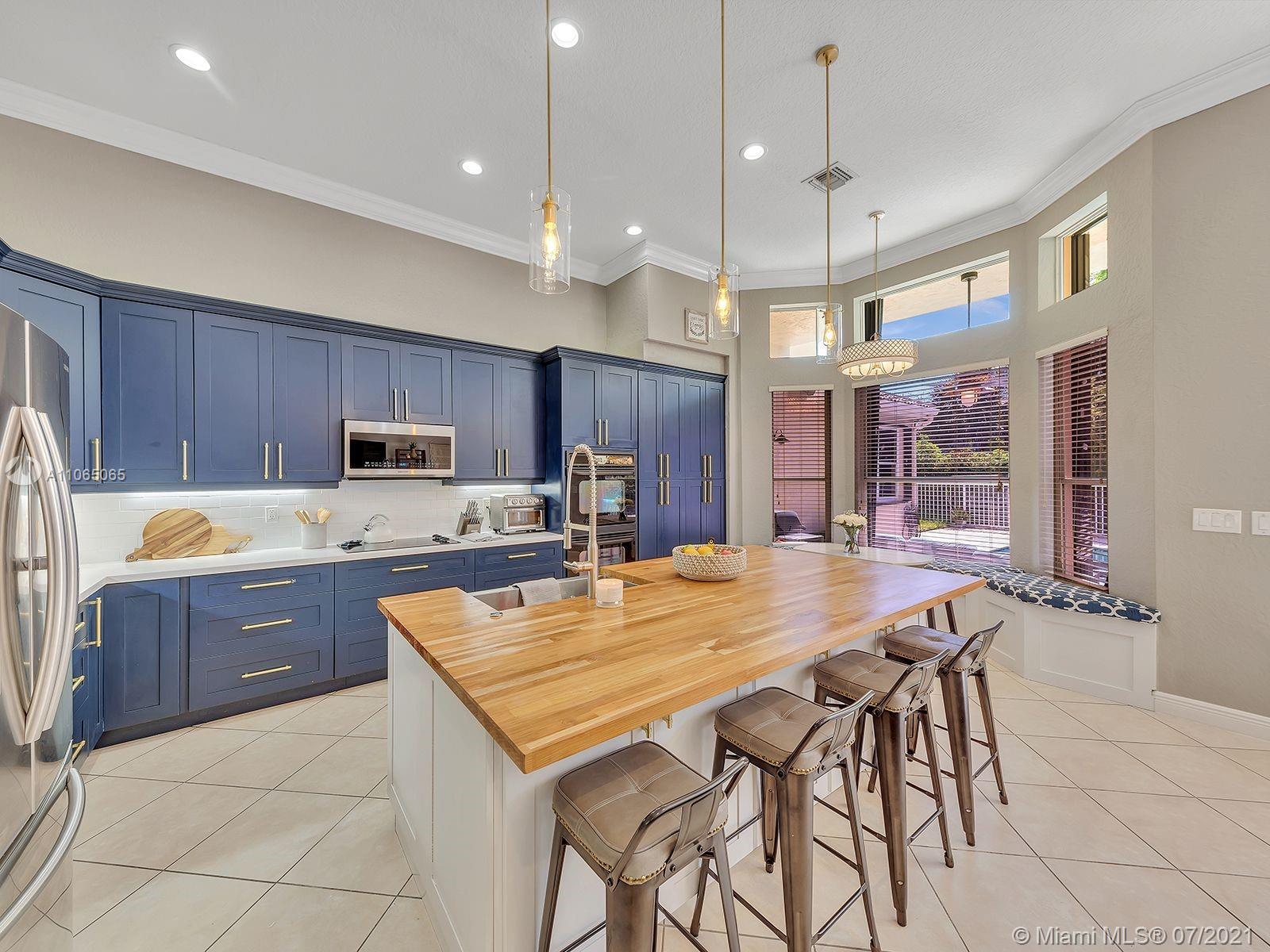 Envision living in this beautiful, bright & spacious home full of upgrades! This Isabela floorplan is one of the only two floor plans built within the entire community boasting separate bathrooms in the Master Suite with a connecting shower. Newly remodeled kitchen with a stunning & expanded butcher block island boasting plenty of cabinet storage, a built-in seating bench in the breakfast area, and a backyard with an expansive covered terrace and beautiful travertine pavers around the new saltwater heated swimming pool and spa. Enjoy an abundance of amenities in the first-rate clubhouse with a fully-equipped fitness center, tennis courts, & so much more. **First showings will take place July 10th & July 11th from 12-1:30pm. Offers below the offer price will NOT be considered.**