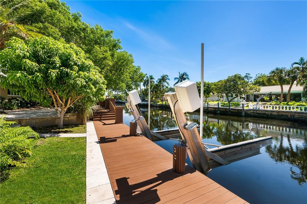 Perfectly nestled in the famous high-end neighborhood known as The Landings, this beautifully maintained home boasts 3 full bedrooms, 2 full bathrooms, a half bath, hurricane impact windows and doors, tile flooring, marble flooring, a spacious 2-car garage and circular driveway. The master side delivers dual vanities for him and her as well as a generous walk-in closet with access to and from the pool. The exterior entertaining and recreational space will be more than enough for all outdoor activities. Also included is an eclipse pool ozone generator, rhino water filtration system, boat lift, exterior security cameras, lush private landscaping, and 80' feet of waterfront providing ocean access for all avid boaters. Barrel-tile roof installed 2016. 5 minute drive to the beach.