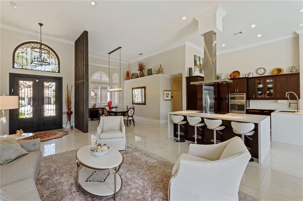 Weston living at its BEST. Lakefront Pool luxury, this is a rare GEM of an opportunity. (Roof is 8). Meticulously designed with all the Bells and Whistles. Soaring ceilings, marble floors, impeccable upgrades and finishes, completely open and modern for today's living. Walls of glass doors with special glass transomes offer abundant natural light. Gourmet Chef's kitchen, top-of-the-line appliances and fine cabinetry, fully open to lovely breakfast room, living and family rooms. Large formal dining room. Primary suite with 2 huge walk-in closets, sitting area and its very own laundry room. Huge, luxurious contemporary primary bath. Secondary bedrooms w/large walk-in closets. All bathrooms upgraded to the max. CONT' ON SUPPLEMENT REMARKS