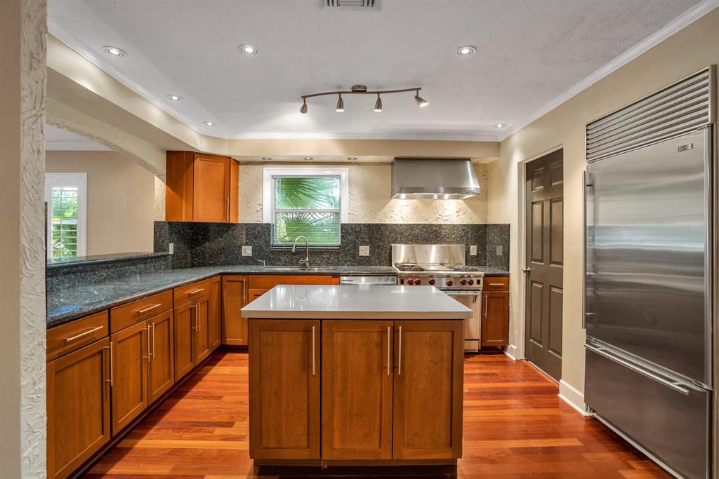 Spectacular corner Lot with street to street property. Great home with Location & Charm!Just a short walk to downtown Hollywood, & the Intracoastal This beautifully updated home has hard wood flooring throughout the living areas, plantation shutters on all the windows, a gorgeous kitchen boasting a Wolf Stove, Subzero Refrigerator, an Island & generous storage.The kitchen offers a great dining area, French doors lead to a screened portico for additional outdoor living space. Gated spacious yard and extra parking. The master has a walk in closet, the bathroom offers jacuzzi tub, walk in shower & dual vanities. 2nd bath is nicely updated & 2nd bedroom is also large. The room off the entrance can be used as an office or den area. Good size yard. Don't miss this fabulous property!