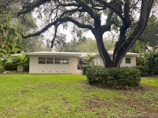 Incredible rare opportunity for this mid-century home located in the highly sought after Platinum Triangle in centrally located South Coral Gables surrounded by multi-million dollar homes. This exquisite property sits on a 13,770 sq ft lot with a large backyard, and lush mature landscape with tropical trees on an oak tree canopied, quiet street. Charming integration of its indoor and outdoor elements, and expansive open spaces. Current floor plan entails spacious rooms, Miami-Dade hardwood pine floors, walk-in closets, oversized 2 car garage with lots of storage. Update, add-on, build up or create your dream home. Located close to excellent public (Sunset school district) and private schools, and a short distance to great restaurants, hospitals, supermarkets, shops, and much more.