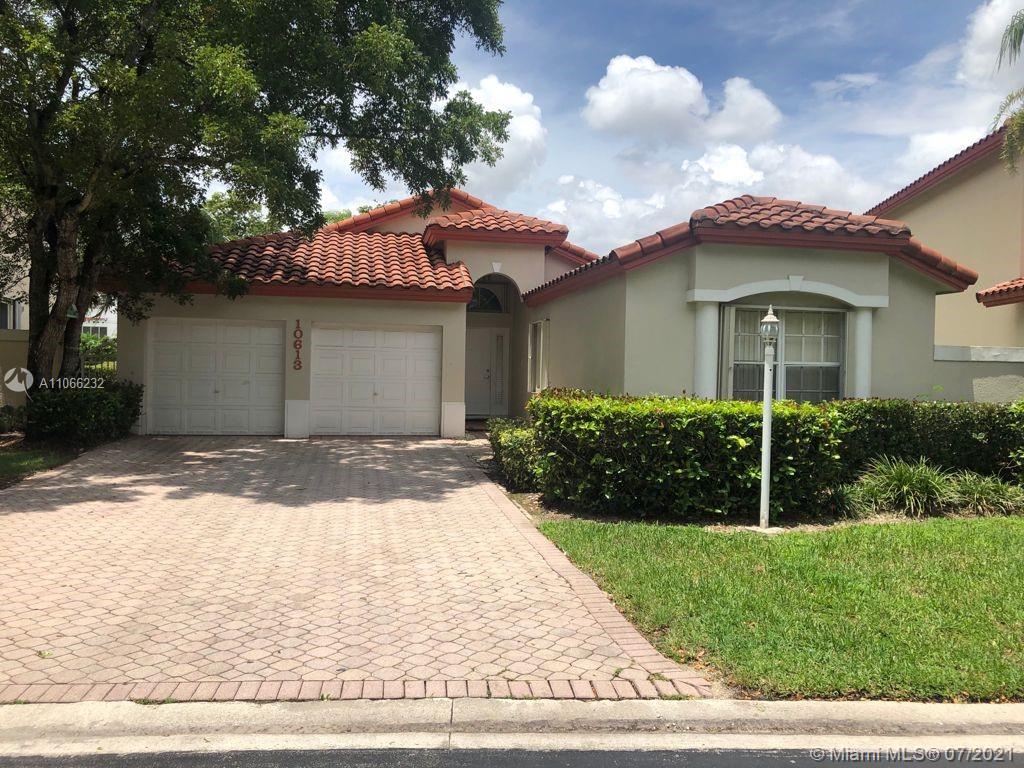 One story single family home, 4 bedrooms, 2 baths, 2 car garage, upgraded kitchen cabinets and counter tops with lots of storage space, canal view, carpeting in bedrooms . Enjoy the Doral Park Country Club facilities.