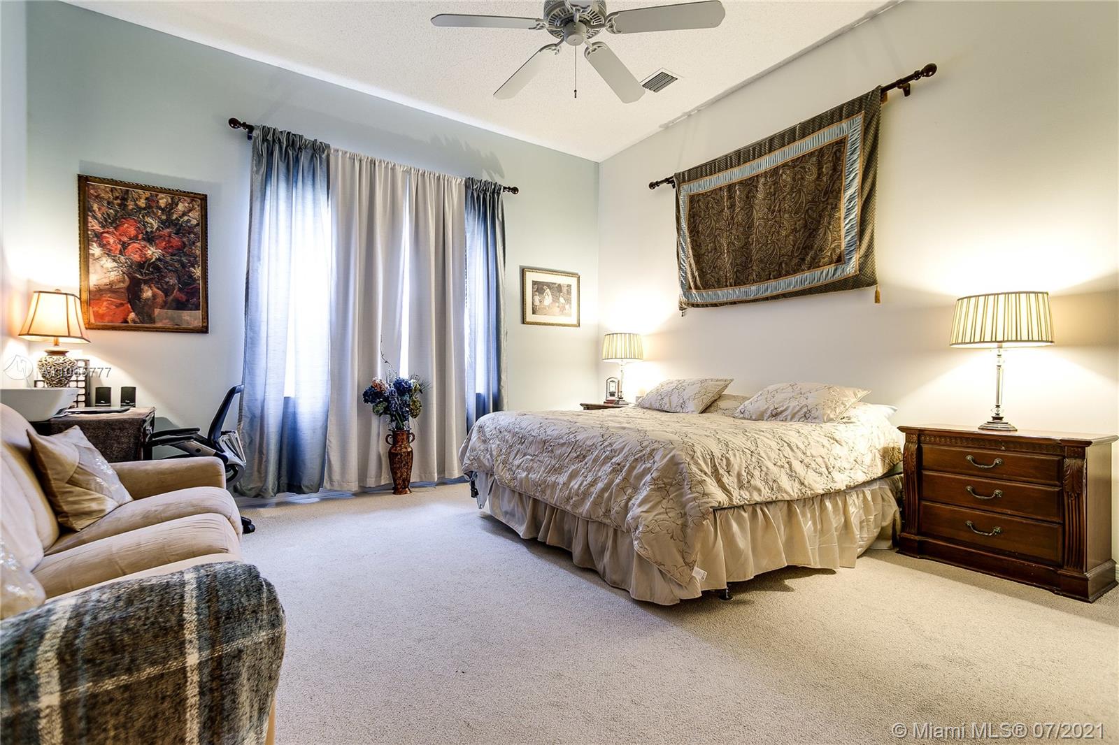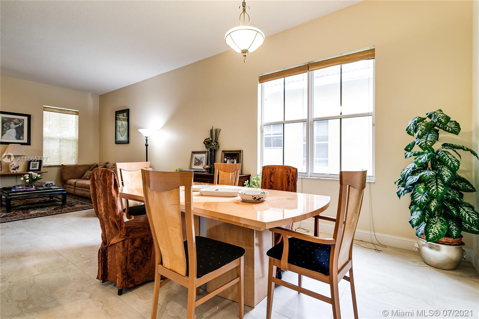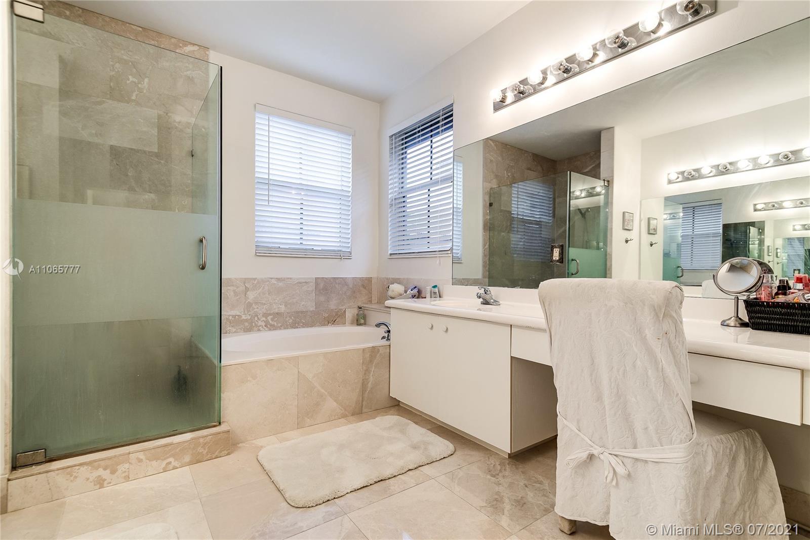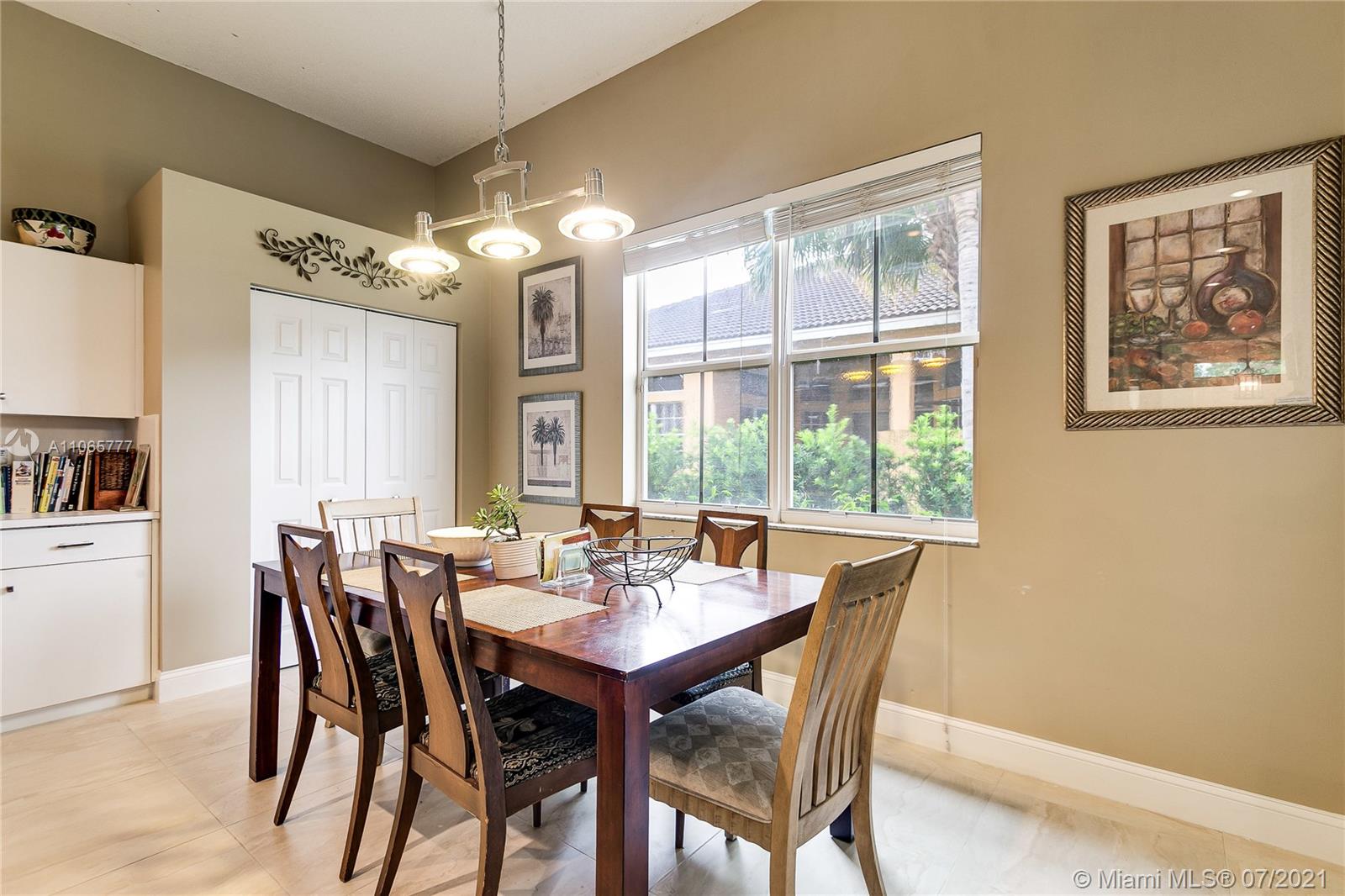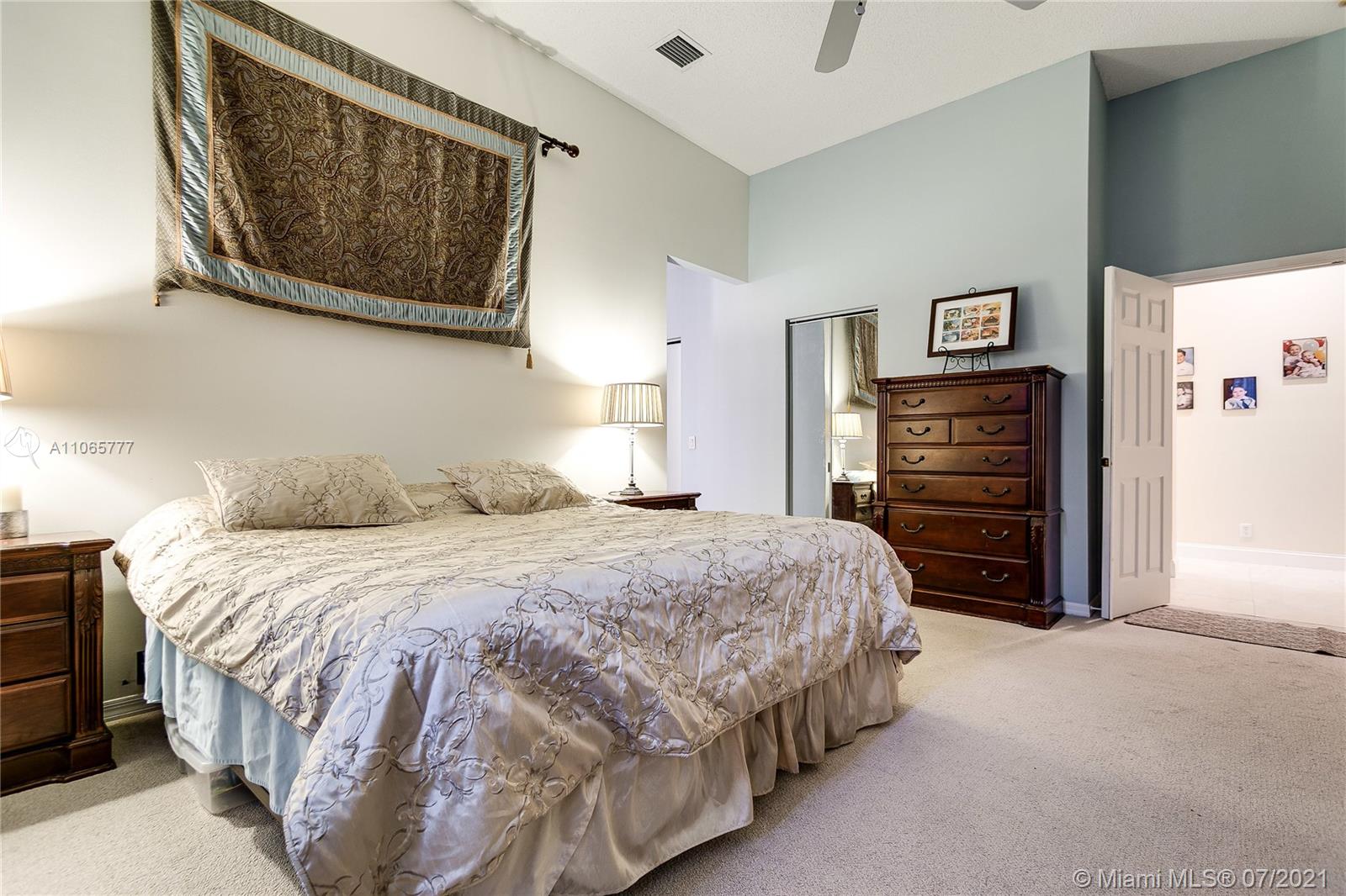 Elegant 4/2.5, desirable Dove model,23x23 tiles, neutral colors, in mint condition. 12 ft ceilings, large eat-in kitchen, island, lots of closet space. Master bathroom features exceptionally large walk in closets & marble baster bath. Newly updated II bathroom. Great community with resort like amenities. 3 pools, active club house with a restaurant, classes, a soccer field, mini golf and more. 2 manned gates.