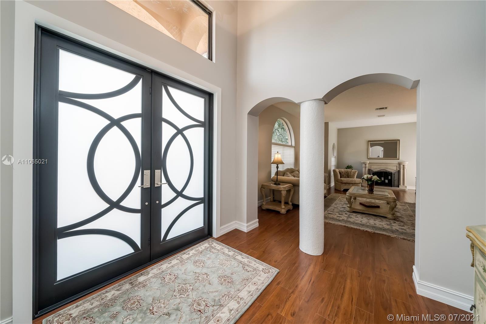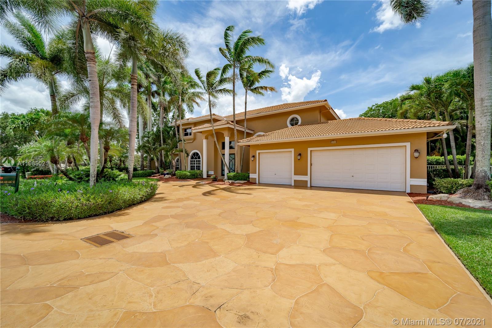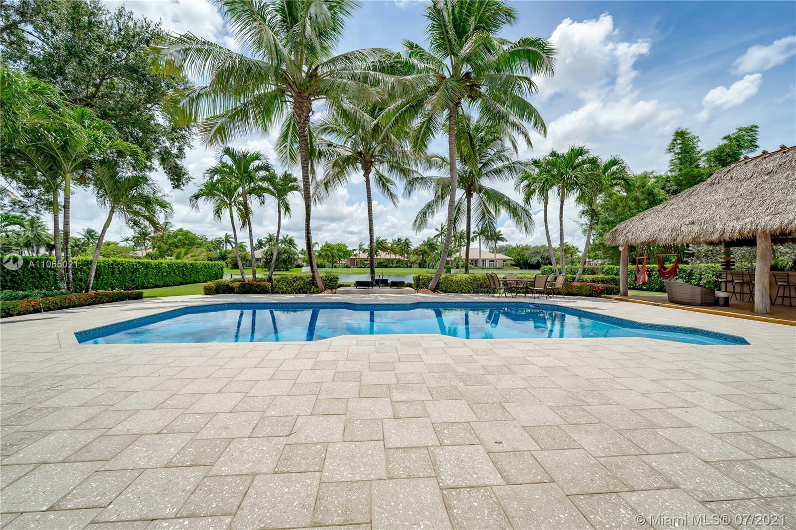 This serene lake estate offers an outdoor lifestyle as well as all the comforts you are looking for in a magnificent spacious home. Soaring entryway welcomes you. Formal living & dining room. Oversized chef's kitchen, breakfast area, open family room with an office/playroom where you can enjoy views of the stunning backyard from every room. Spectacular sunset views as you relax under your 800 sq. foot tiki hut with bar, 2 TV's and movie projector. Oversized pool, Summer kitchen, half BB court, boat launch and fire pit area are added to the upgrades list. Full house generator & a 500 gallon natural gas tank allows for 2 weeks of non-interruptive electricity. 3 car Housewall garage system, oversized driveway for 12 cars. Impact doors and Accordion shutters throughout. Don't miss this gem.