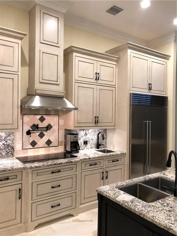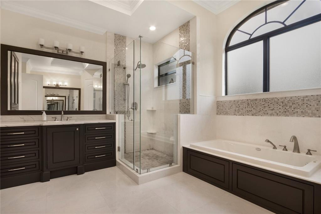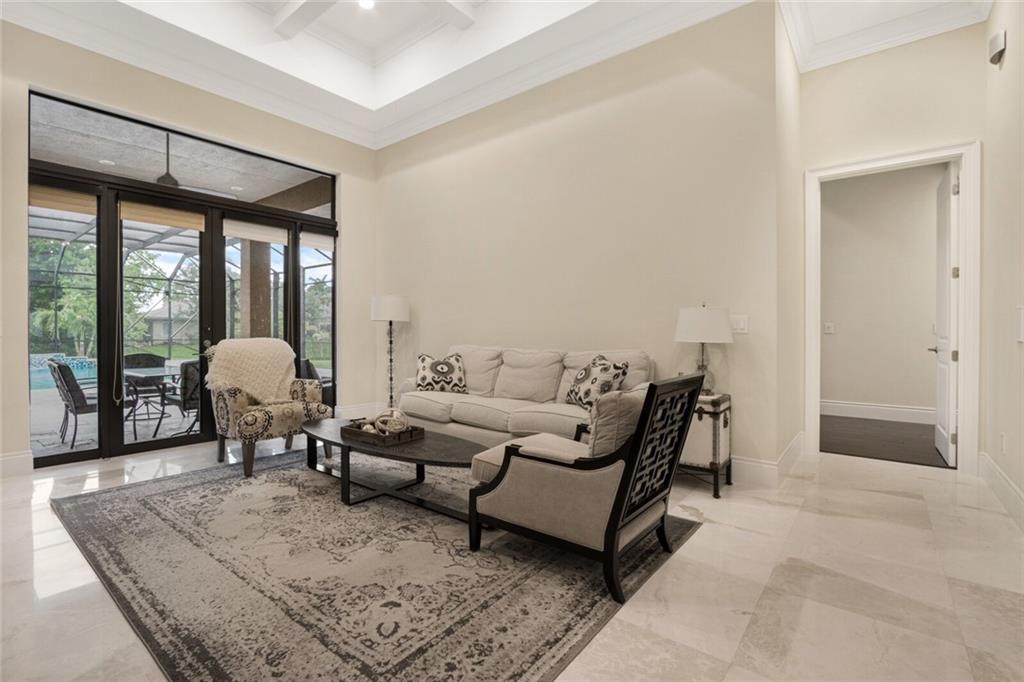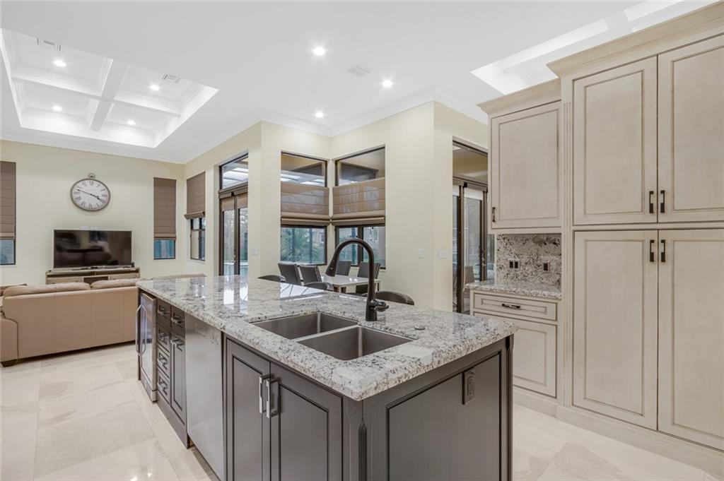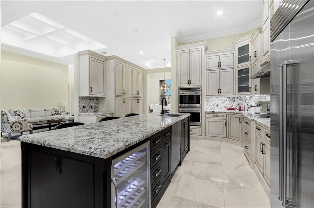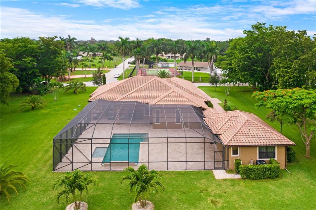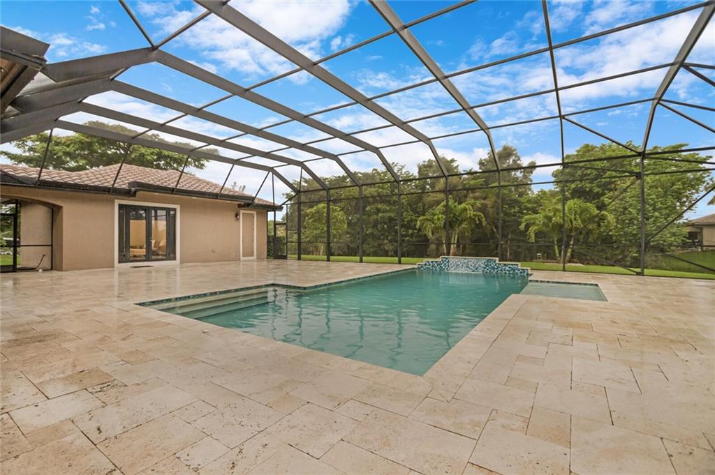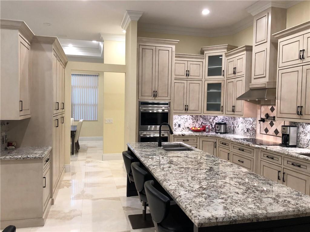 Immaculate, custom home on acre lot (.94) w/custom upgrades! RV & boat parking allowed! Custom kitchen w/stainless steel Sub-Zero & Wolf appliances, w/ long granite countertop island. Custom cabinets in kitchen & bathrooms, w/ granite & quartz countertops. Marble and hardwood flooring. Oversized, screened patio w/ travertine, pool, & outdoor kitchen w/ built-in Artisan grill, mini-fridge, sink, granite countertop, & weatherproof cabinetry, perfect for entertaining. Tray ceilings, w/ moldings, in master, family, living, dining room, & foyer. 7 in. baseboards & crown moldings throughout. Custom bedroom closets. Custom cabinets in garage, w/ work station, by Closet Factory. Extra laundry in garage. Separate guest/in-law quarters w/ bedroom, bathroom, living room, kitchenette pantry, fridge.