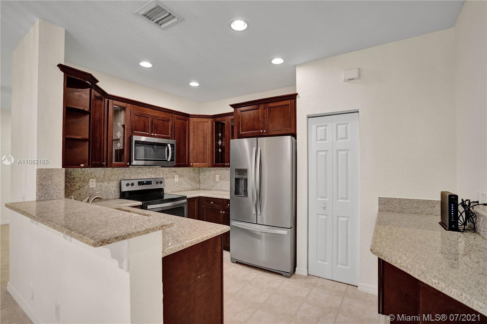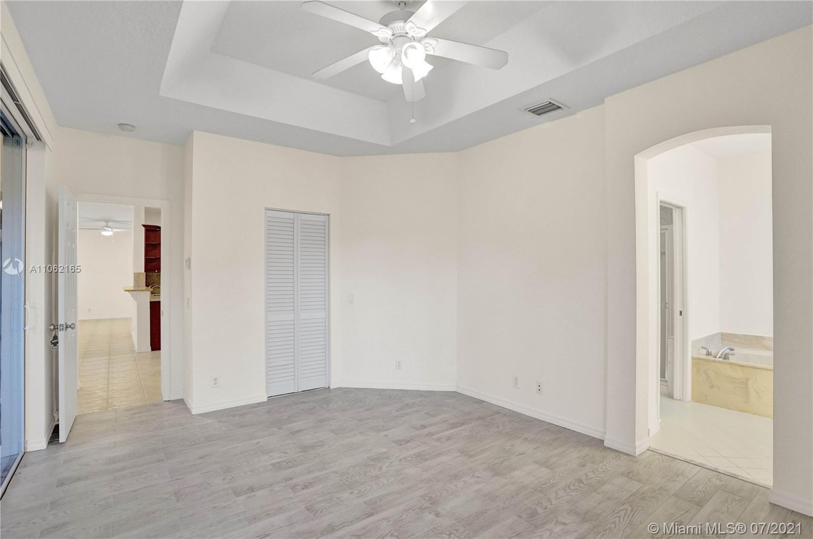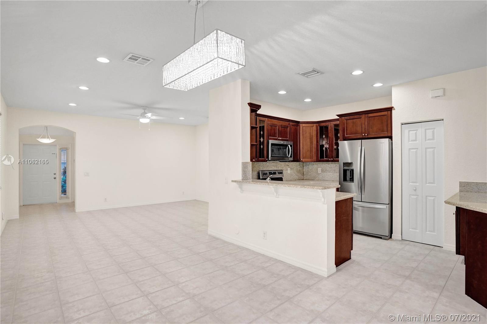 Charming one story 3-bedroom/2-bathroom in Savanna's Preserve I. Painted interior in neutral colors. Neutral ceramic tile flooring in common area and beautiful wood laminate in bedrooms. Newer Trane air conditioning (March 2019). Kitchen features granite counters, stainless appliances and Island/bar/desk station. Newer S/S microwave and S/S electric range and refrigerator (December 2019). Hot water heater (2016). Interior Laundry Room (New washer and dryer) not in the garage. Screened/Covered patio and spacious backyard with room for pool. 24 hour guard gate, Spectacular resort style Commons, kid's play area & club house & 3 swimming pool. Close to shopping, Cleveland Clinic & major highway... just 20 minutes to airport and 25 minutes to beach. A-rated schools