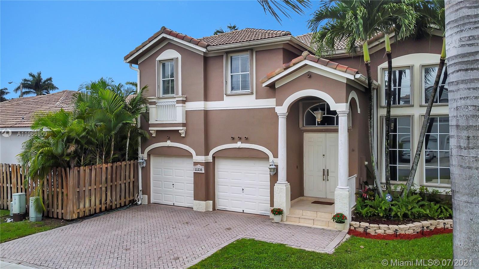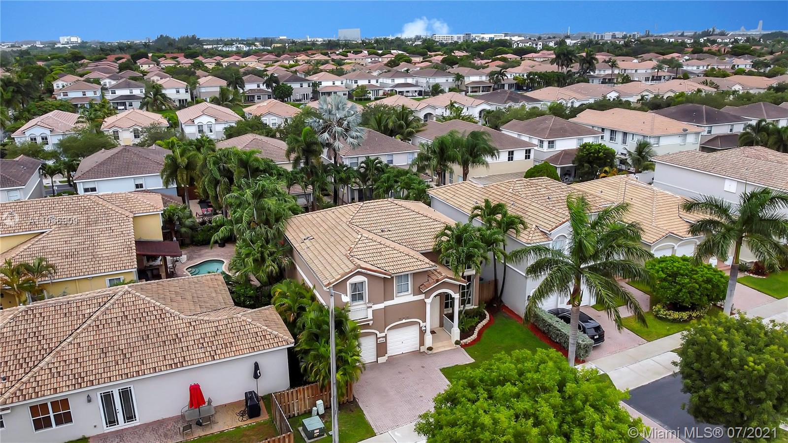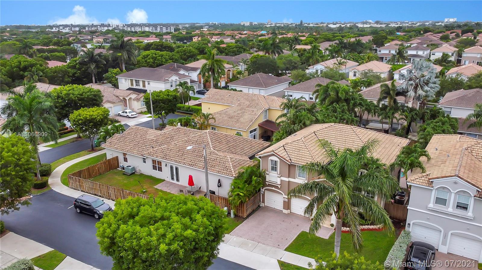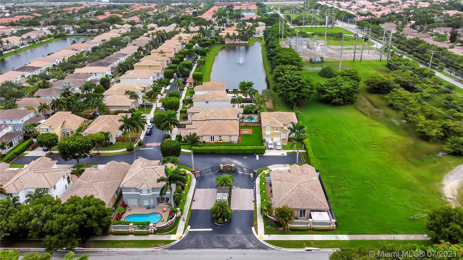 Costa Bonita, a Gated community in Doral. Mediterranean 2-story style home with private pool. Good location in move in condition. Expresso wood laminate floors throughout. Freshly painted interiors, crown moldings. New kitchen cabinets with granite counters and all stainless steel appliances. 2nd floor master suite with huge walk in closet and bathroom. Generous sized bedrooms, all upstairs. Accordion shutters for hurricane protection. Pool with surrounding brick pavers and awning, pool fence, rain gutters. Low monthly maintenance fee of $ 175.00 a month.
