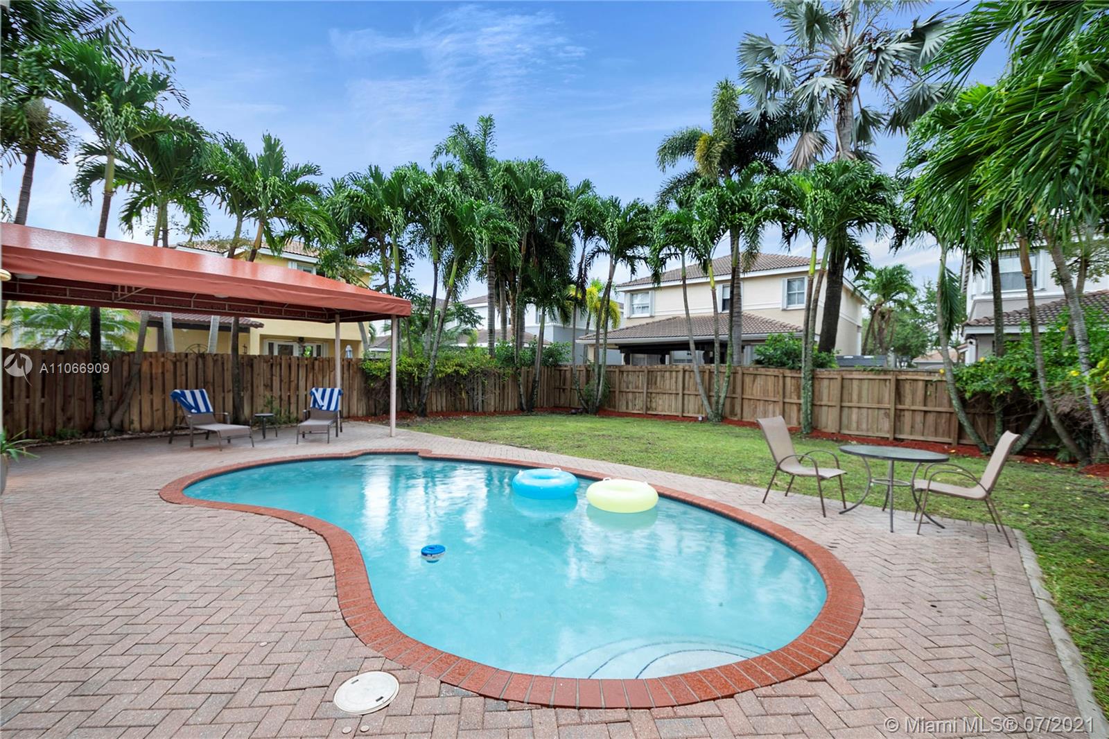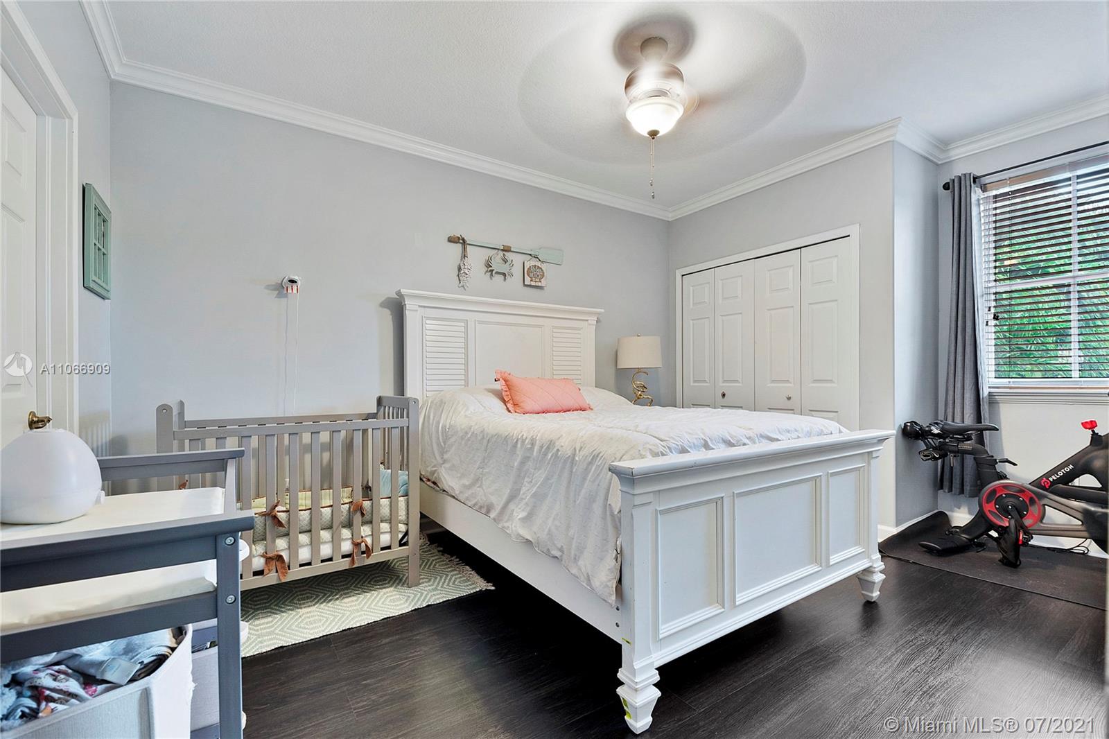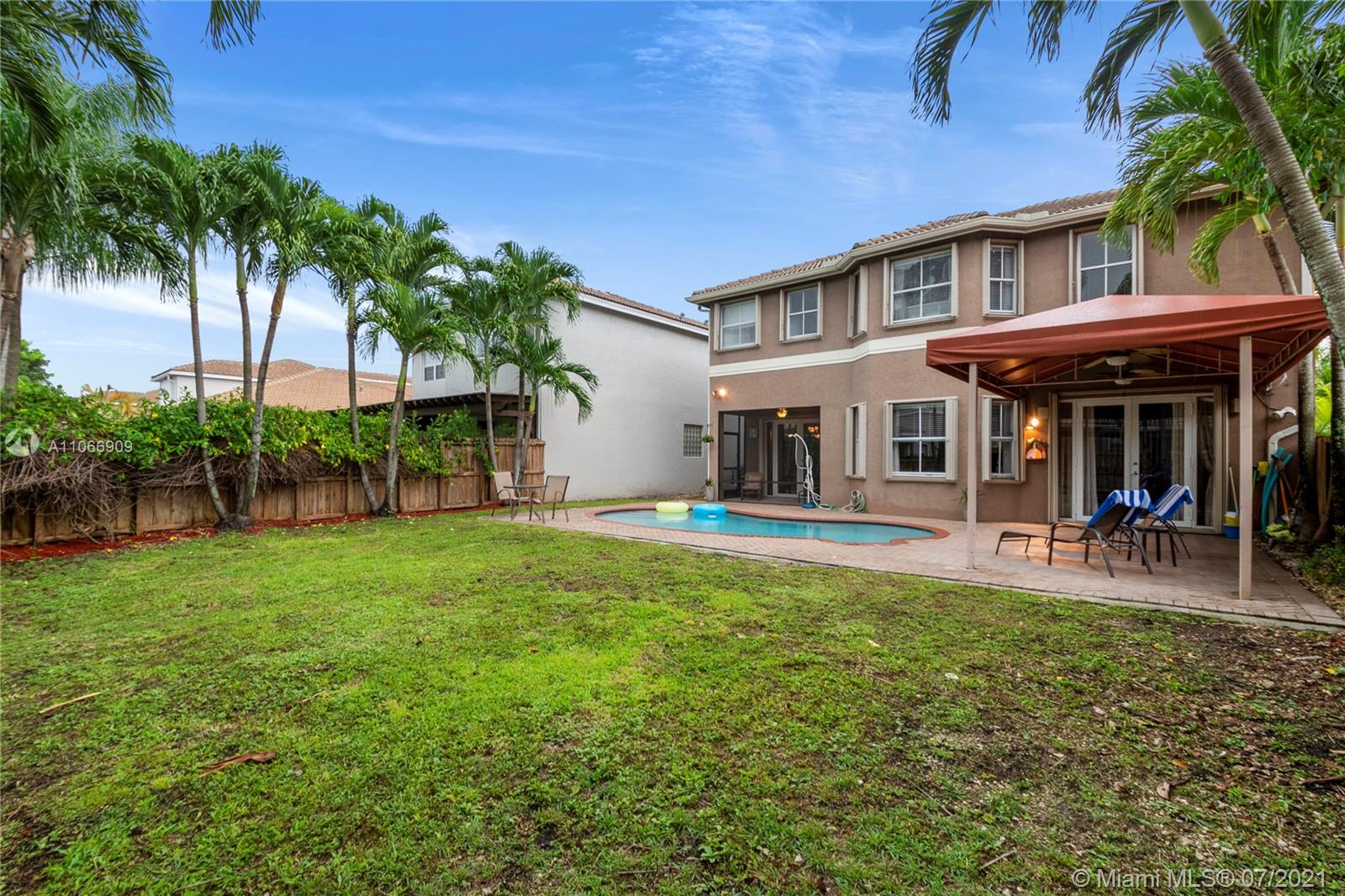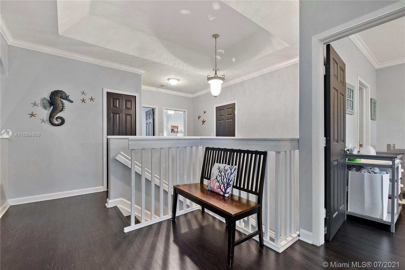 Costa Bonita, a Gated community in Doral. Mediterranean 2-story style home with private pool. Good location in move in condition. Expresso wood laminate floors throughout. Freshly painted interiors, crown moldings. New kitchen cabinets with granite counters and all stainless steel appliances. 2nd floor master suite with huge walk in closet and bathroom. Generous sized bedrooms, all upstairs. Accordion shutters for hurricane protection. Pool with surrounding brick pavers and awning, pool fence, rain gutters. Low monthly maintenance fee of $ 175.00 a month.