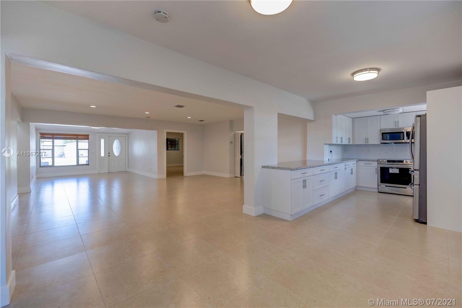 Spacious single family corner lot home in Hialeah. 5 bedrooms, 3 bathrooms, open concept kitchen, large living and separate family areas. New HVAC, porcelain floors throughout, quiet neighborhood, close to major access road. All renovations done with permits. Easy to show, ready to move in.