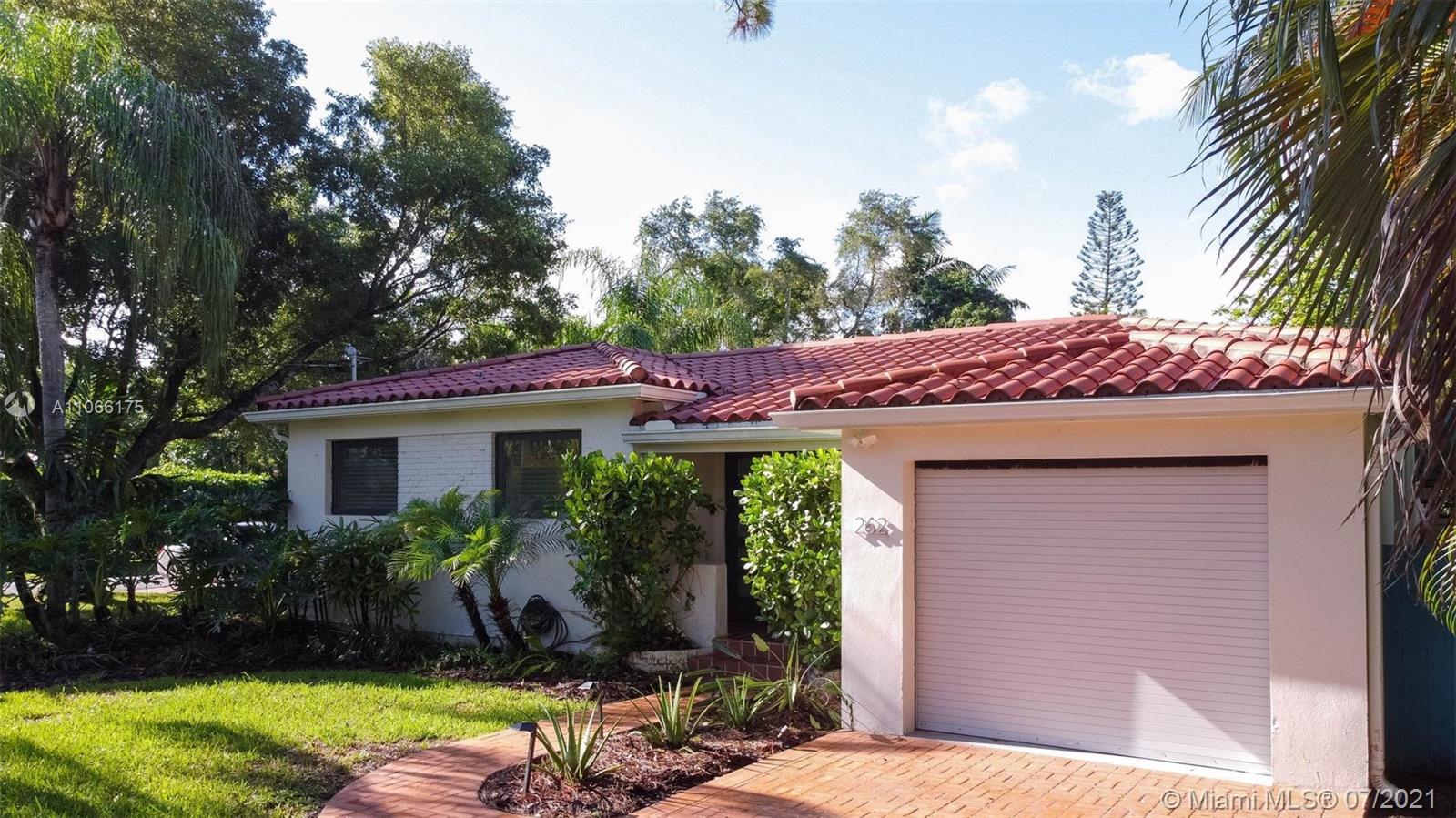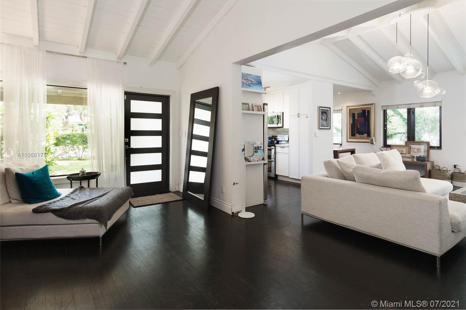 3 bedrooms and 2 full baths on a quiet street in Miami Shores. Corner lot, private fenced yard with patio, fruit trees, and room for a pool. Attached one-car garage and plenty of driveway parking. Original hardwood floors, wood-beamed ceilings, updated kitchen and baths. Florida room/tv room overlooking the garden. Move-in condition.