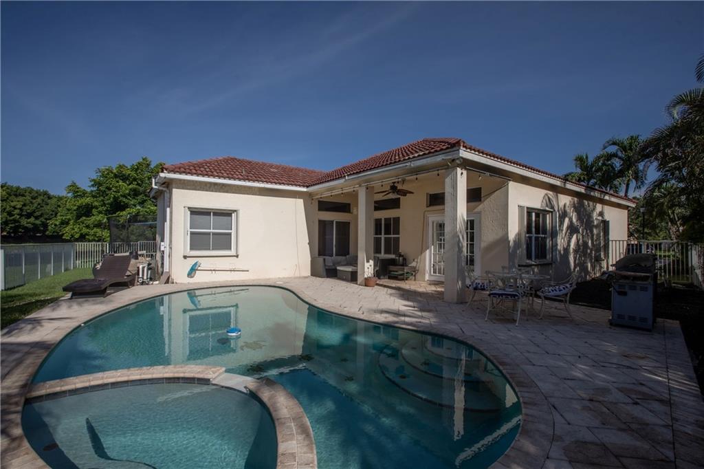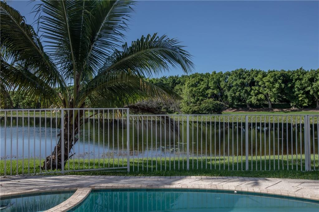 Family friendly home with solar heated saltwater pool and spa located in Weston's top rated school zone. Premium waterfront lot with wide lake views and no neighbors on the other side brings you peace and privacy. Newer kitchen with stainless appliances and cherry cabinets. Master bath completely updated with dual vanities, separate shower and soaking tub. Hardwood floors in bedrooms and 20" diagonal tile all common areas. Great storage including custom master closet with built-ins and Housewall garage storage system. Indoor laundry room with laundry tub and new washer & dryer. Whole house filtration and conditioning system. Accordion storm shutters offer peace of mind and low insurance rates.