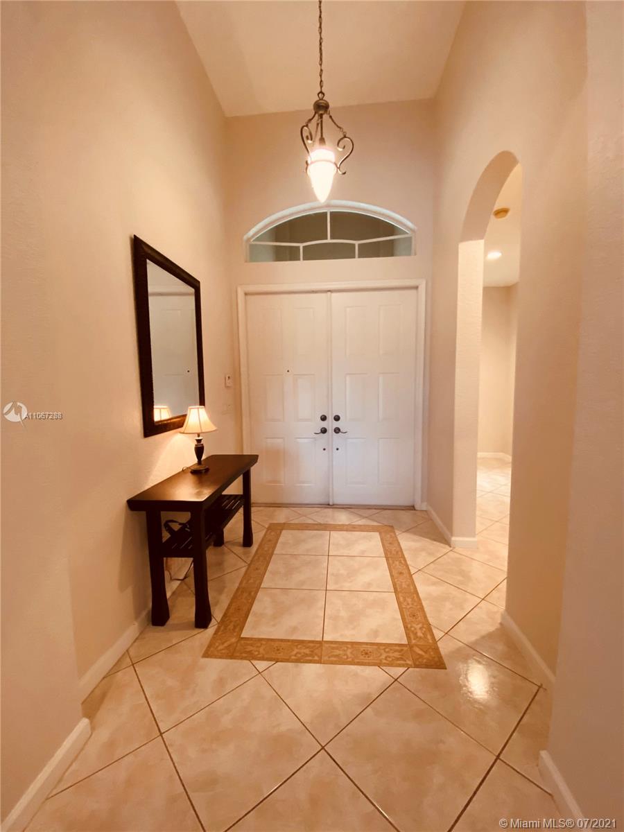 Absolutely beautiful, one story waterfront, pool home in the desirable community of Portofino at Monarch Lakes. Spaciously and tastefully designed for entertaining, offering open floor plan, completely remodeled kitchen with stone countertop, wood cabinetry, sitting Island and stainless steel appliances, overlooking a generous family room. High volume ceiling, great archways, tiles and wood flooring. Double door to master bedroom with wood floors, tray ceiling, walking closet, fully upgraded bathroom, double vanity, separate tub and shower. Enjoy your evening on your expansive lake view, free form salt water heated pool and a fenced back yard. COMMUNITY offers: clubhouse, pool, tennis, basketball, volleyball, playground, BBQ, picnic area. All Near Mall, Restaurants, Hospital, A+Schools