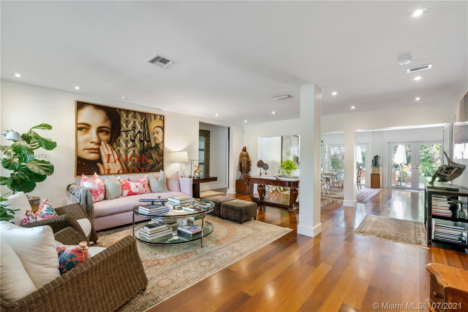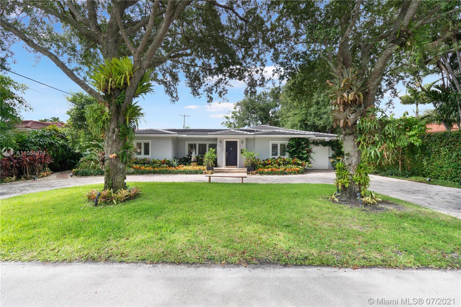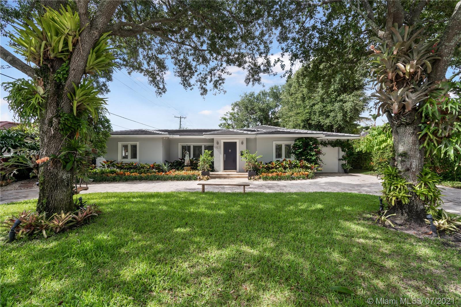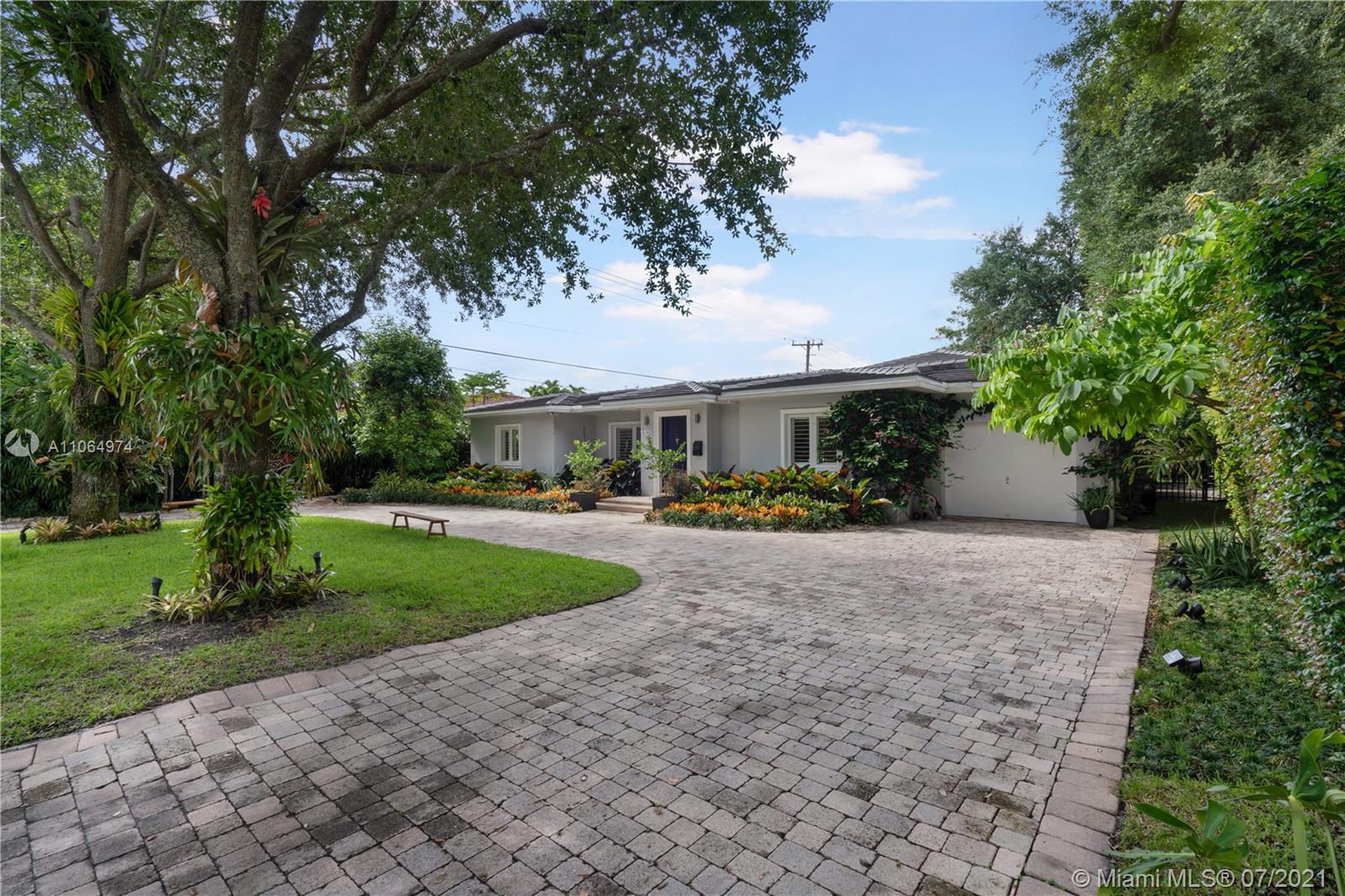 Stunning single-family home located in the heart of beautiful south Coral Gables, a highly desirable quiet neighborhood minutes from Miracle Mile and Shops of Merrick Park. This spacious property features an amazing layout, including an open floor plan, wooden floors throughout, lovely high ceiling and French doors in the dining room and family room leading to a beautiful backyard oasis surrounded by lush greenery, ideal for entertaining. This renovated home is perfect for a family offering a master suite with walk-in closet and a spa-like inspired bathroom, 4 bedrooms 4 bathrooms, Marble kitchen countertops with sleek cabinetry and stainless steel appliances, a butlers pantry, wine refrigerator and parking garage. Impact windows installed throughout the home and a generator. A must see!