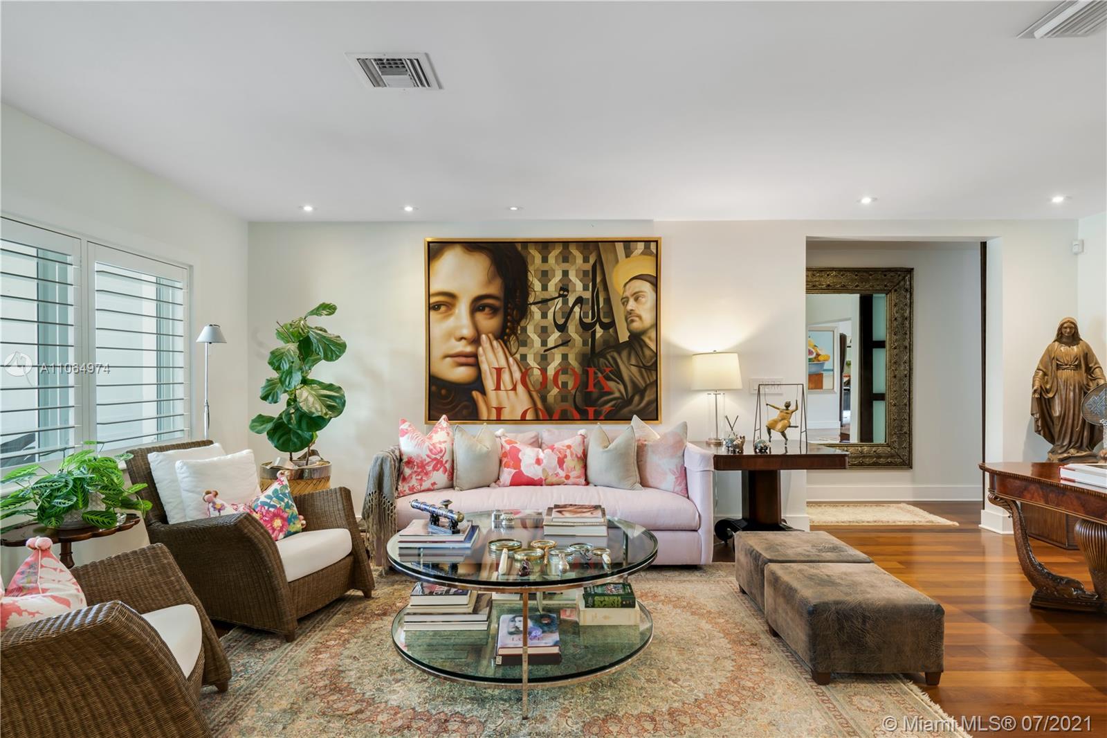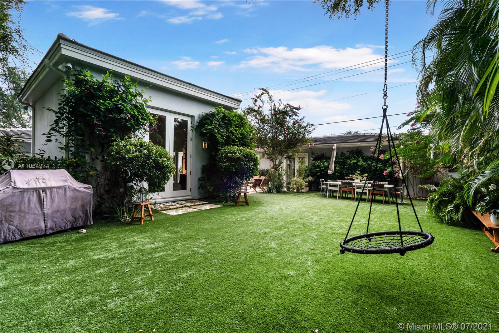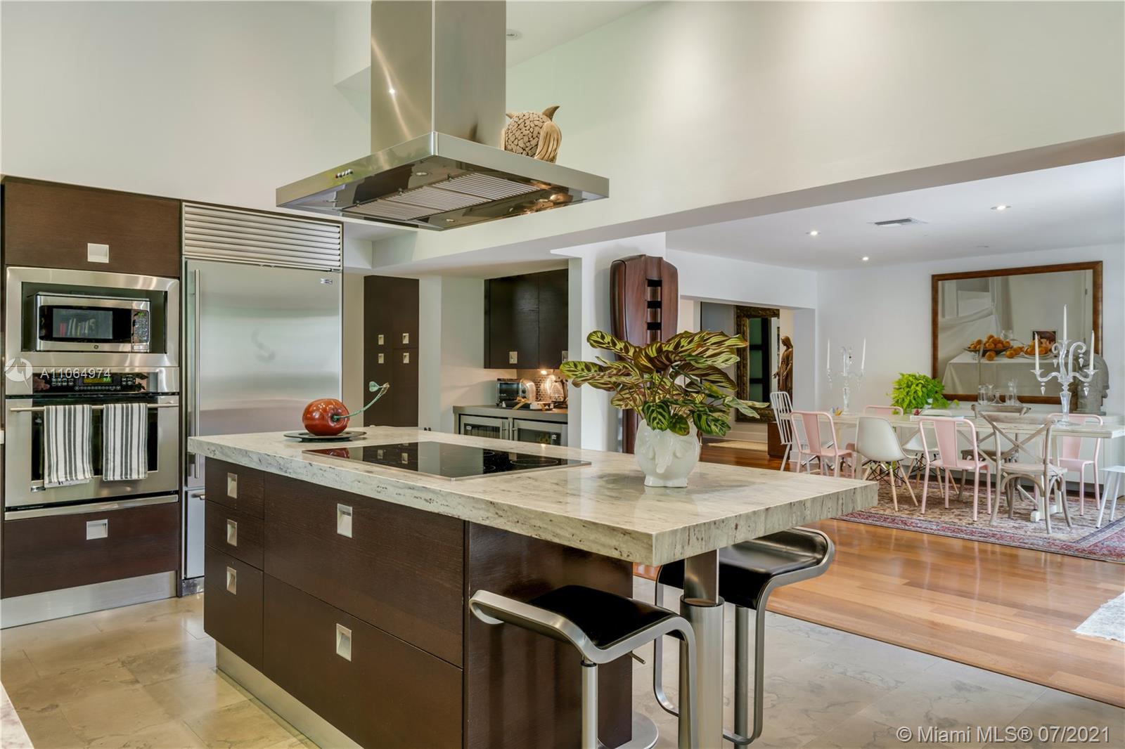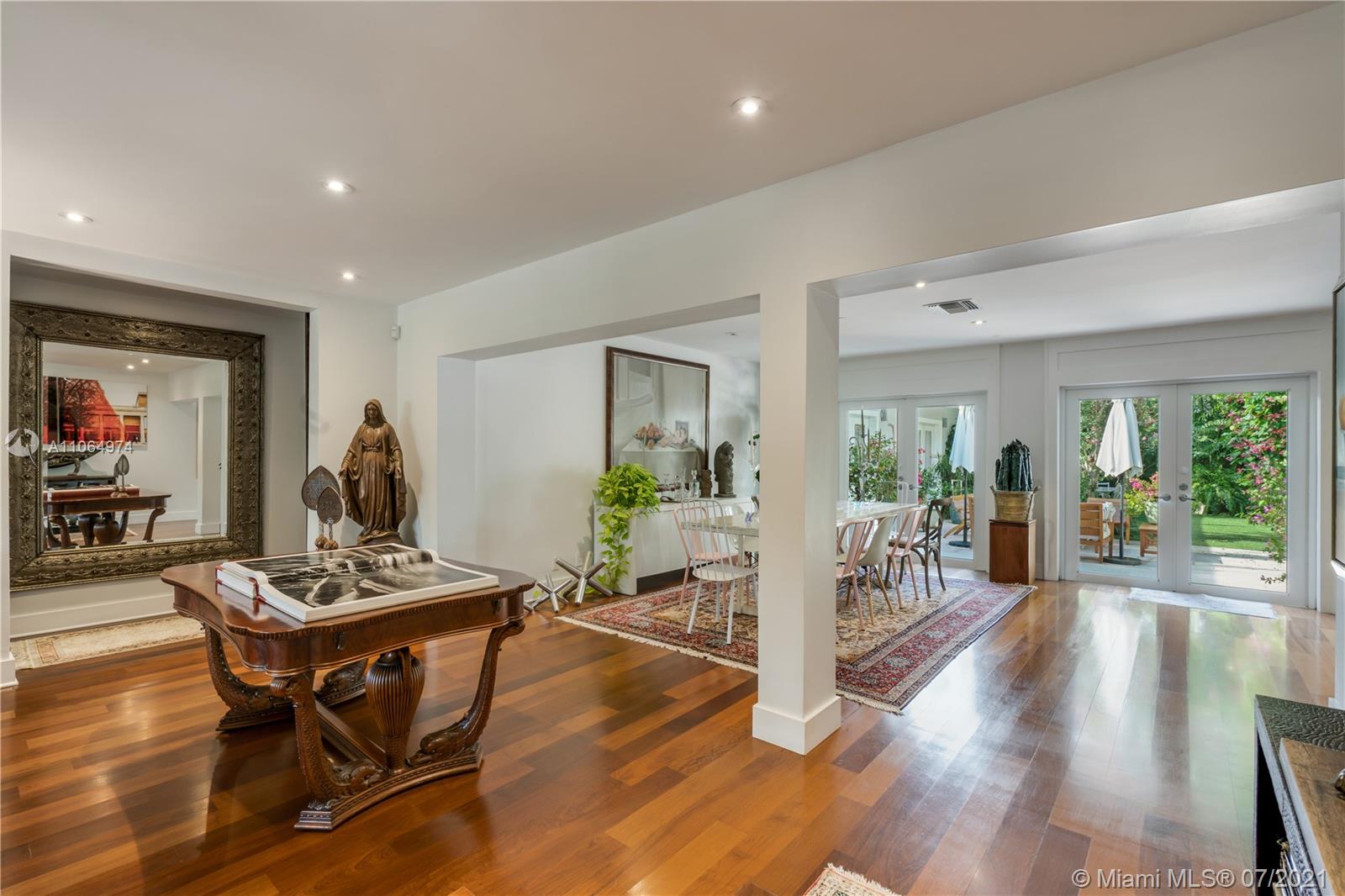 Stunning single-family home located in the heart of beautiful south Coral Gables, a highly desirable quiet neighborhood minutes from Miracle Mile and Shops of Merrick Park. This spacious property features an amazing layout, including an open floor plan, wooden floors throughout, lovely high ceiling and French doors in the dining room and family room leading to a beautiful backyard oasis surrounded by lush greenery, ideal for entertaining. This renovated home is perfect for a family offering a master suite with walk-in closet and a spa-like inspired bathroom, 4 bedrooms 4 bathrooms, Marble kitchen countertops with sleek cabinetry and stainless steel appliances, a butlers pantry, wine refrigerator and parking garage. Impact windows installed throughout the home and a generator. A must see!