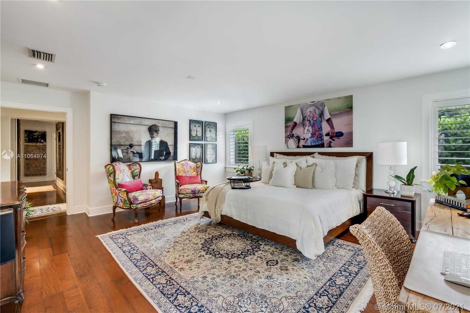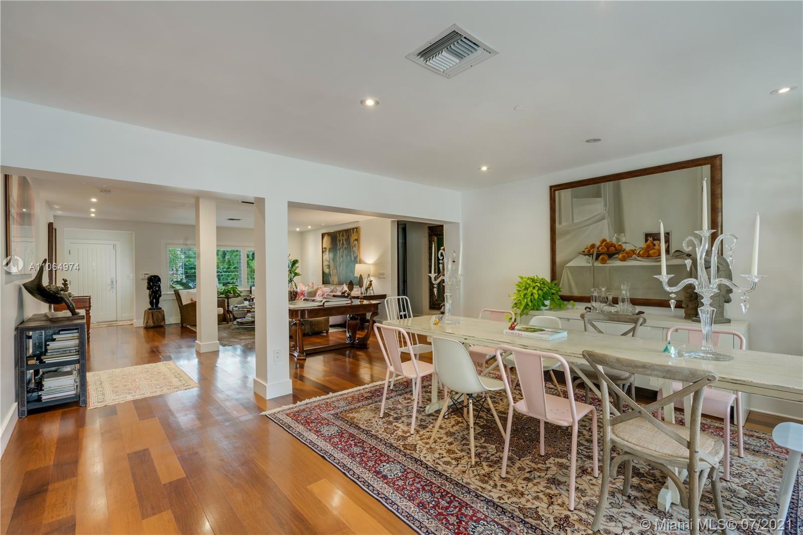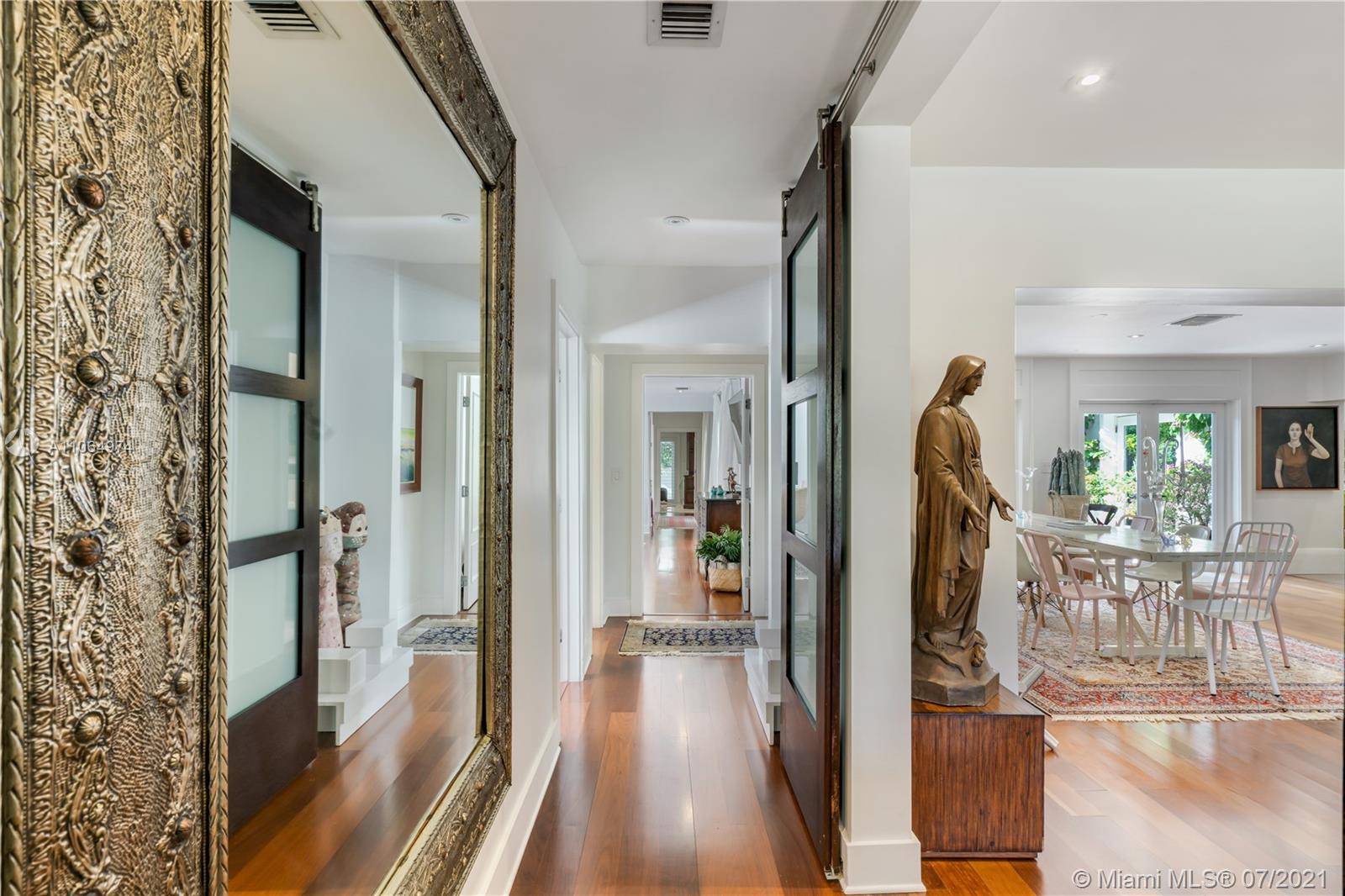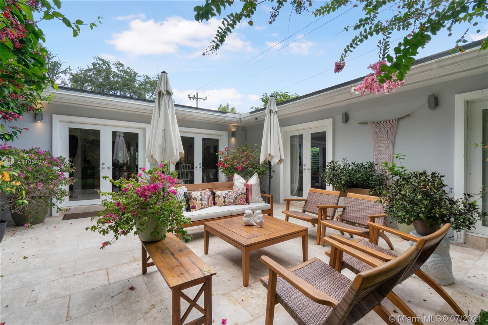 Stunning single-family home located in the heart of beautiful south Coral Gables, a highly desirable quiet neighborhood minutes from Miracle Mile and Shops of Merrick Park. This spacious property features an amazing layout, including an open floor plan, wooden floors throughout, lovely high ceiling and French doors in the dining room and family room leading to a beautiful backyard oasis surrounded by lush greenery, ideal for entertaining. This renovated home is perfect for a family offering a master suite with walk-in closet and a spa-like inspired bathroom, 4 bedrooms 4 bathrooms, Marble kitchen countertops with sleek cabinetry and stainless steel appliances, a butlers pantry, wine refrigerator and parking garage. Impact windows installed throughout the home and a generator. A must see!