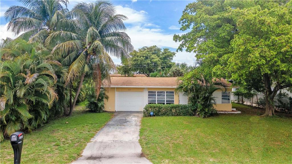 Nice 3 bed/1 bath home w/1 car garage in desirable East Pompano Beach! Beautifully Renovated Kitchen w/ granite counter tops, ample cabinets & conveniently off the dining room perfect for entertainment! Bright home w/ lots of natural light, tile throughout, & freshly painted. Shared bathroom is remodeled, & there's room to add an additional bathroom in the 3rd large bedroom! Backyard has plenty of room for a pool & the potential to become a perfect oasis for outdoor living! With the large expenses having been completed- roof replaced 2013, Central AC 2013, 40 Gal. Water Heater in 2014, + Electrical Panel Upgraded 2020 this home is ready for your personal touches! NO HOA Restrictions, bring your toys, 1.2 miles to beach! Perfect home for an FHA or VA buyer -Will not last -Come see it today!