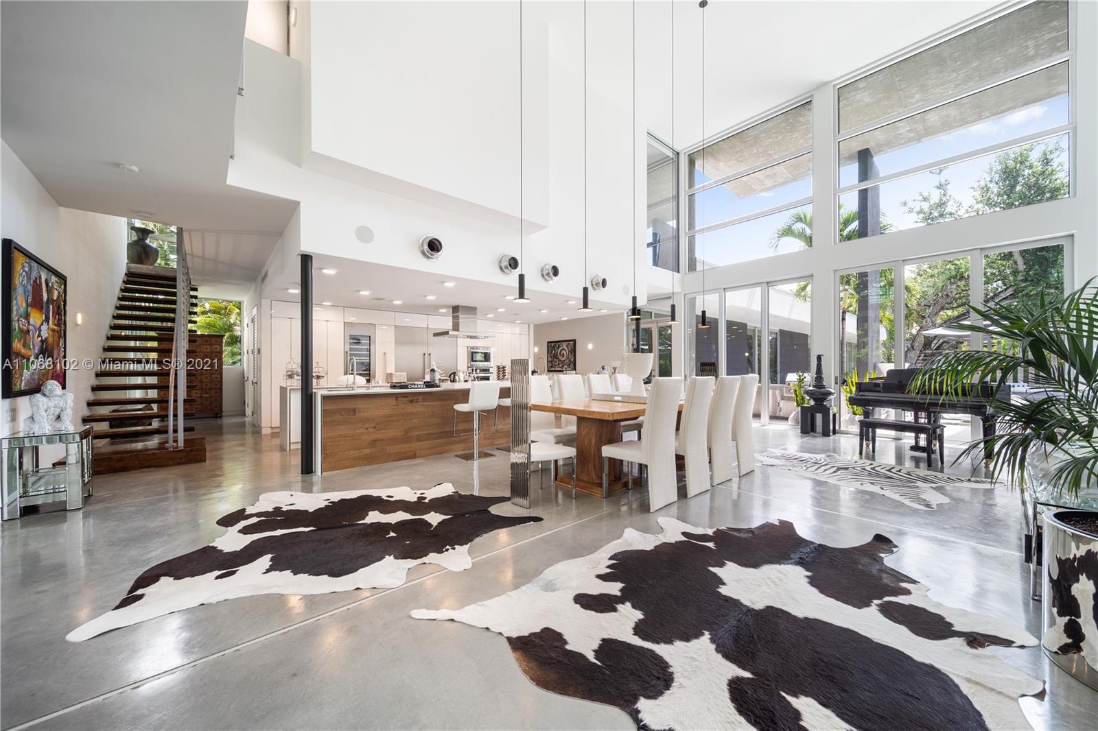 Welcome to "Casa De El Roble" - This home was designed by award winning architect Ronny J Mateu and sure is a modern masterpiece built around two beautiful oak trees which blends the contemporary interior with striking exterior landscapes and large 50 foot pool. The interior features double-height ceilings and walls of glass throughout for exquisite natural light. Surrounded by many prestigious A+ schools, and its proximity to many shopping centers this property provides a timeless work of art for a perfect family. Can be sold furnished.