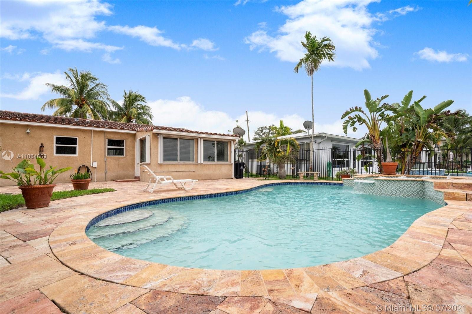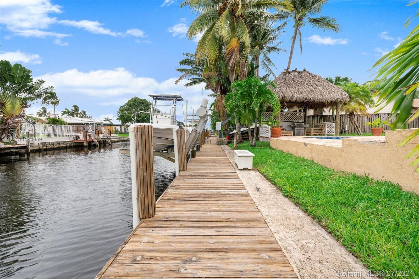 Updated with tile floor, custom kitchen with granite countertops, Located in desirable Citrus Isles, close to downtown, airport, and beaches. No fixed bridges. 60' deepwater. Big yard with custom pool, spa, patio, tiki hut with electricity all perfect for entertaining. There is a 60 ft dock with a boat lift. 3rd bedroom was the garage that can easily be converted back. One car garage is great for extra storage.