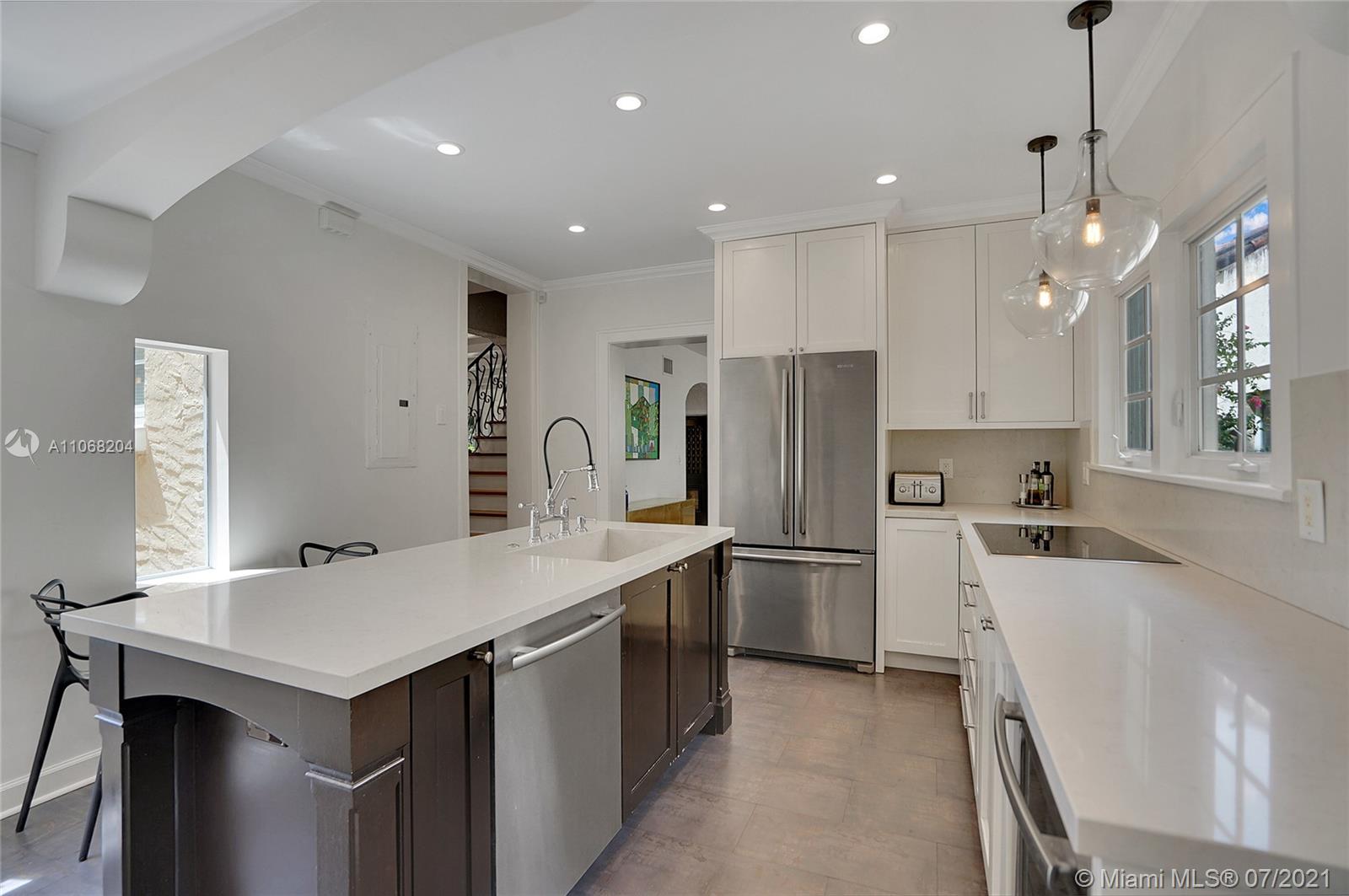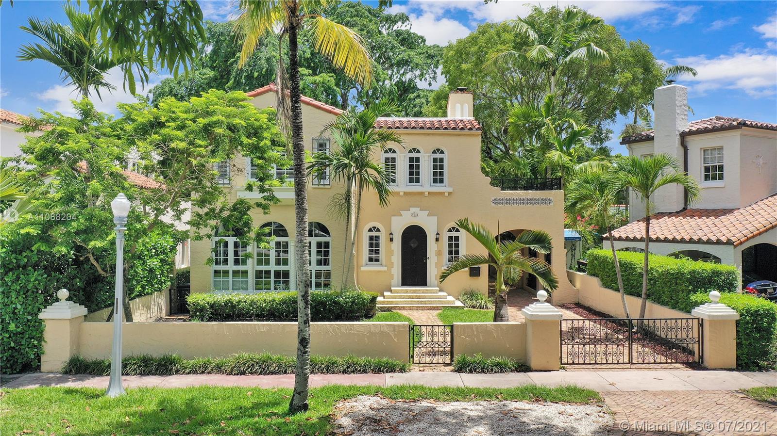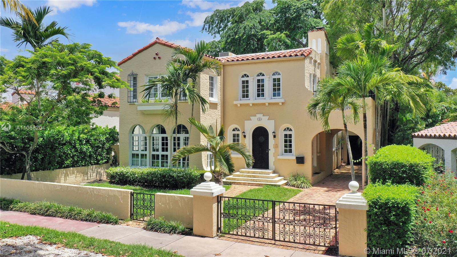 Beautiful Coral Gables LANDMARK Home. One block from Granada Golf Course, close to restaurants and shops on the Mile. Modern while preserving its historical integrity. Wonderful grand living area with high ceilings. Florida Room with original Cuban tiles. Eat in kitchen with high-end appliances. Beautiful 2 room primary suite with private terrace. The detached studio with a full bath is perfect for guests or a home office. Fantastic custom Built-ins provide plenty of extra storage. Impact windows and doors. MOVE-IN READY!!