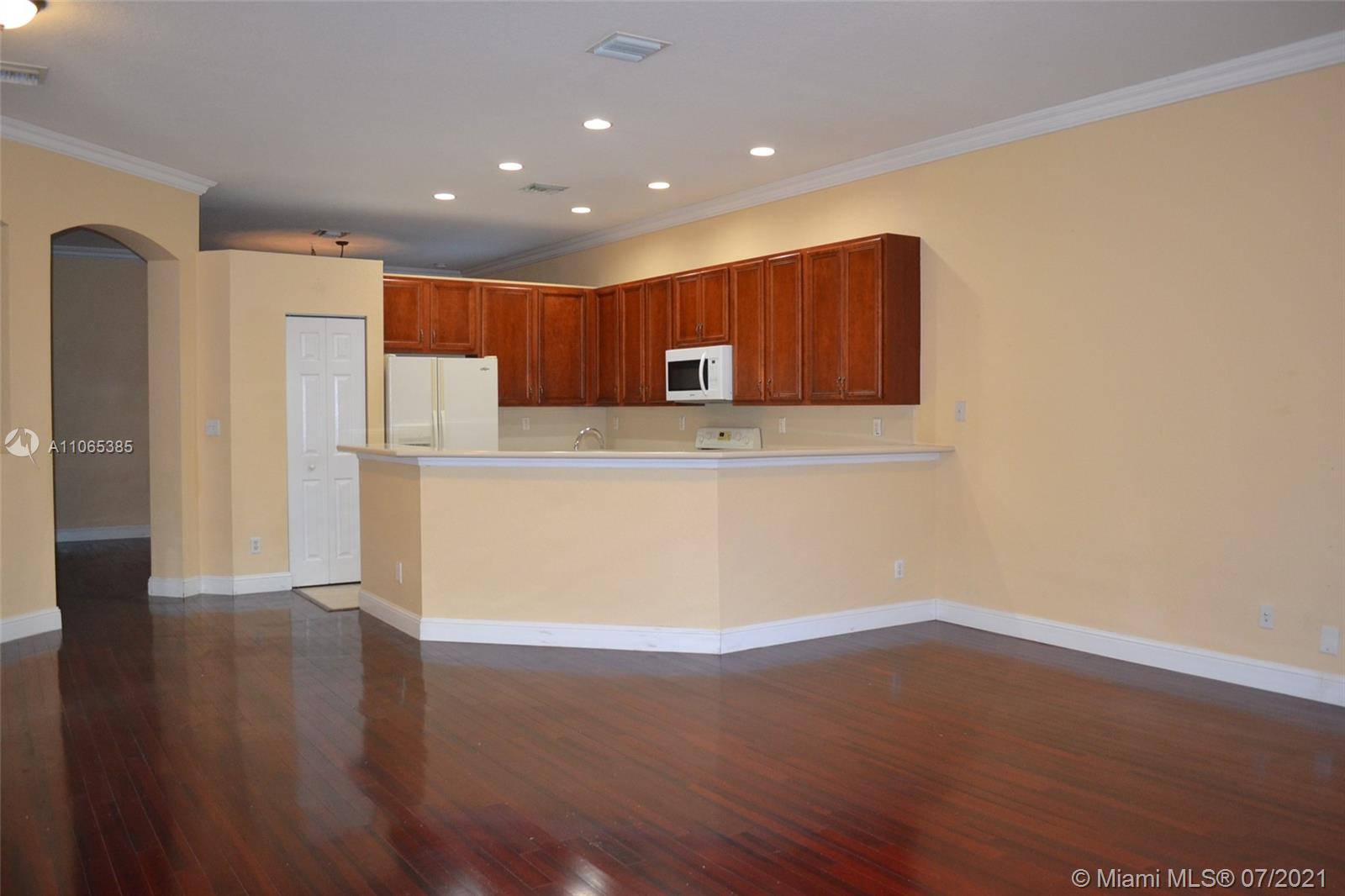Isles at Weston stunning one story 4 bedrooms and 3 bathroom home. Laminated floors throughout living area, wood-style kitchen cabinets with Corian countertops. No neighbors in the back to add more privacy, accordion shutters all over to help you save in insurance costs. Gated community with resort-style amenities including a gym and a community pool. HOA fees covers 24 hours guardhouse attendees, clubhouse amenities, basic cable and internet from Hotwire.