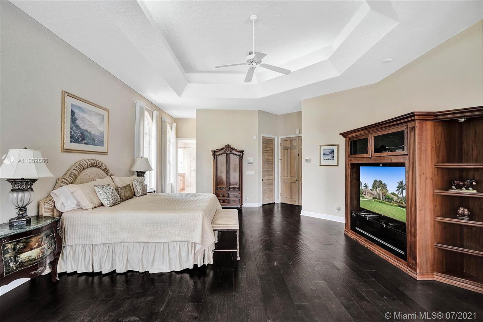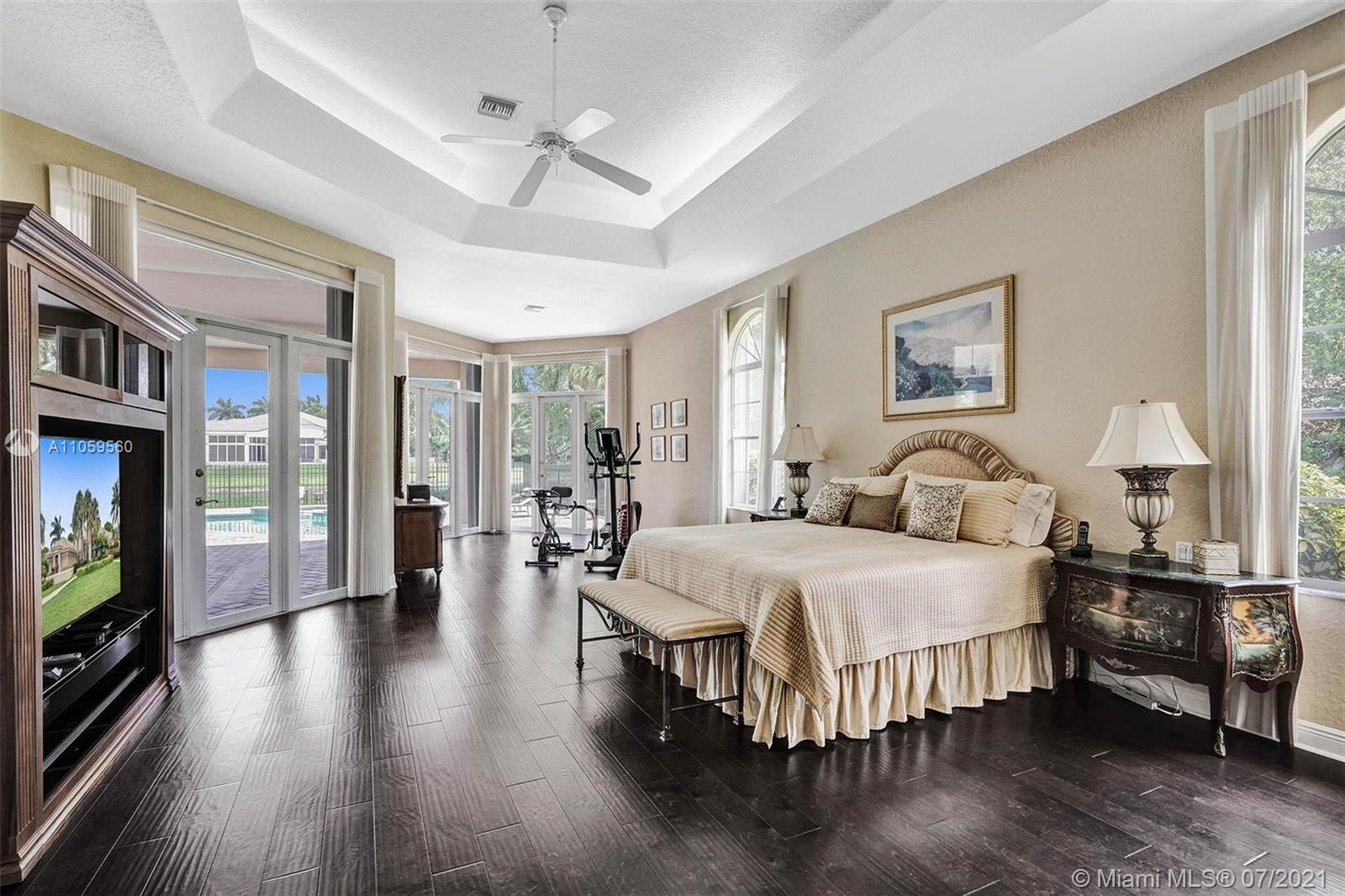 OPEN HOUSE SUNDAY 7/11 1-3. Tucked in the gated boutique community of Windmill Lake Estates. Grand 5 bed + office 5.5 bath pool estate home sitting on over an acre lot*expansive paver circular driveway*porte-cochere. Private water views from your custom pool/spa*fully fenced*lushly landscaped, pavers, baby fence. Marble throughout living areas*Soaring ceilings*Extensive crown moldings*Gourmet wood kitchen with island*breakfast bar*custom cabinetry*granite countertops* SS appliances*Double ovens*Oversized refrigerator*expansive butler pantry w/ fridge. Master suite w/ wood floors, Sitting room*custom master bath dual vanities*jacuzzi tub*marble flooring.Office with own full bath. Full accordion/rolladen protection. Full house generator. Side entry 3 car garage. New pool heater 2021