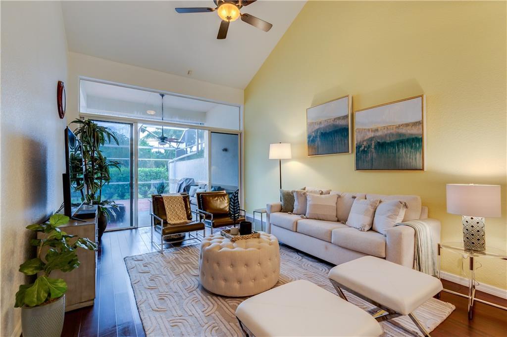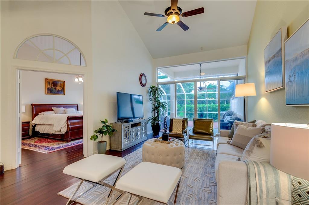 Exceptional curb appeal..Beautifully maintained 3 Bedrooms w/ Oversized Loft 3 1/2 Baths. Spacious townhouse-huge vaulted ceilings..Master suite on first floor with double door entry. Beautifully renovated kitchen with SS appliances, renovated master bathroom. Tastefully decorated with designer accents including decorator niches for artwork. Light & Bright open floor plan with plenty of room for entertaining. Private backyard with Oversized high screen enclosure, spacious with great privacy. Accordion shutters. Roof was replaced 2019.Home soon to be pressure cleaned and painted. Please call at gate to gain access