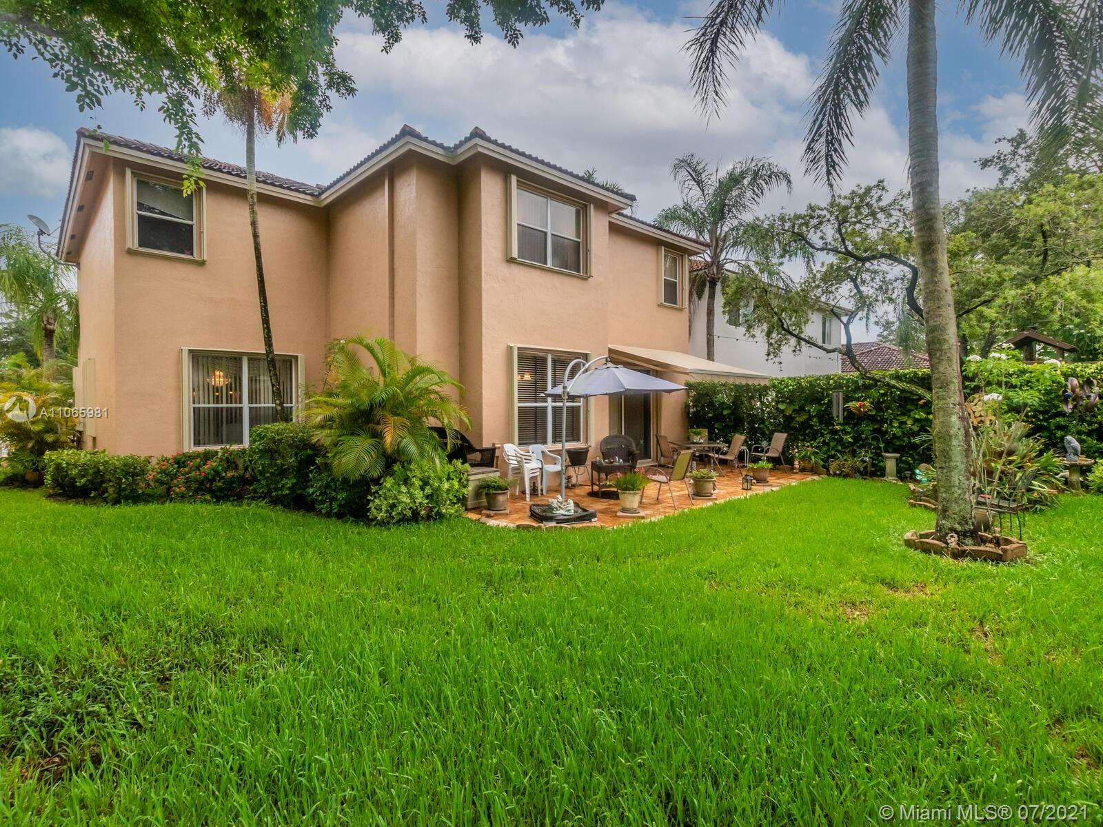 MOVE TO WESTON INTO THIS 24-HRS GUARD-GATED COMMUNITY WITH AMENITIES GALORE!! This beautiful 4 bedrooms, 2.5 bathrooms home sits on a large lot with room for a pool and a serene waterview. Stainless steel appliances, partially updated master bathroom with separate shower and roman tub, 2017 AC, paved patio with retractable awning and an EXTRA LARGE MASTER BEDROOM WITH TRAY CEILING AND SITTING AREA. Community is strategically located close to highways, 20 minutes to beach and airports, 35 minutes to Miami and walking distance to shopping and restaurants. WELCOME HOME!