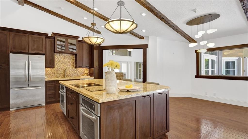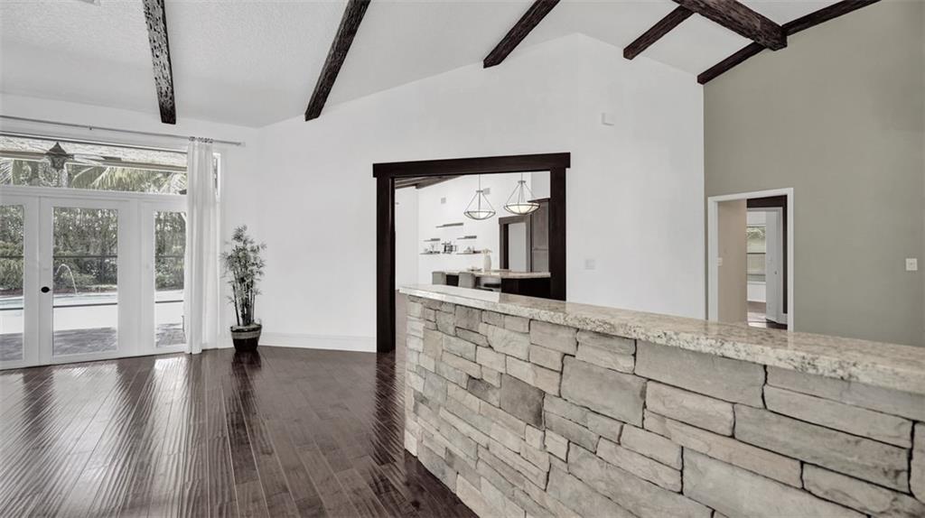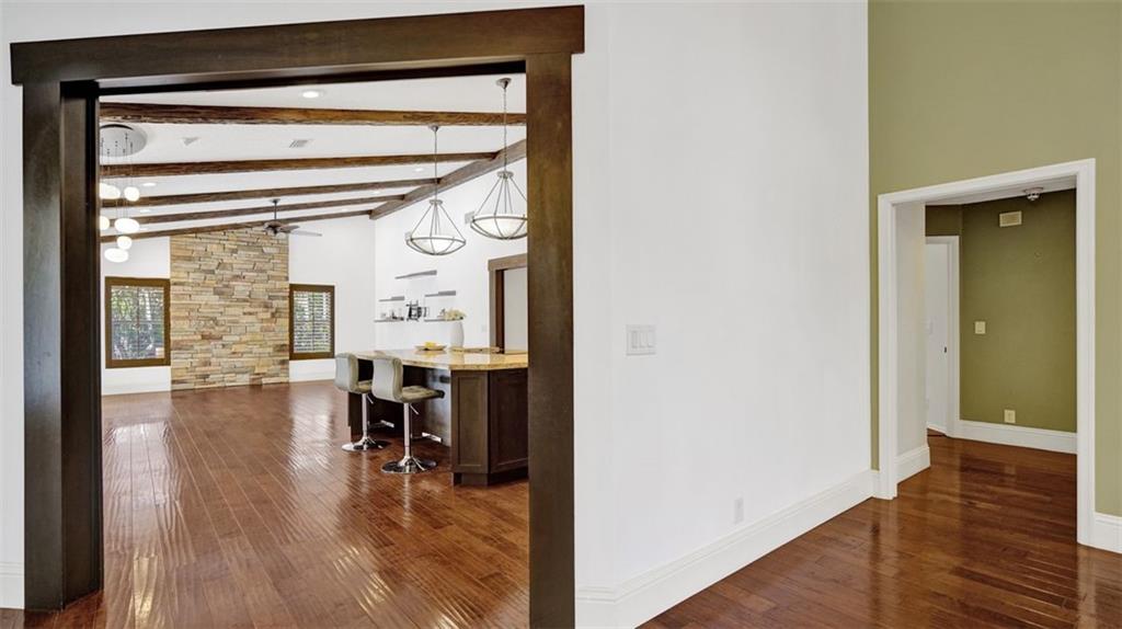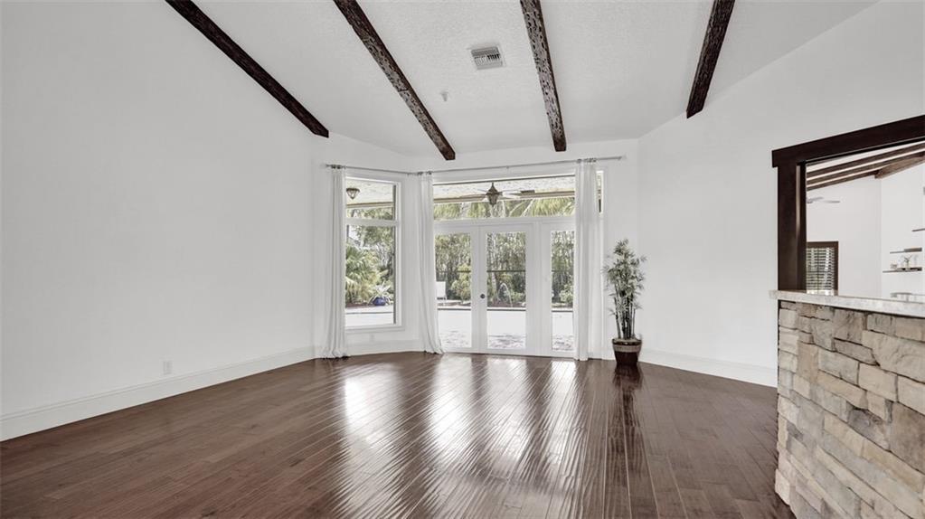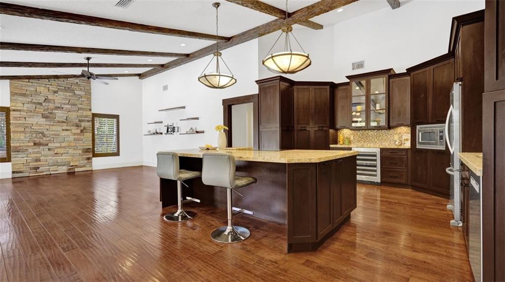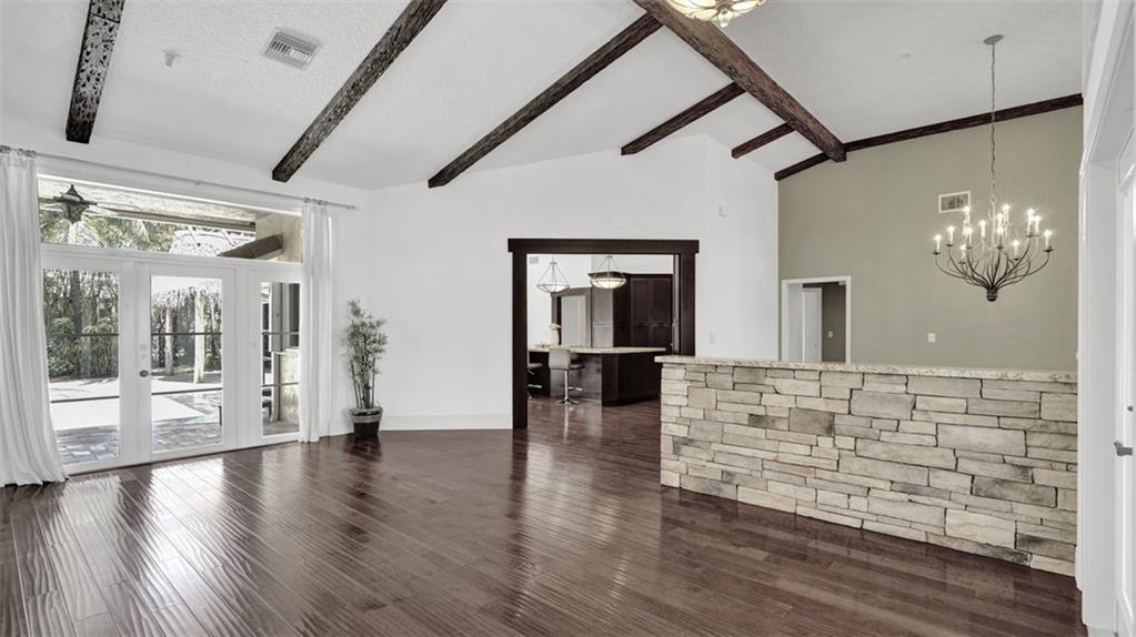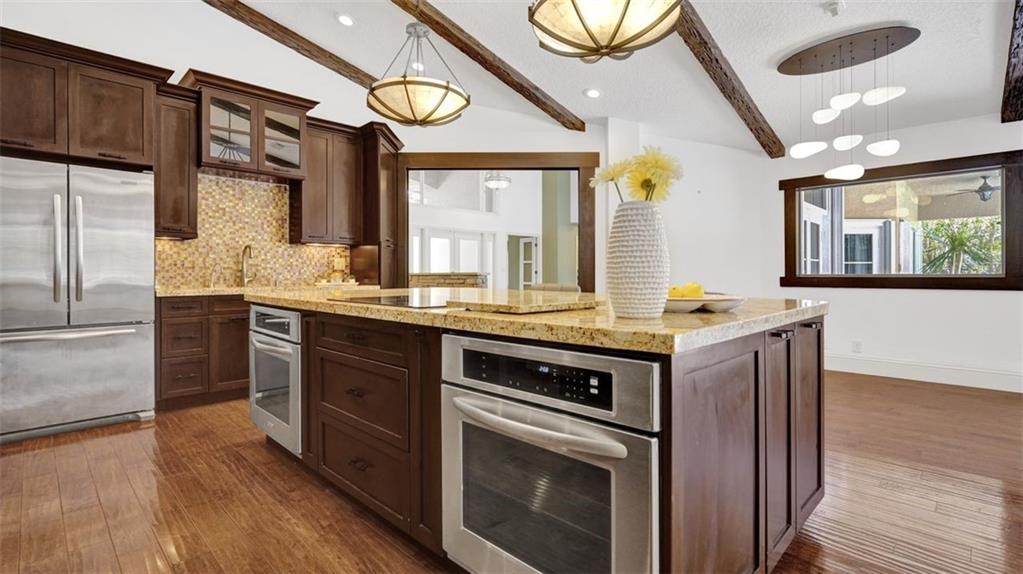 ONE OF A KIND CUSTOM & MOST MAGNIFICENT 5BD/3.5BA SINGLE STORY IN PRESTIGIOUS BOUTIQUE PALM ISLAND! 15,275 SF FULLY FENCED TROPICALLY LANDSCAPED PVT YARD W/AUTO SALT-CHLORINATED POOL W/FIBER OPTIC LIGHTS, TRAVERTINE PATIO, FIRE PIT, RAISED SUN DECK & AUTHETIC TIKI HUT W/TWINKLING LIGHTS! 3-SPLIT OPEN FLR PLAN W/NEW MODERN WHITE PAINT CREATES A STUNNING CONTRACT TO RICH GENUINE HARDWOOD FLRS, STONE ACCENT WALLS & BEAM CEILINGS. FRENCH DRS, DESIGNER LIGHTS. LUXURY HI-END CHEFS GOURMET KITCHEN W/HUGE COOKING ISLAND, EXTRA TALL WOOD CABS W/PULLOUTS, TOP OF LINE STAINLESS APPLIANCES, DOUBLE OVENS. WINE REFRIG! HUGE CUSTOM WALK-IN CLOSETS IN MASTER ARE LIKE ROOMS THEMSELVES! CABANA BATH, 2013 ROOF, BRAND NEW 5-TON AC, ACCORDIONS, WIDE CIRC DRIVE. NEAR PARK, TENNIS, HOUSES OF WORSHIP, A+ SCHOOLS!