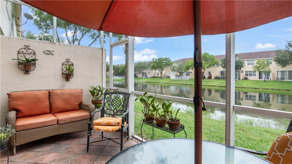 Immaculately kept 3 bed 3 bath lake front townhome in desirable Silver Falls gated community. This rarely available corner lot home features a spacious layout & includes an additional loft on the 1st floor that could be used as a 4th bedroom. Remodeled kitchen with large custom cabinets, granite countertop, upgraded lighting & stainless steel appliances. Back yard patio is perfect for entertaining that is completely screened with space for a BBQ area overlooking the lake. Master bedroom features large walk in closet, separate stand up shower, a tub & dual sinks. Laundry room is located on 2nd floor. Exterior protected by accordion shutters. The community offers 24 hour man guarded gate, clubhouse and resort style pool, basketball & tennis courts, kids play areas and fitness center.