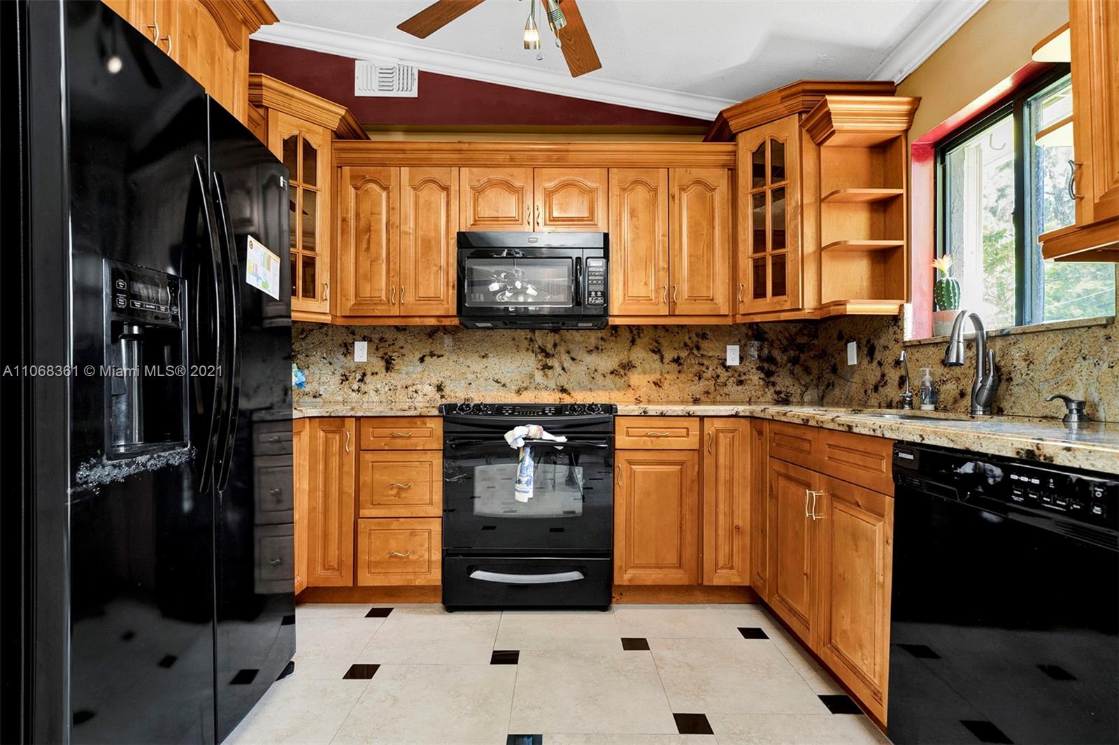 Amazing 4 bedroom 2 bathroom single-family home. The home features updated kitchen cabinets and granite counter tops. Home has updated porcelain tile with granite inserts throughout. Master bedroom has a spa-style jacuzzi tub, the guest bathroom has been updated nicely, property has new A.C., newer large water heater, updated plumbing and electrical, Accordion hurricane shutters in every door and window, and the over-sized back yard is wonderful for parties and entertainment. Yard is large to park RV, trailer, or boat.