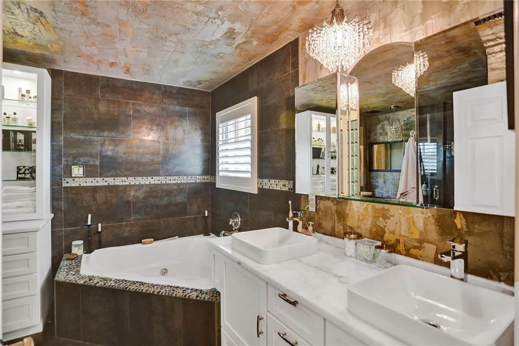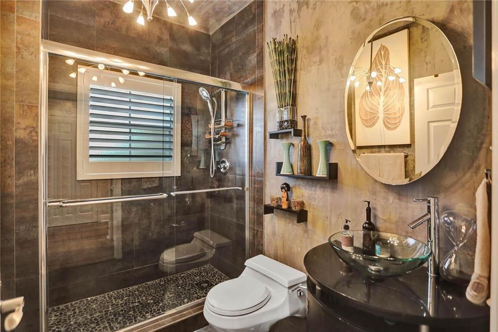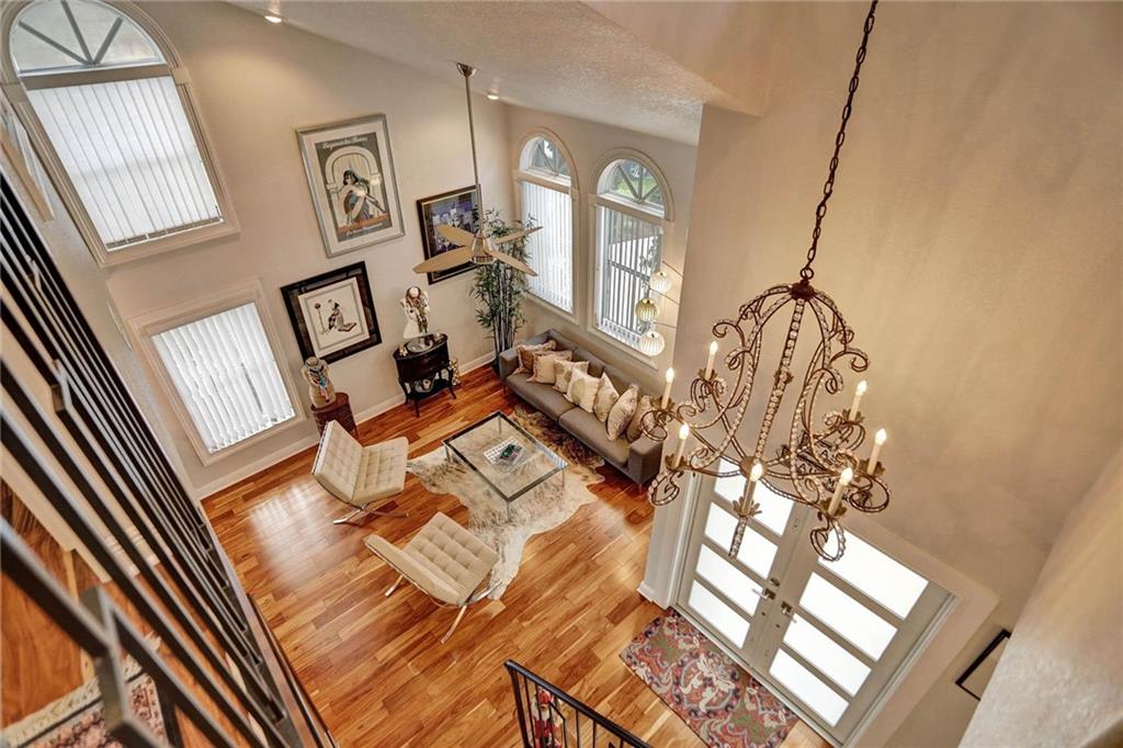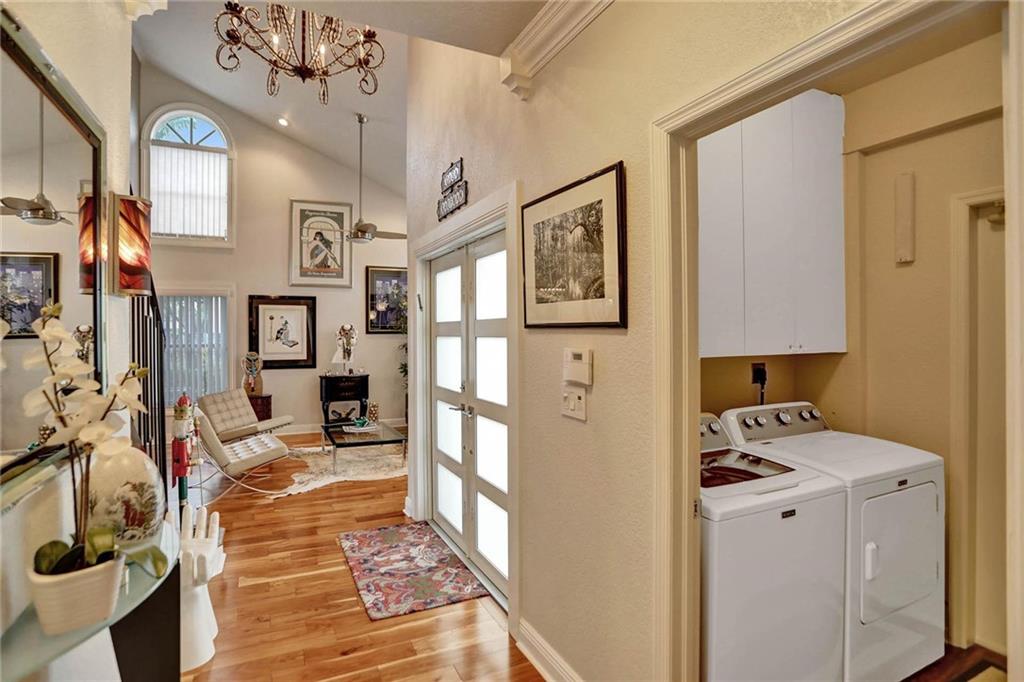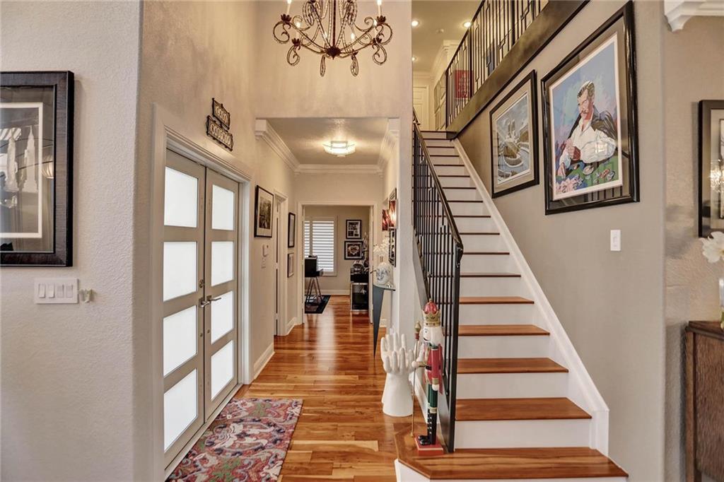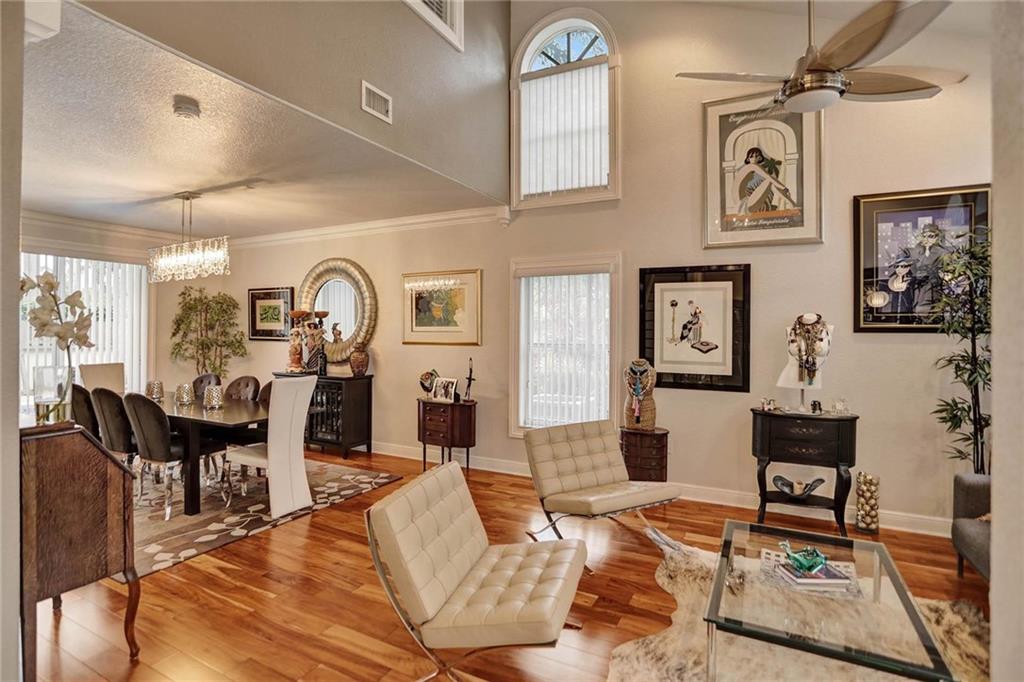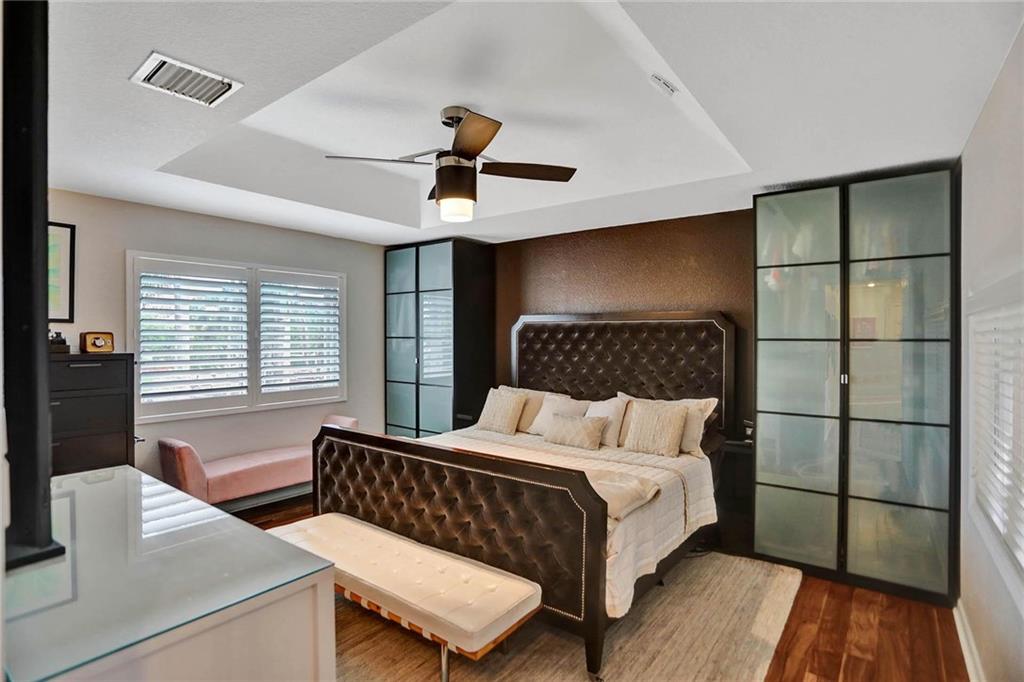 This expertly designed and remodeled home nestled on the premier corner lot in the coveted The Cove in Poinciana Parc, features 4 beds 3 baths and 2,124 of eclectic living space. Step inside the impact french doors on to the brilliant wood floors that are found throughout, a wrought iron staircase, and volume ceilings in the foyer and living room next to the formal dining room. The gourmet kitchen features white shaker cabinets with crown molding, stainless steel appliances, and majestic waterfall quartz countertops, a breakfast nook with impact bay windows overlooking the pool. Entertain in style or just relax in the covered and screened-in patio overlooking the heated pool with brick-pavers, custom bar and grill which is perfect for entertaining guests or your private enjoyment alike.